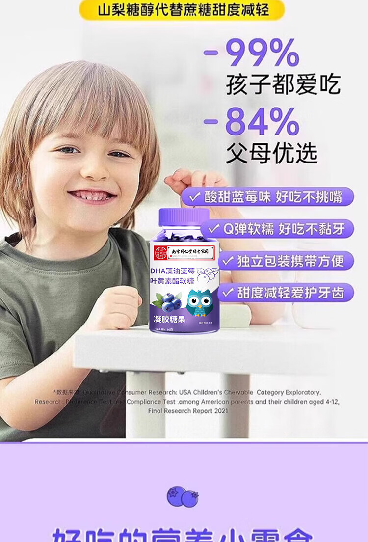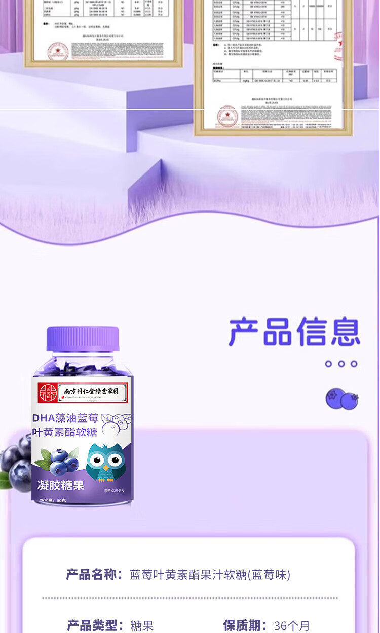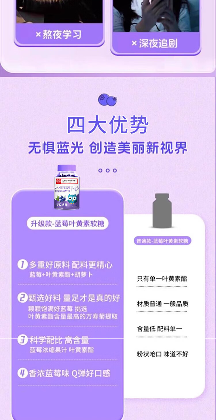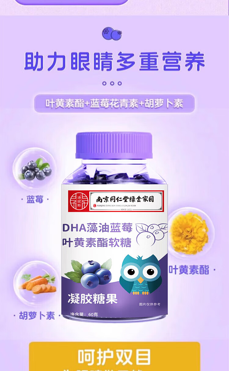 蓝莓叶黄素酯软糖儿童学生成年呵护眼睛干涩模糊熬夜零食滋润眼 蓝莓叶黄素酯软糖60g(30颗)*1瓶