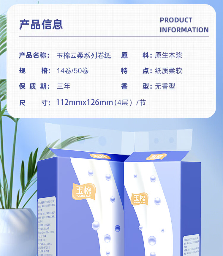 玉棉(yumian)【新人专享】无芯卷纸卫生纸大卷木浆纤维纸家用厕所手纸批发团购 50卷【店长力荐装】