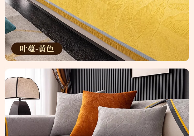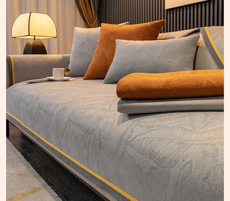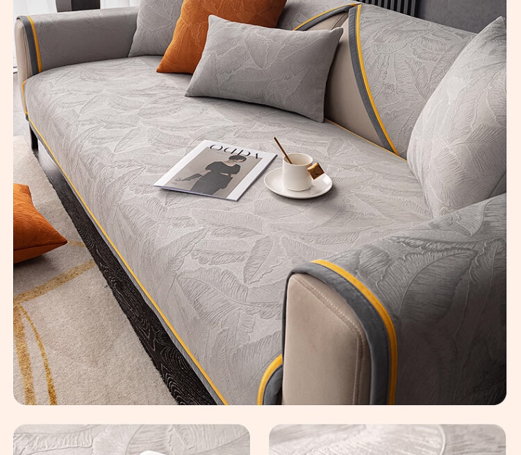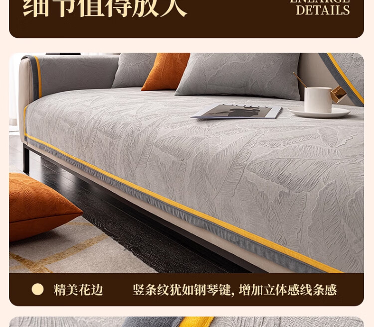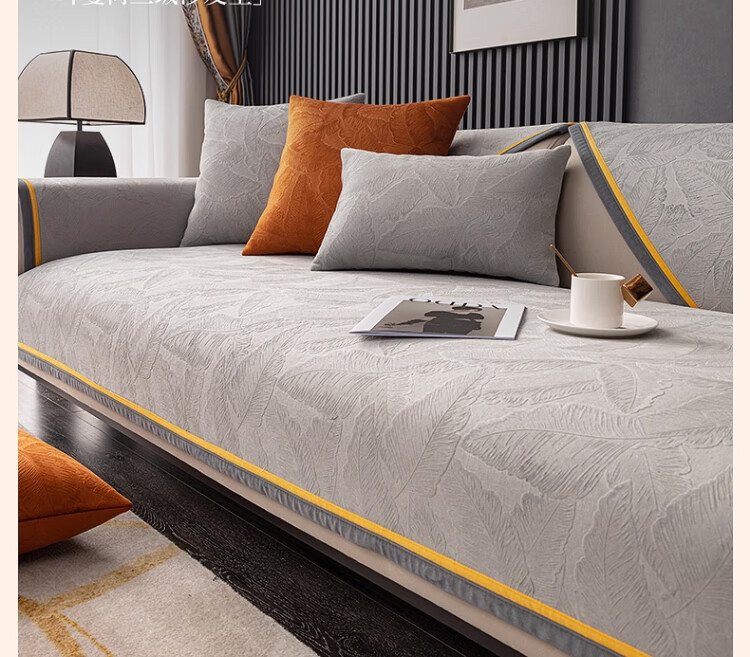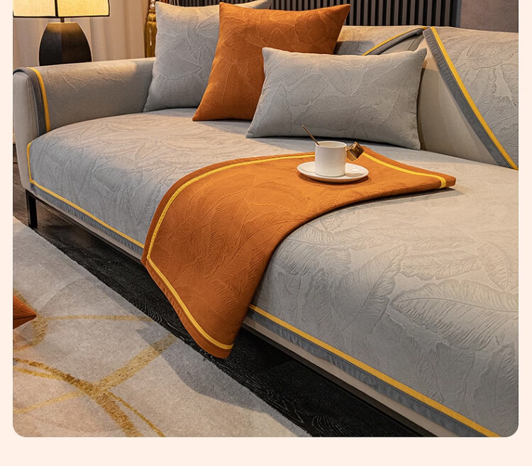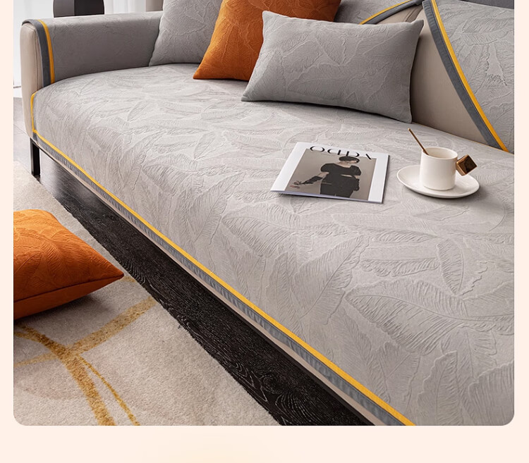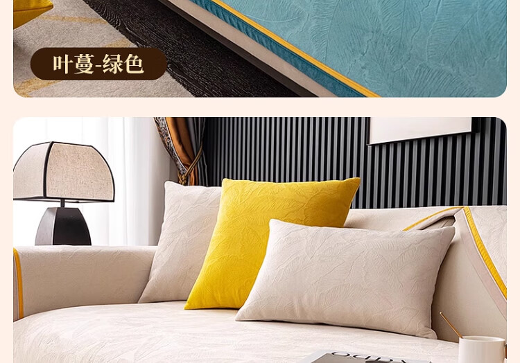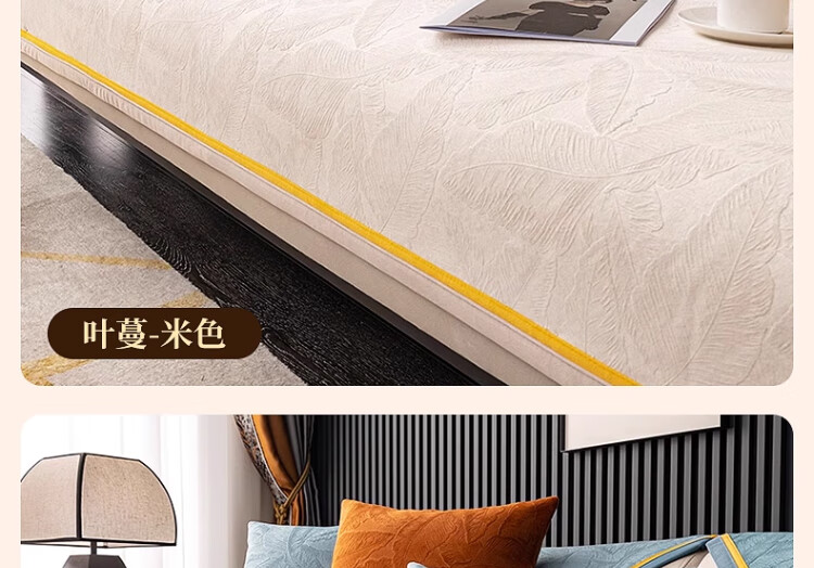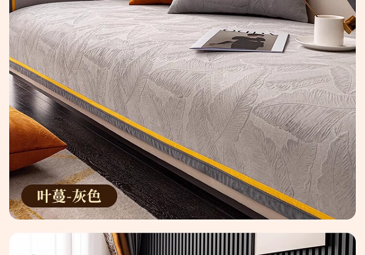 无印良品沙发垫四季通用加厚荷兰绒沙发座垫皮沙发坐垫防滑耐磨沙发罩套 叶蔓-米色【耐磨抗皱】 120X180【贵妃开叉】