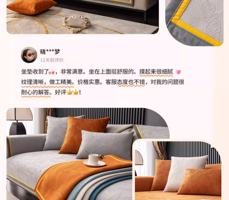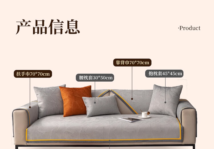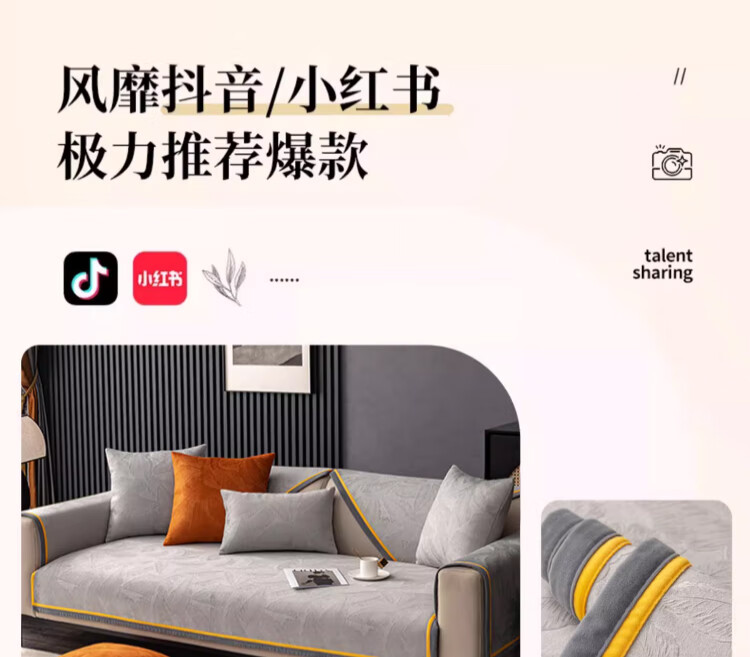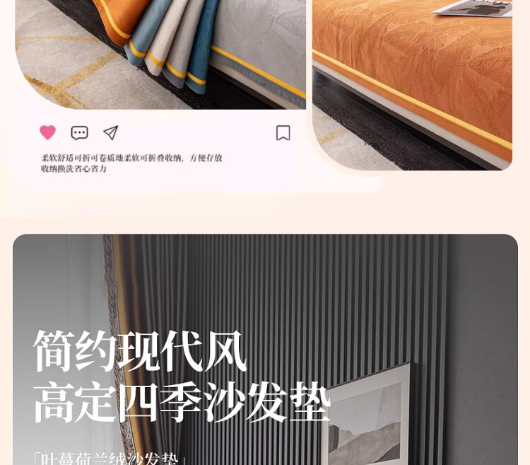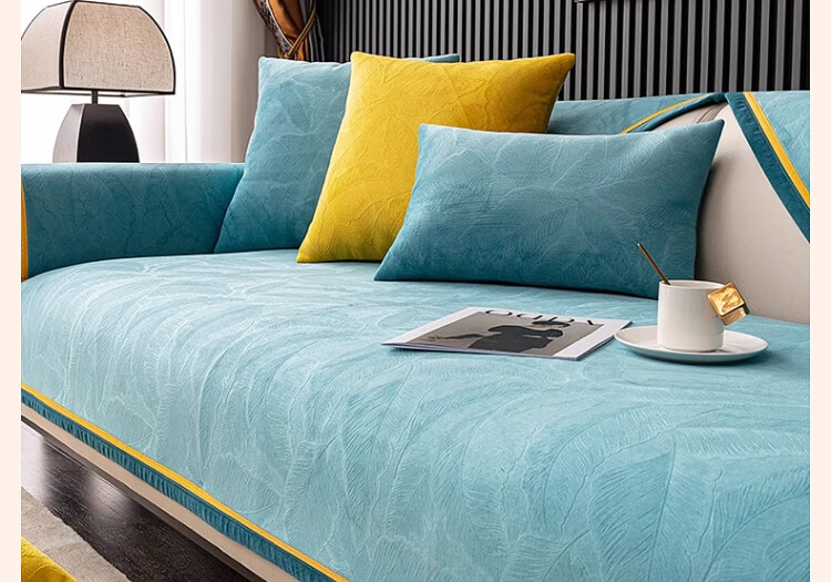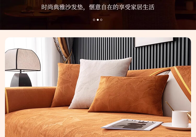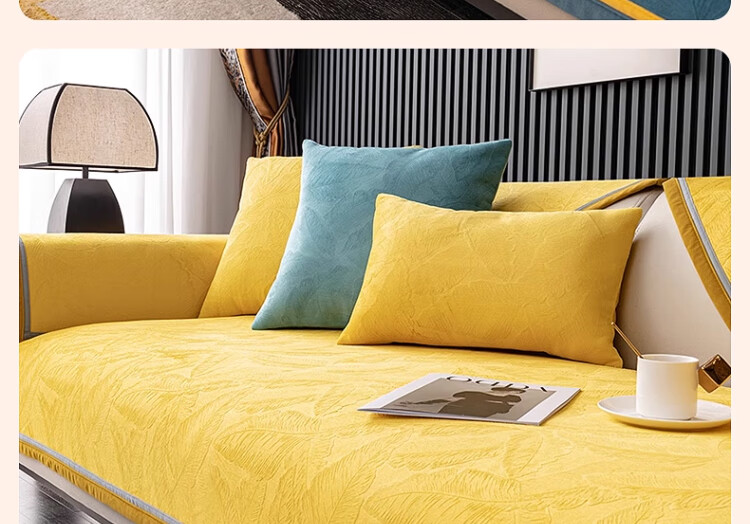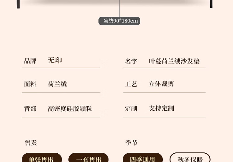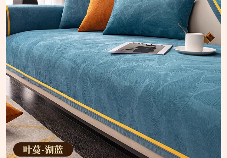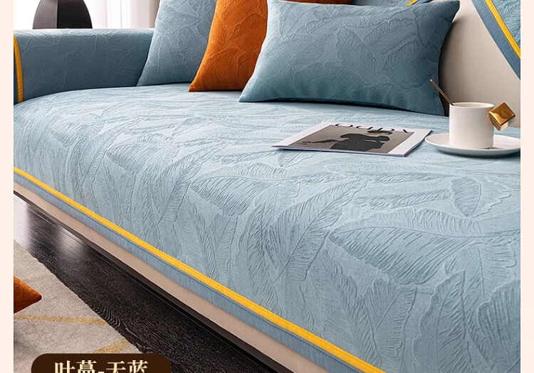 无印良品沙发垫四季通用加厚荷兰绒沙发座垫皮沙发坐垫防滑耐磨沙发罩套 叶蔓-米色【耐磨抗皱】 120X180【贵妃开叉】