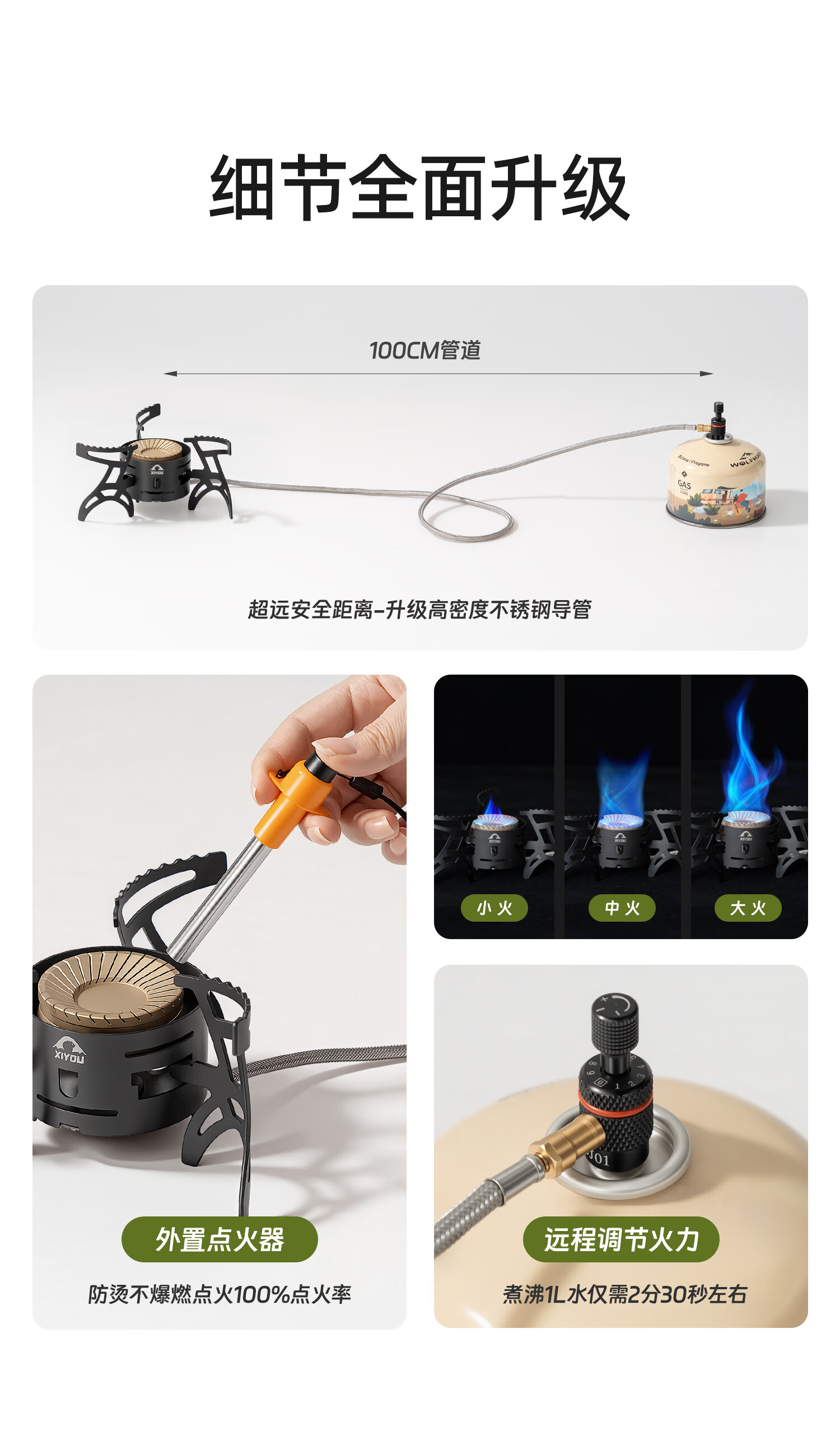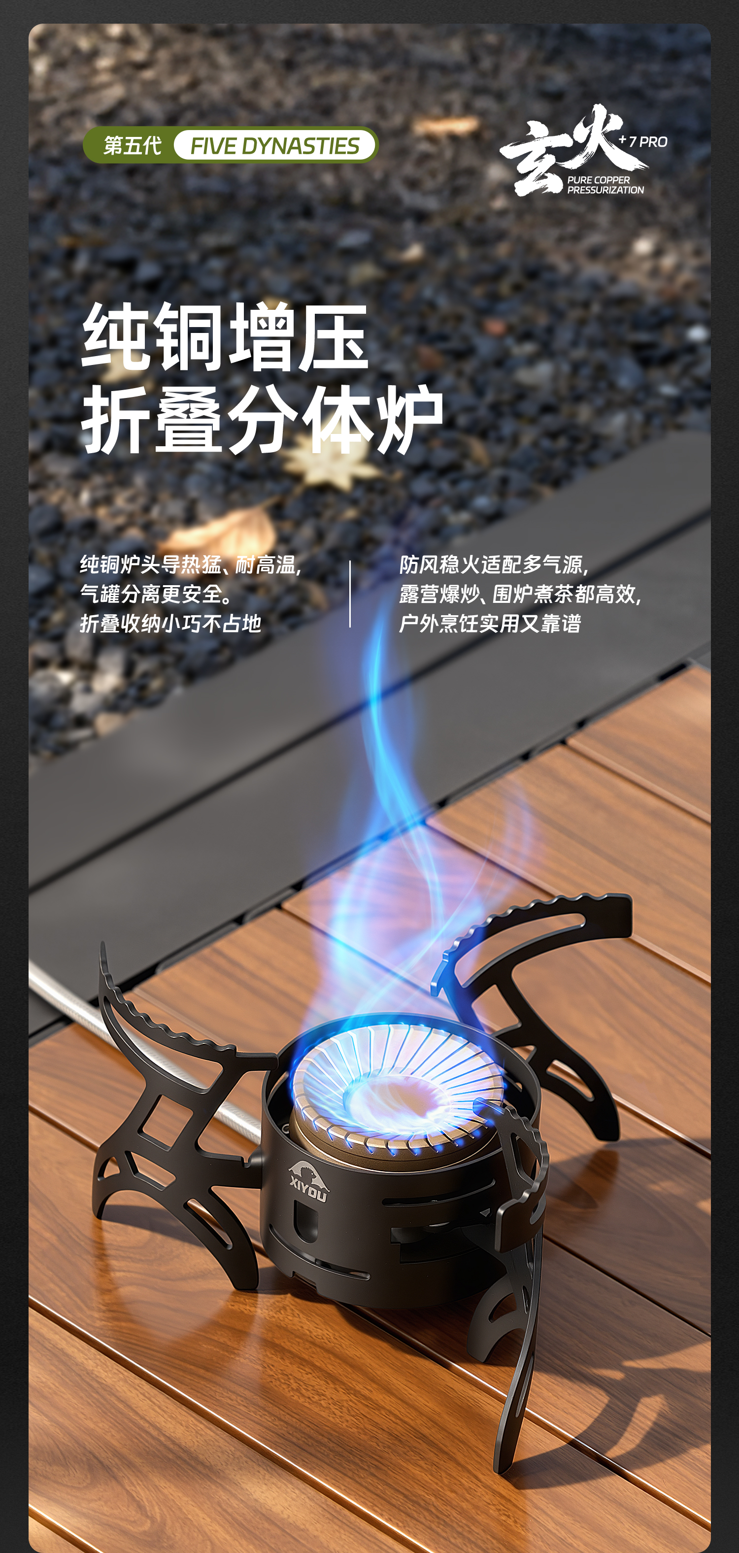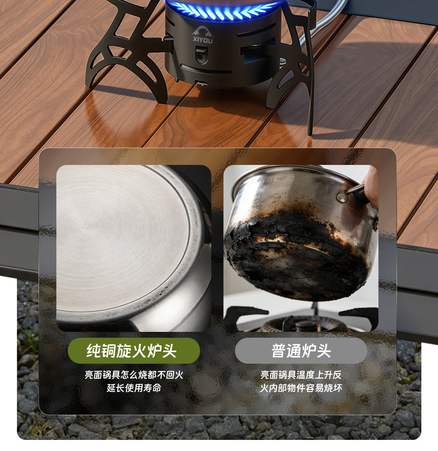 嘻由折叠卡式炉户外徒步炊具煮茶炉露营猛火炉灶轻量化旅行摩卡壶炉具 纯铜玄火炉+转接头+EVA包+2扁高山
