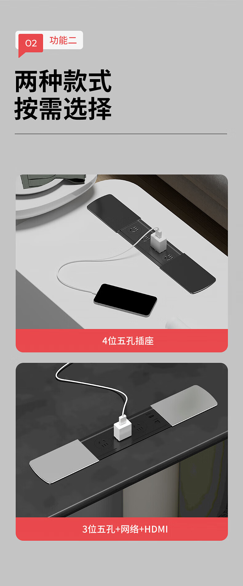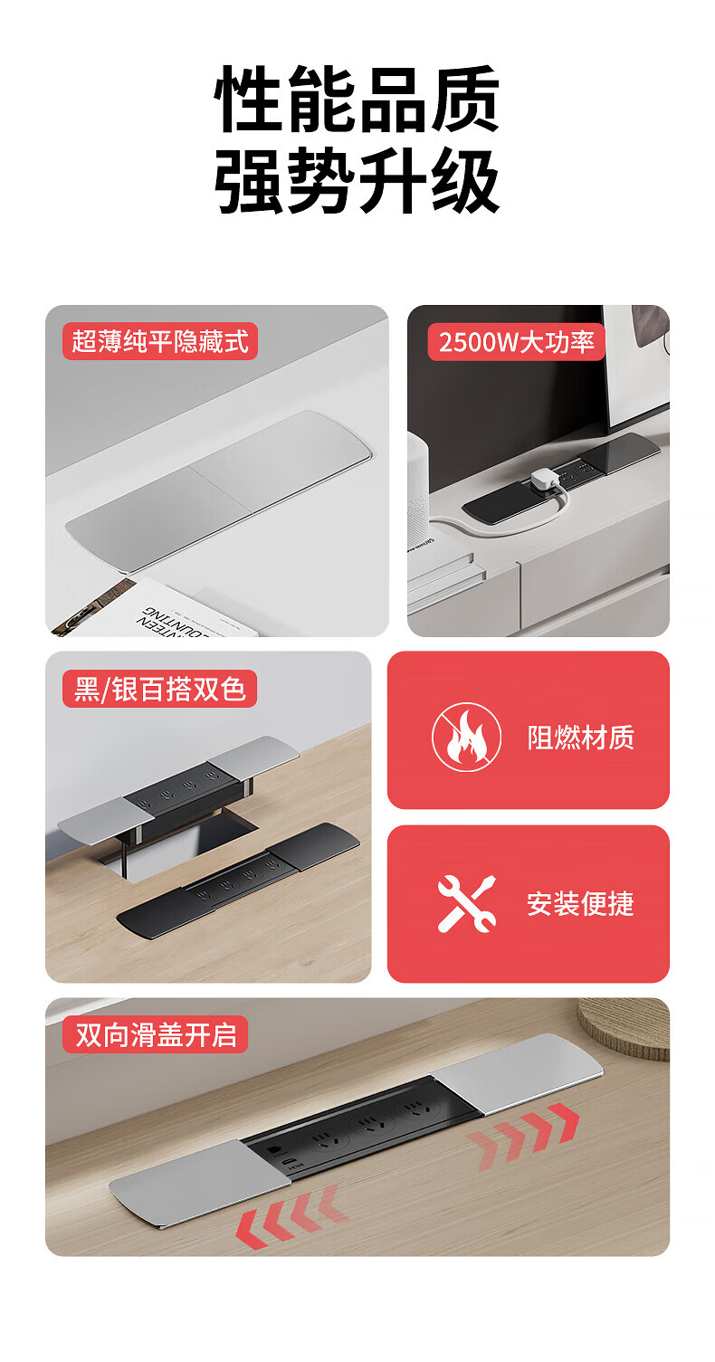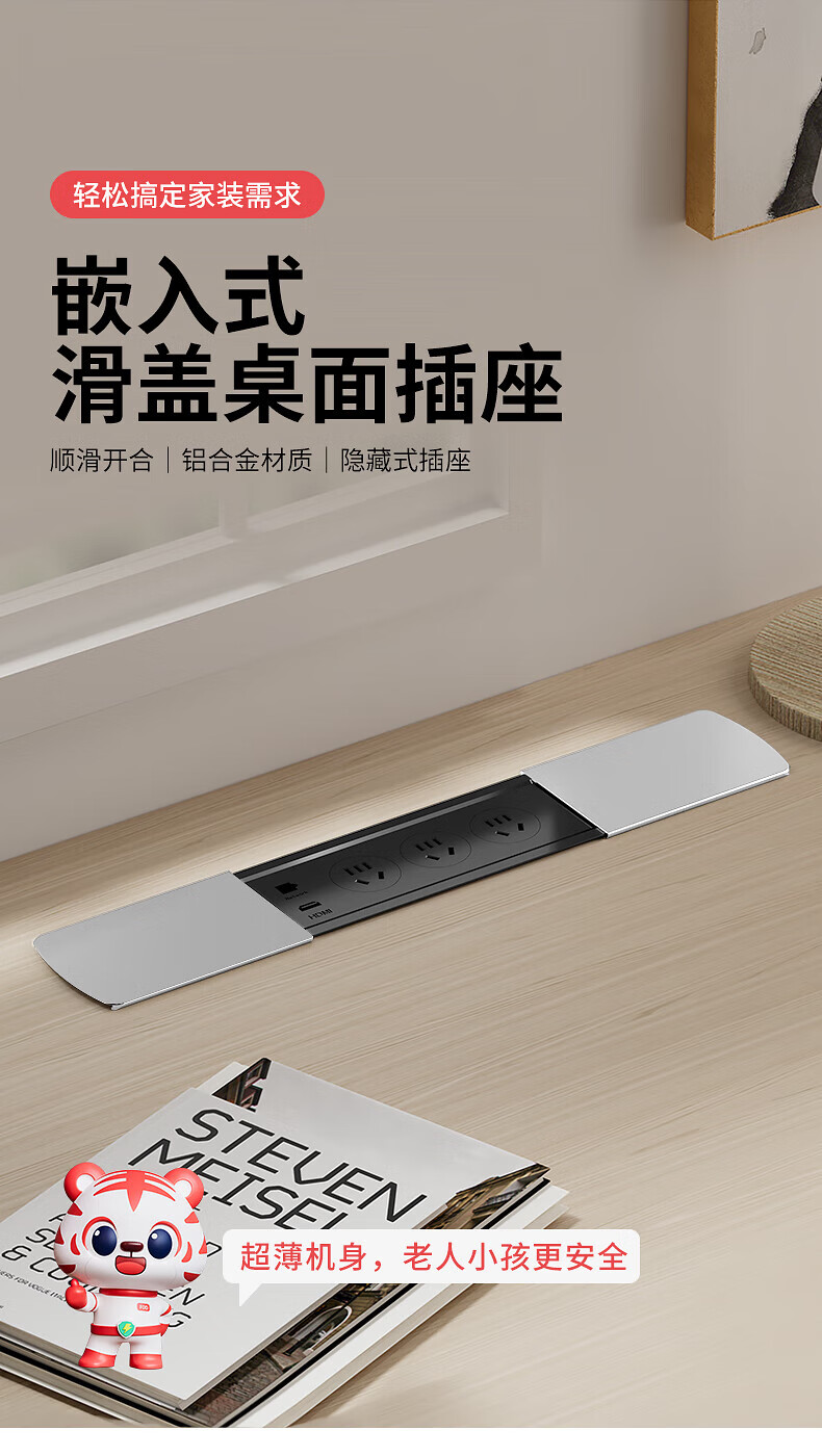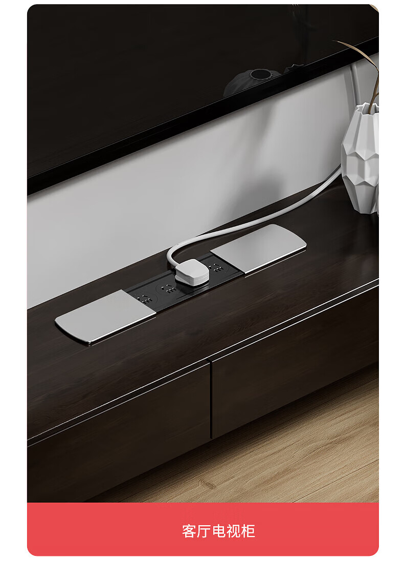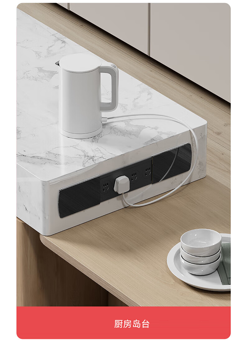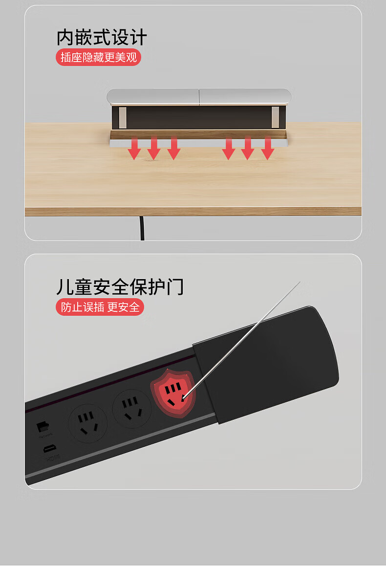 国际电工超薄嵌入式多孔插座滑盖桌面岛台隐藏台面电源插排书桌隐形接线板 双开灰色-三位五孔+网络+高清-1.5米线+送底座