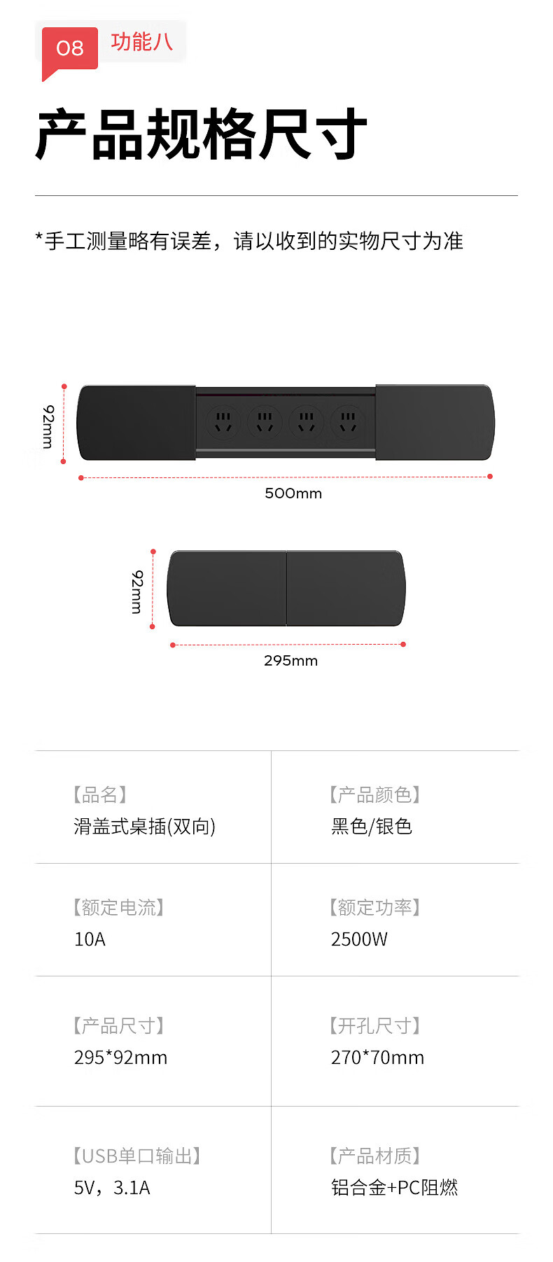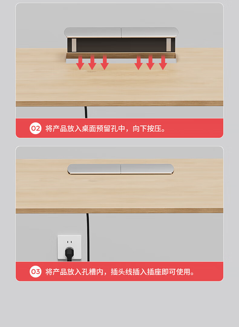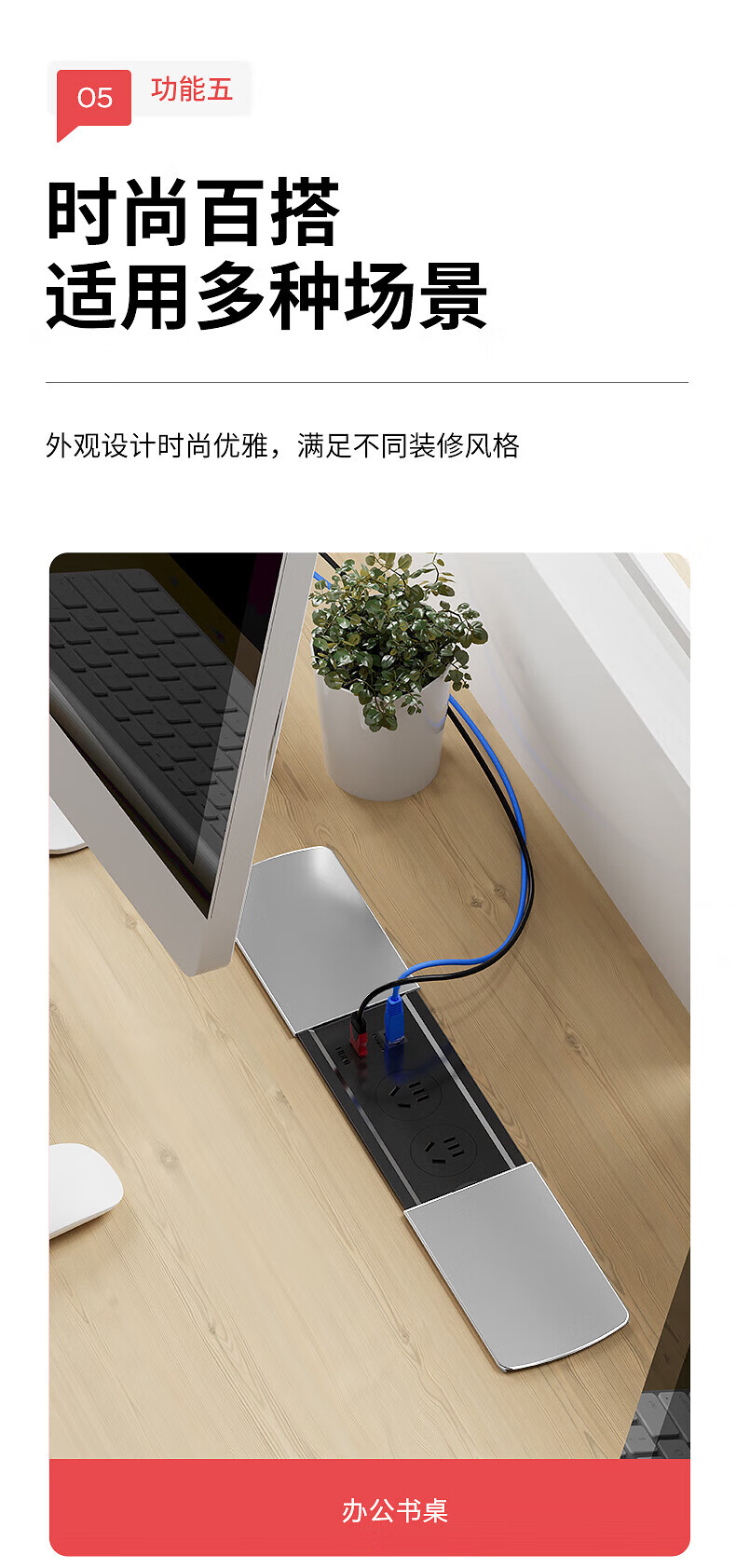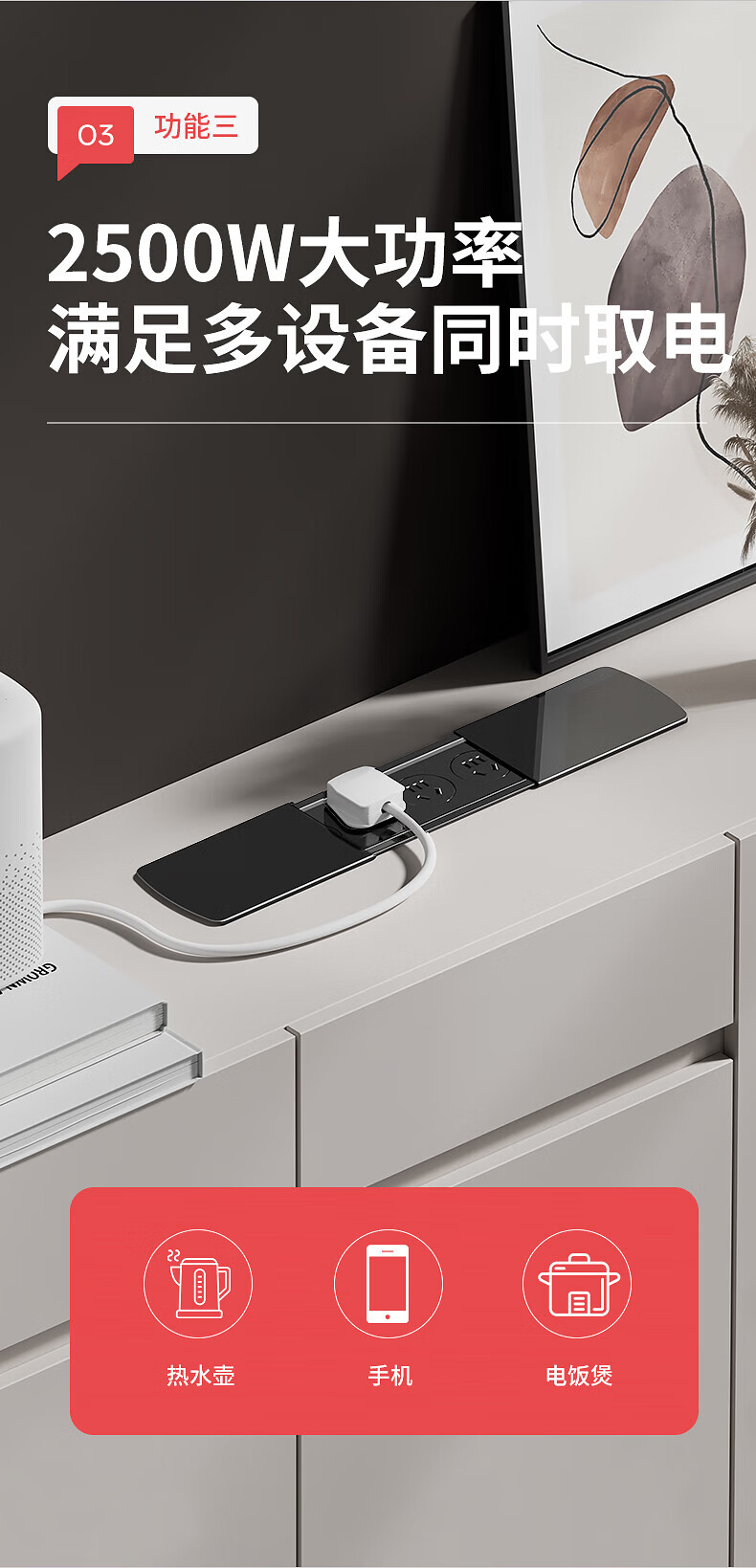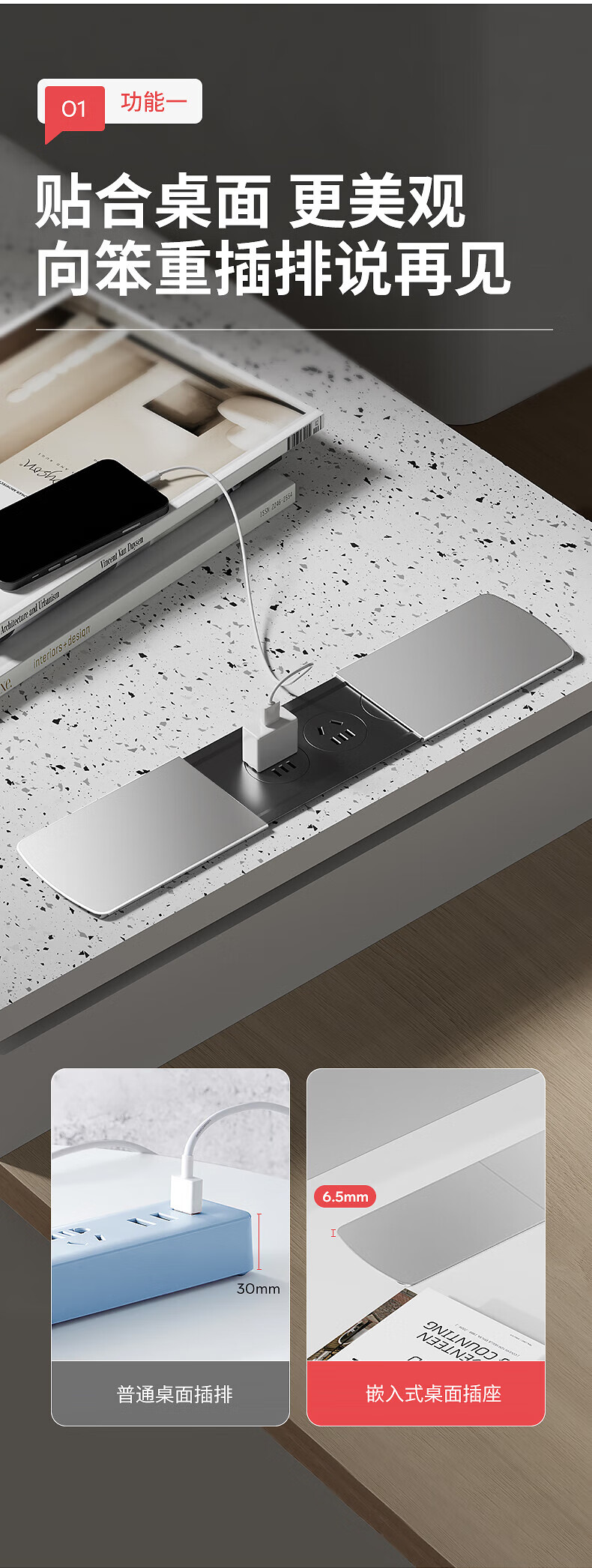 国际电工超薄嵌入式多孔插座滑盖桌面岛台隐藏台面电源插排书桌隐形接线板 双开灰色-三位五孔+网络+高清-1.5米线+送底座