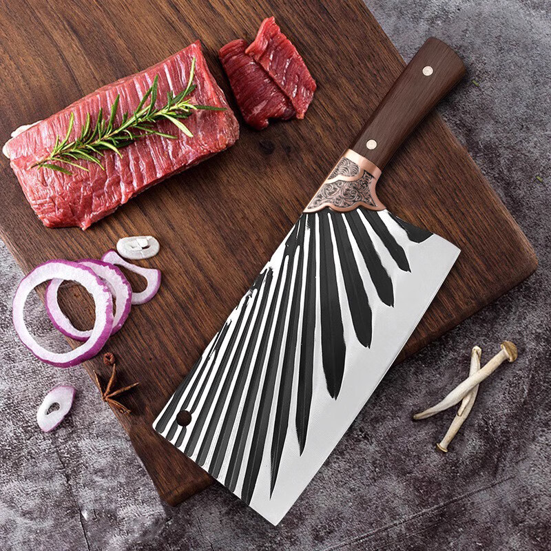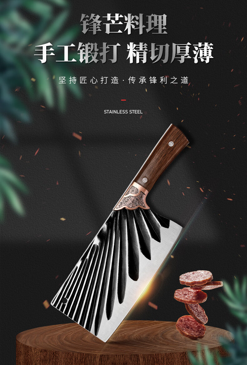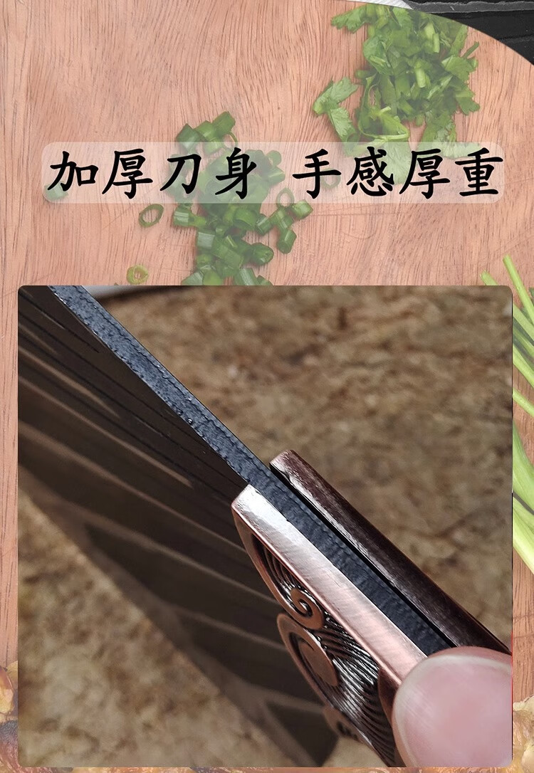 手打锻打菜刀家用刀具切菜刀切肉切片刀厨师砍骨刀阳江斩切两用刀 黑刃-小菜刀