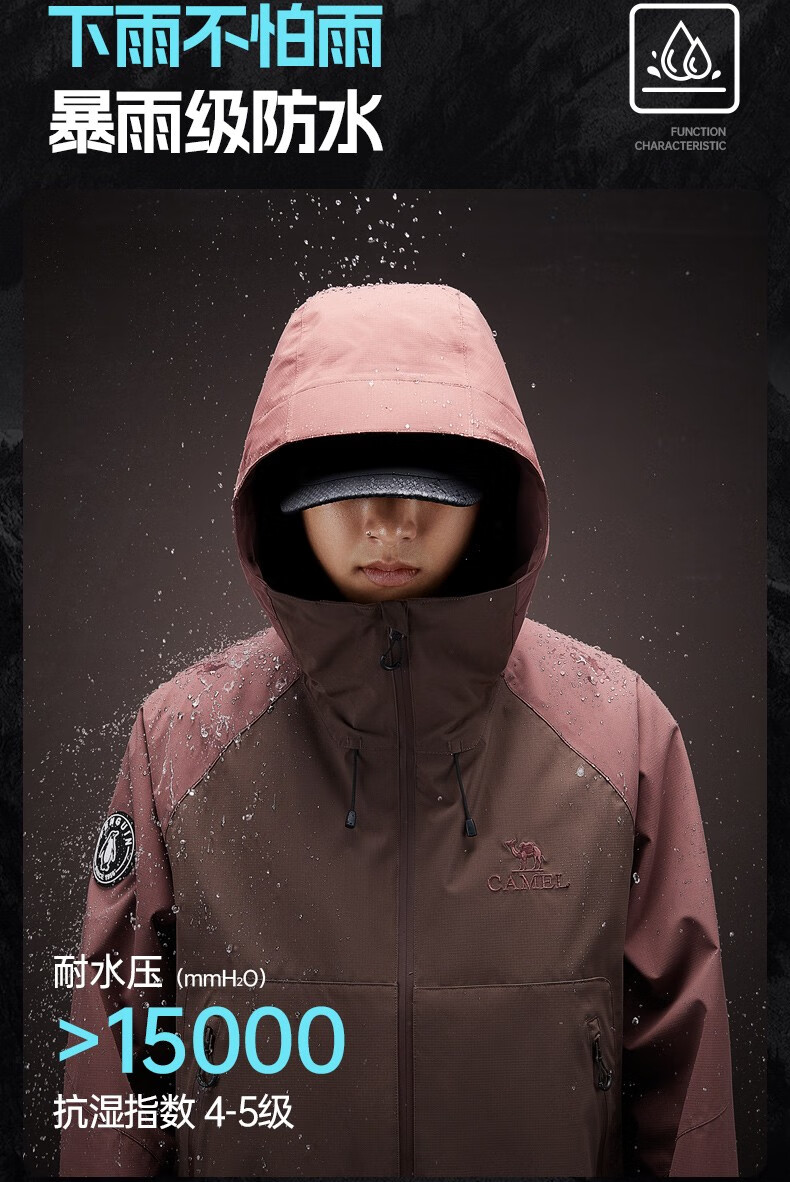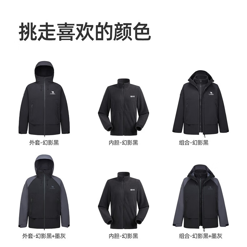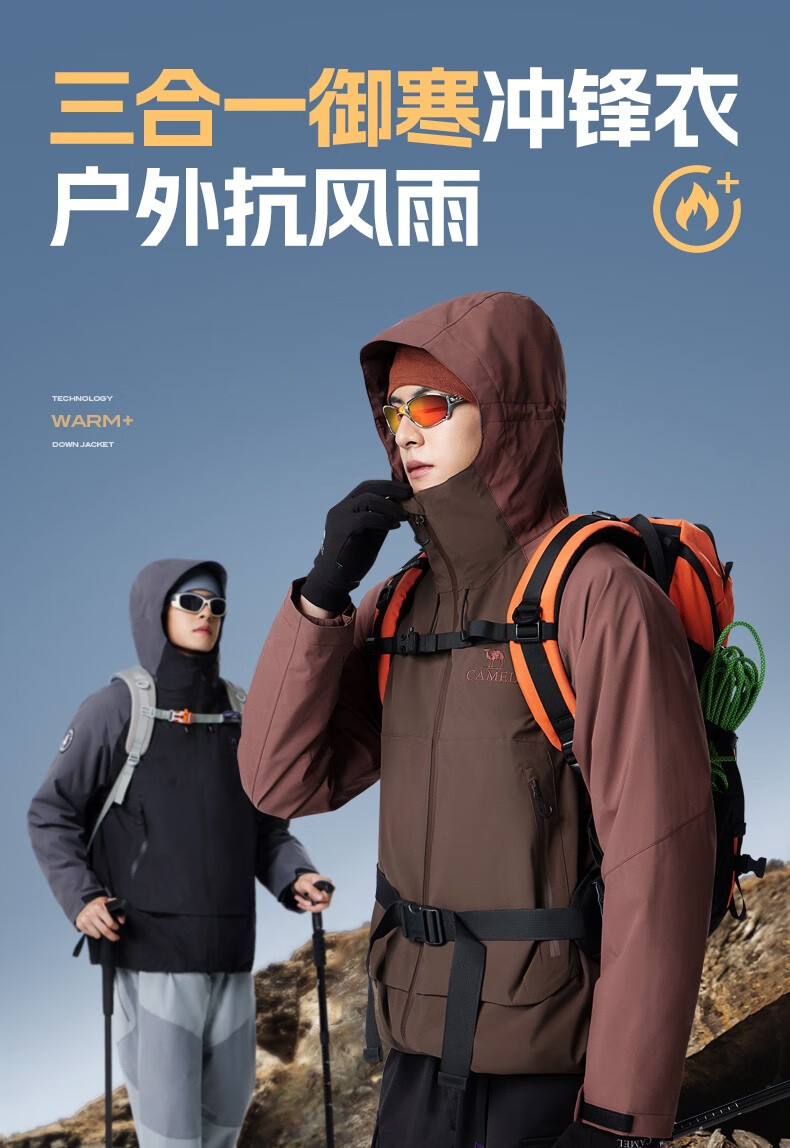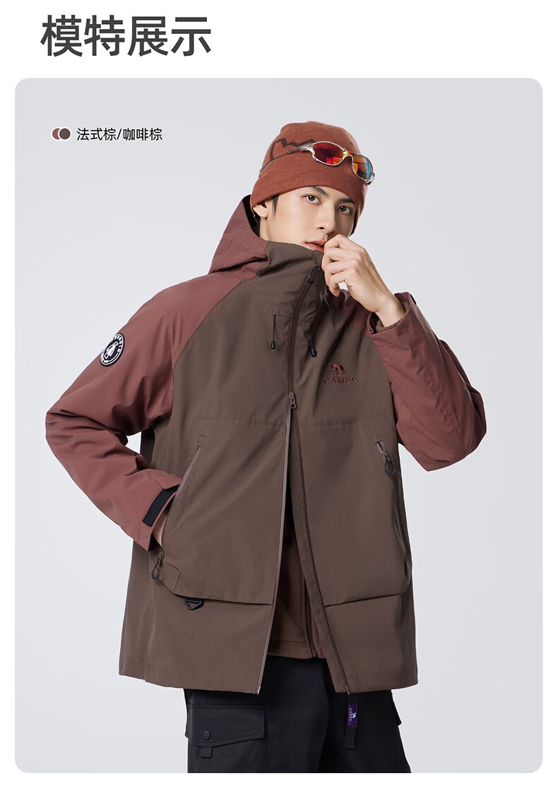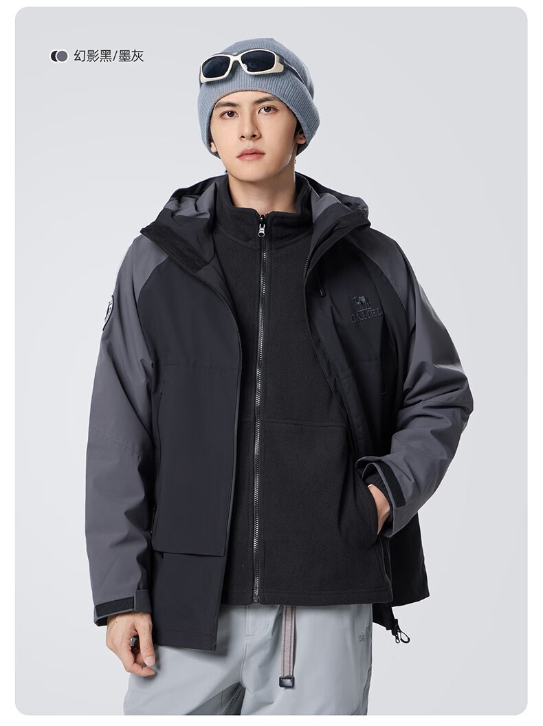 骆驼(CAMEL)男装户外冲锋衣男女三合一防风防水夹克登山服外套男M34CA49650