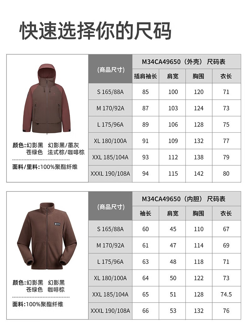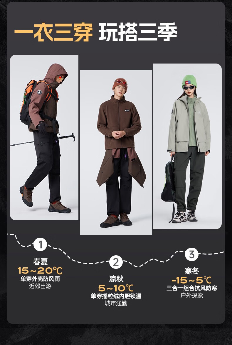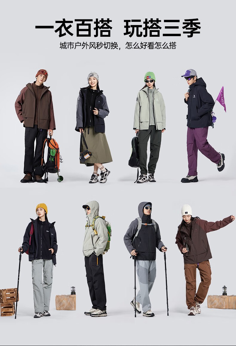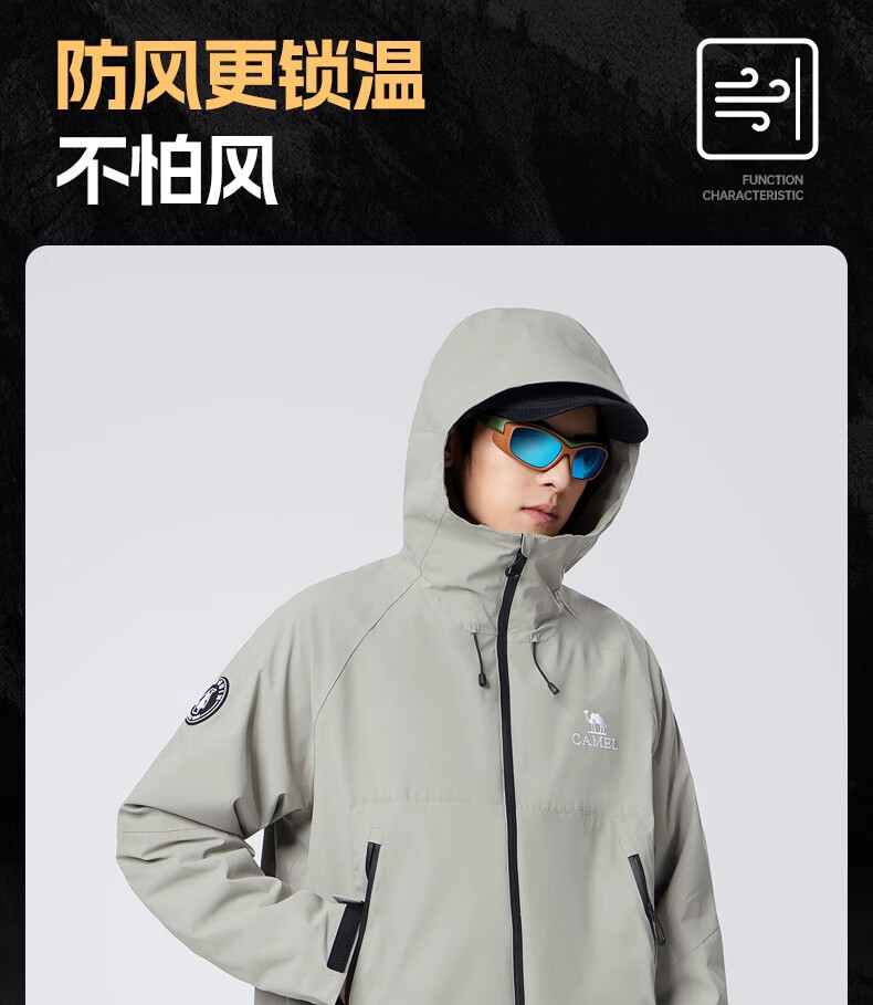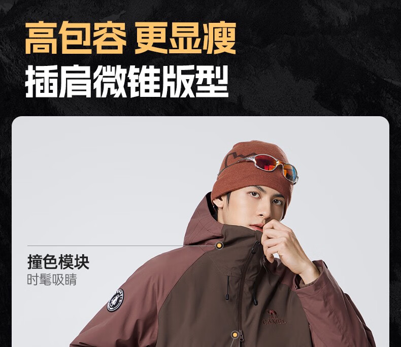 骆驼(CAMEL)男装户外冲锋衣男女三合一防风防水夹克登山服外套男M34CA49650