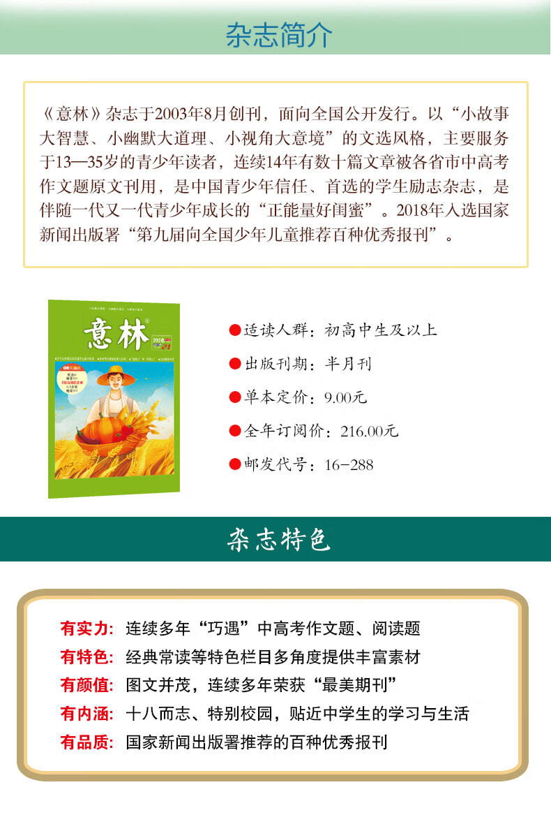意林 往期杂志过刊2024年初高中课外阅读励志意林作文素材原创全彩少年版 捡漏福利 意林2024年1-24期24本