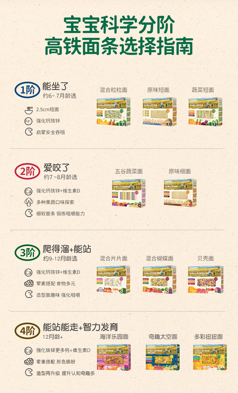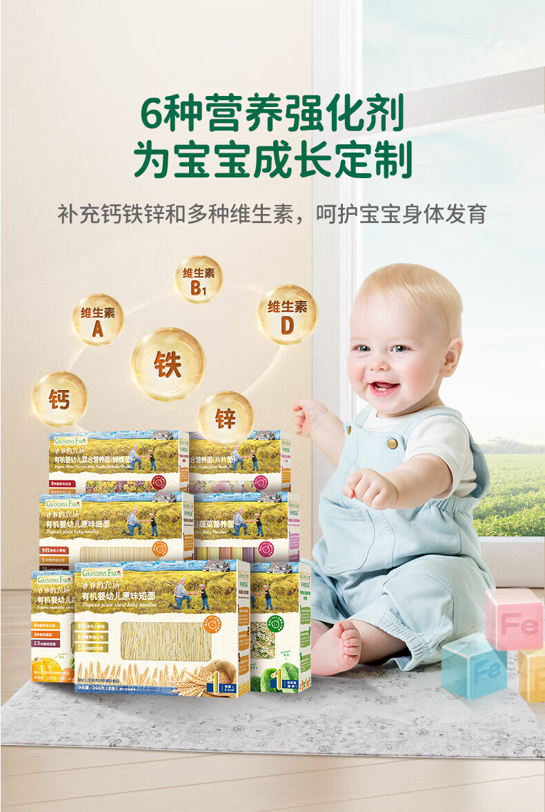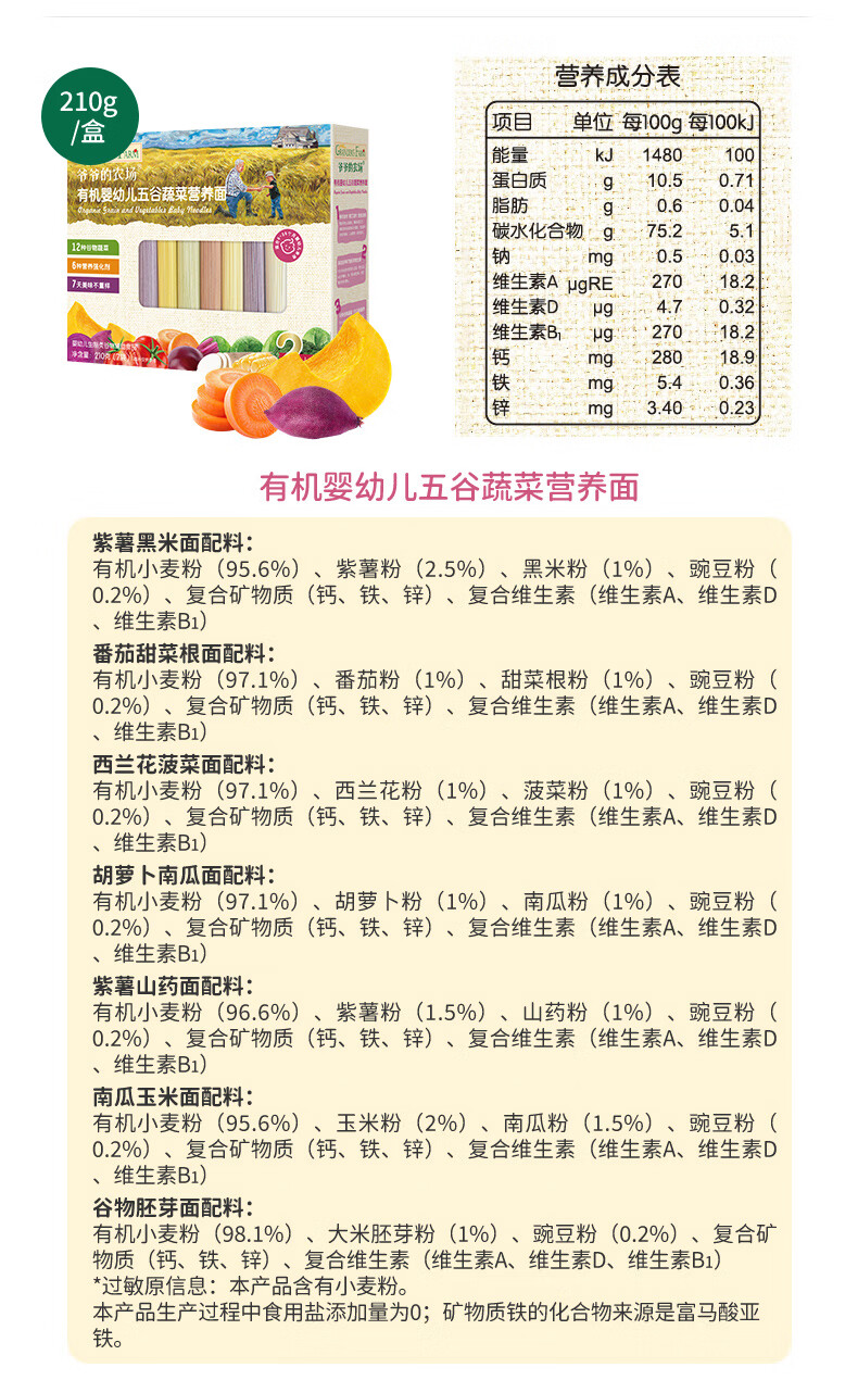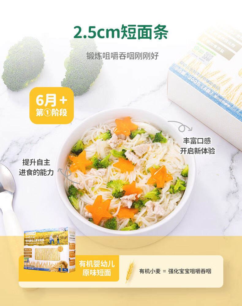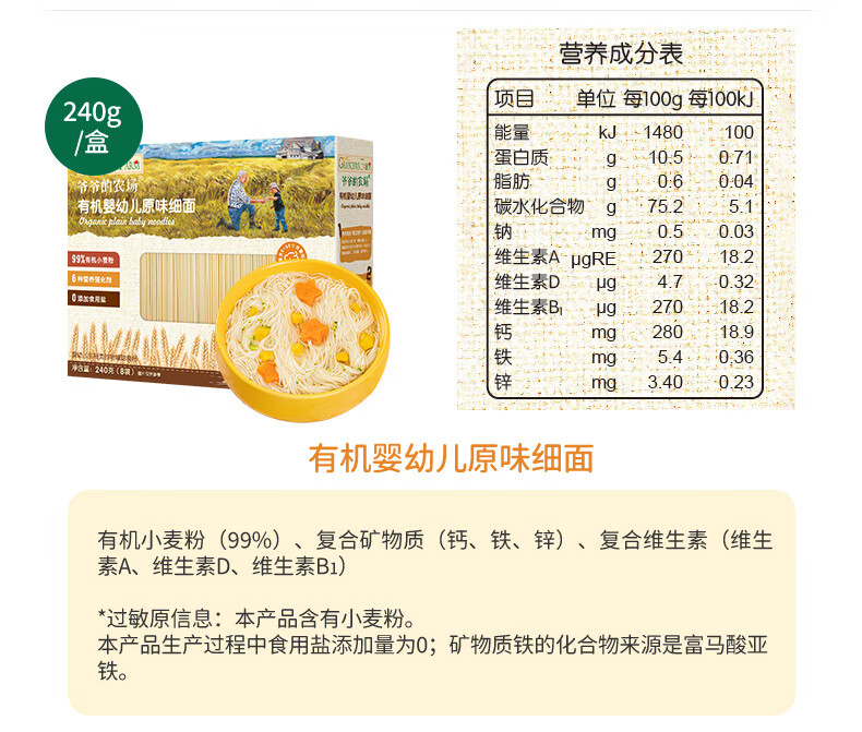 爷爷的农场宝宝主食有机面条 婴儿辅食 儿童婴幼儿无盐高铁面食婴儿面条 9月+混合营养蝴蝶面200g