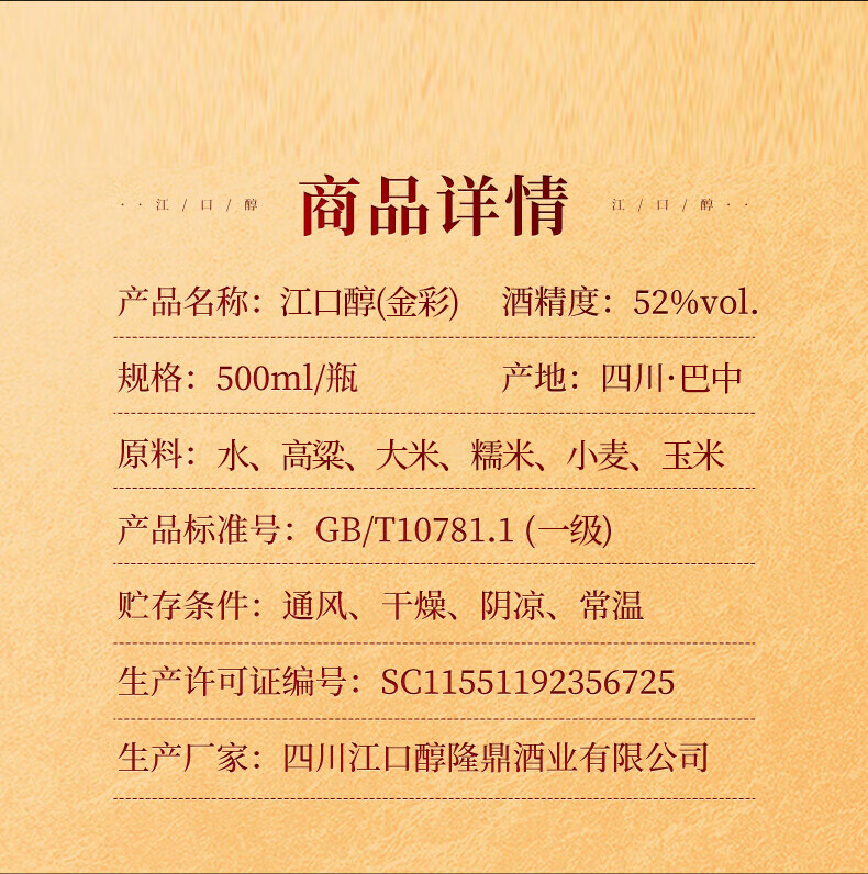 江口醇【老酒友宝藏】四川老窖 浓香型白酒 纯粮食口粮酒 52度500ml单瓶