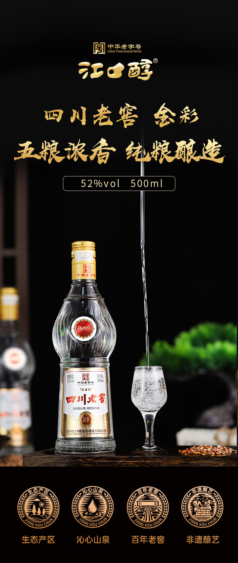 江口醇中华老字号四川老窖52度浓香型白酒光瓶口粮酒纯粮酿造白酒 52度 500mL 1瓶