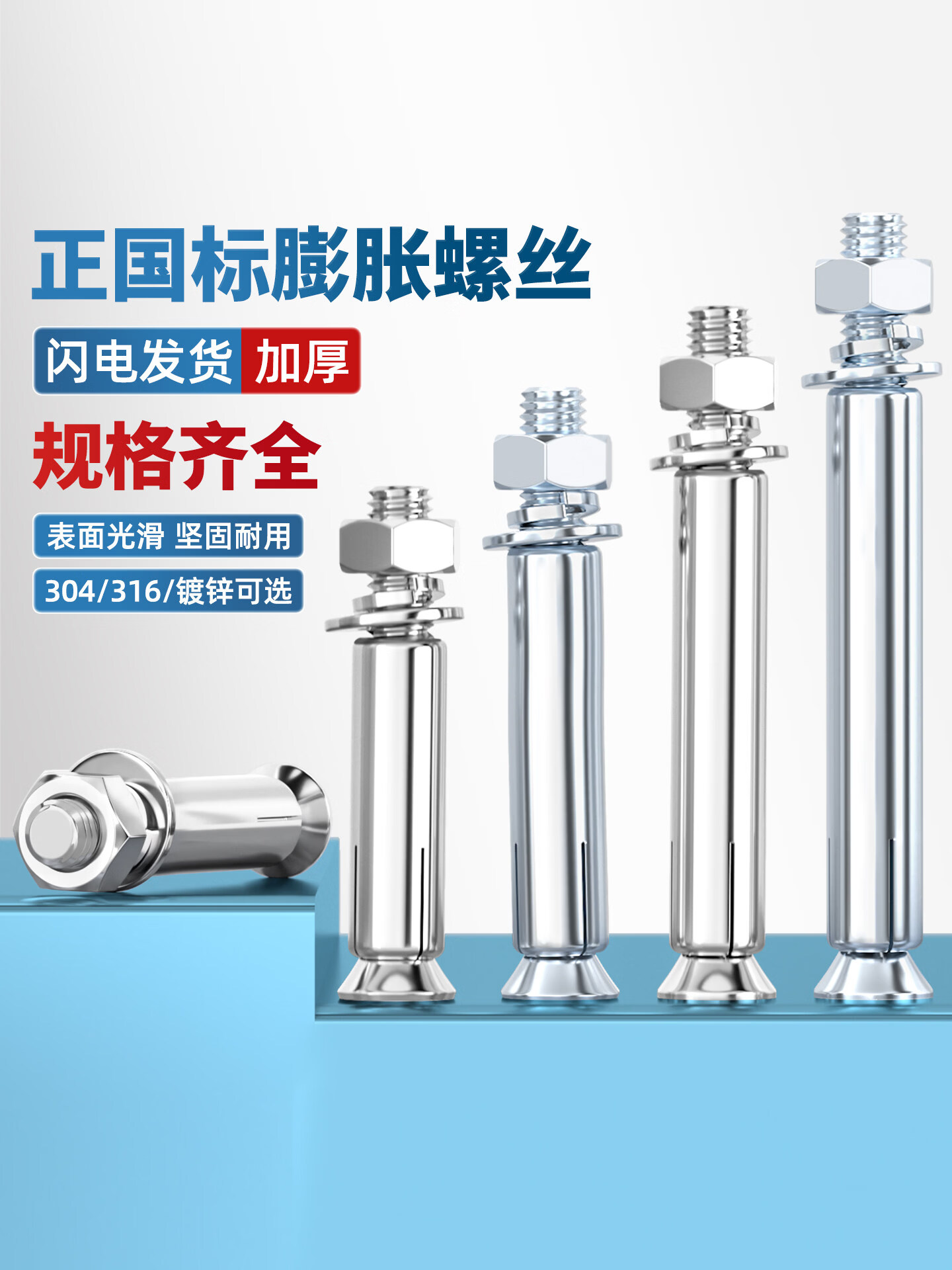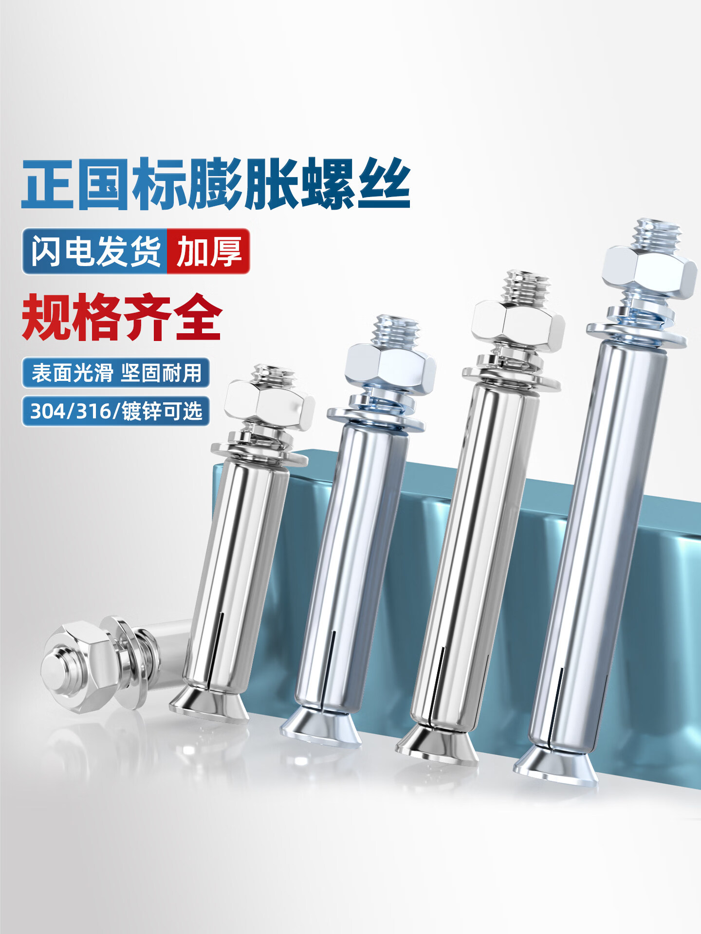 天卓五金国标304/316不锈钢膨胀螺丝螺栓加长拉爆膨胀管钉外管M6M8M10M12 --以下为碳钢镀锌--