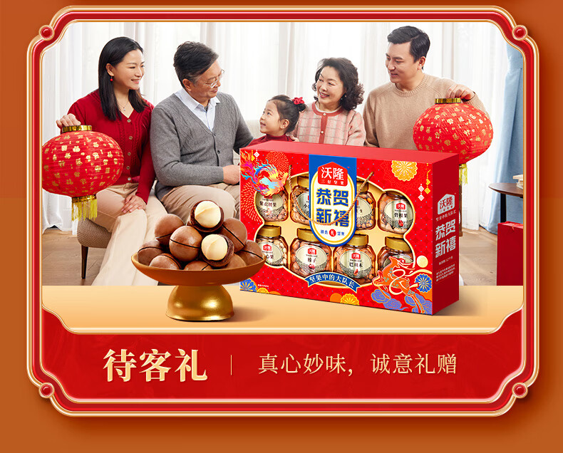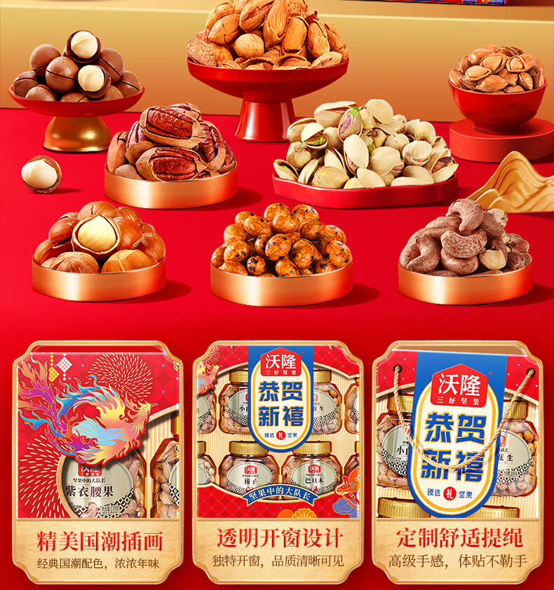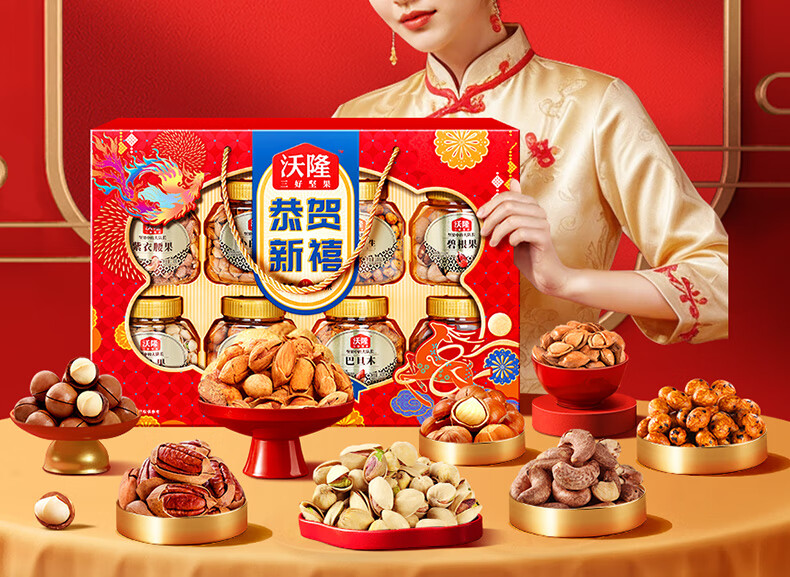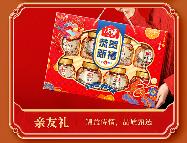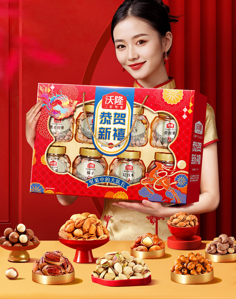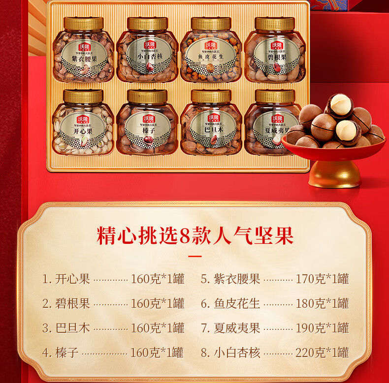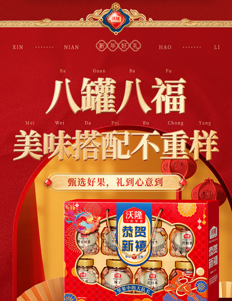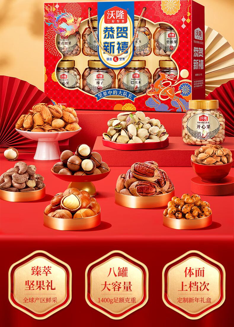 沃隆 坚果礼盒开心果碧根果年货礼盒团购送礼每日坚果炒货休闲零食 【8大罐纯坚果】1.4kg恭贺新禧