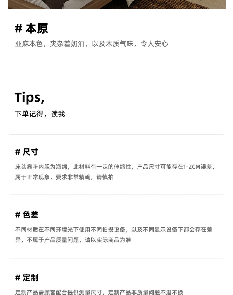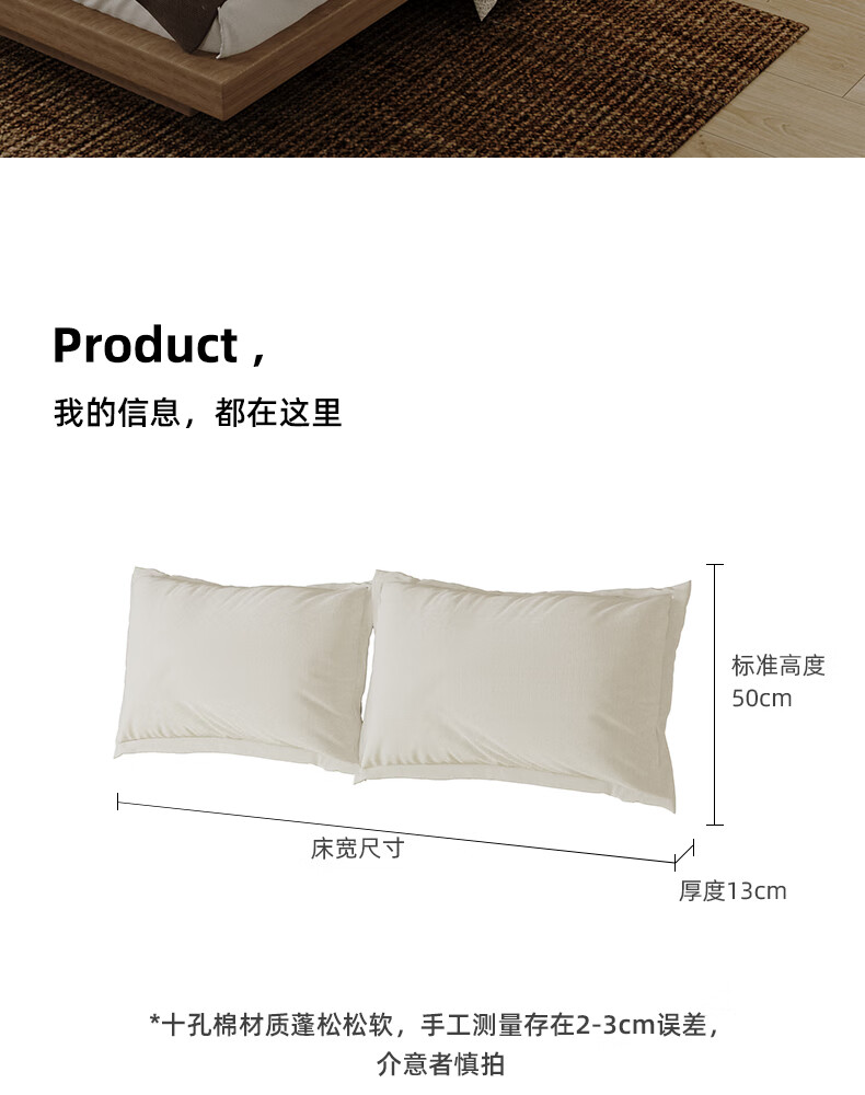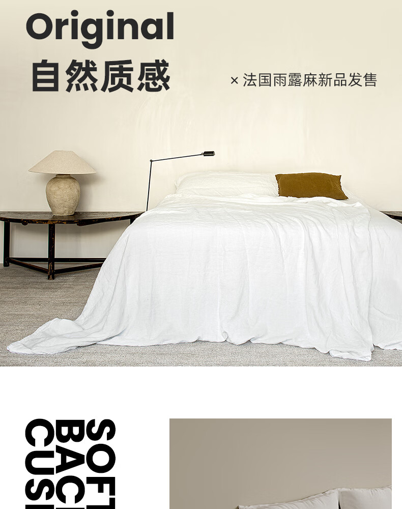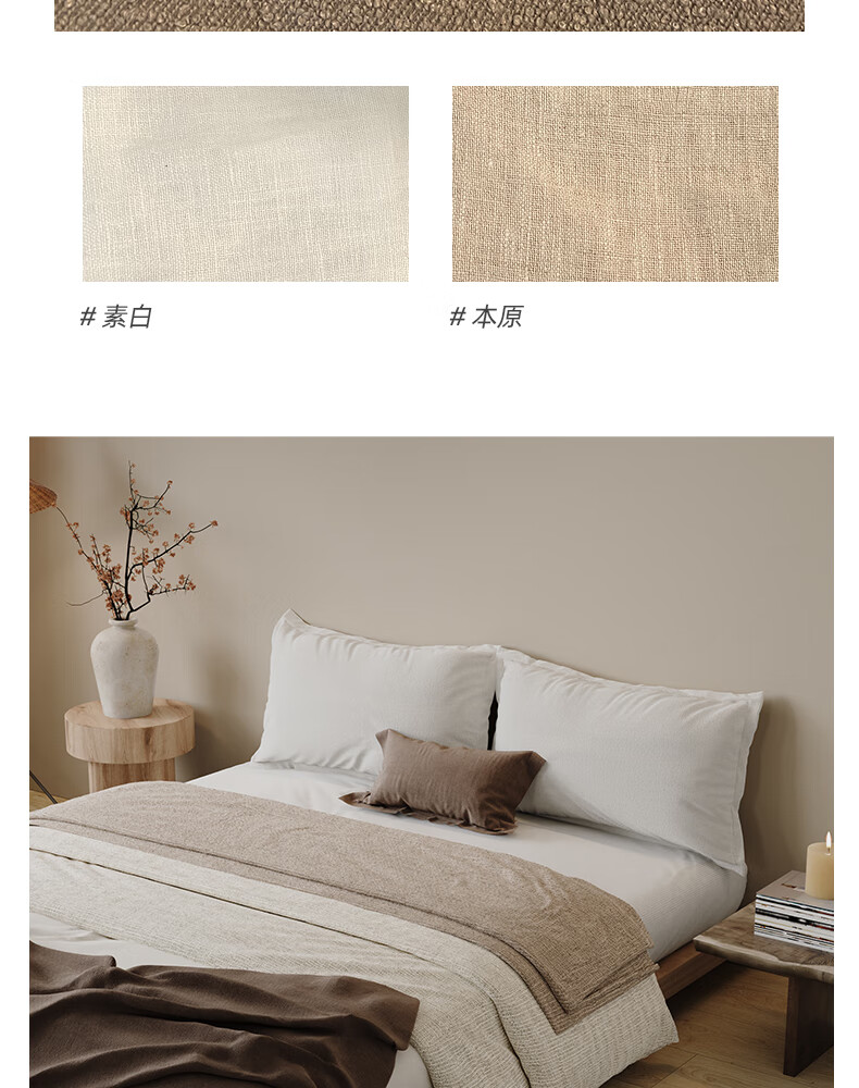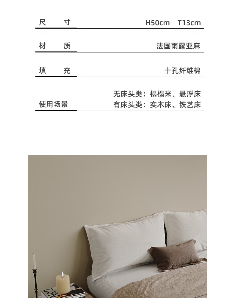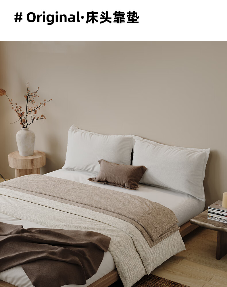 之于间进口亚麻床头靠背软包 双包榻榻米无床头靠背垫可拆洗沙发大靠枕 本原色 90cm*50cm*13cm 含枕芯 (2件)【即床宽1.8米】