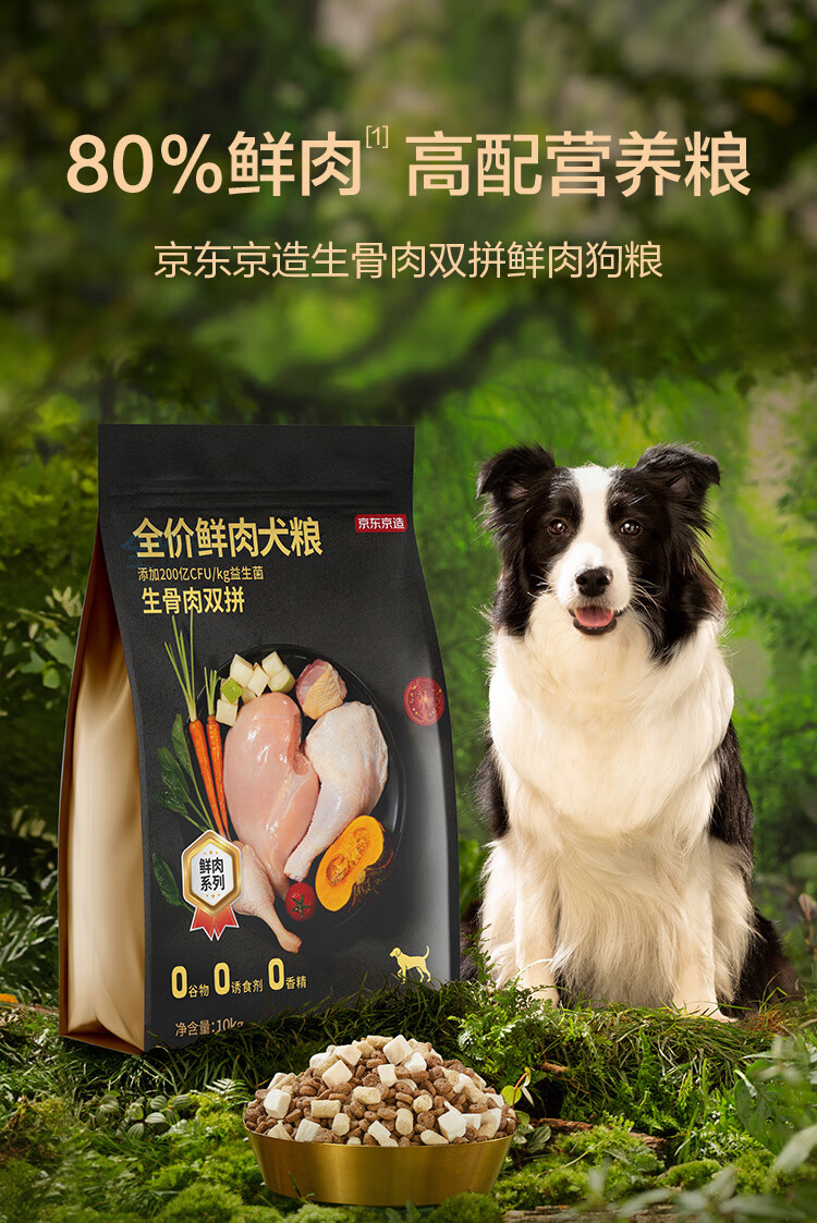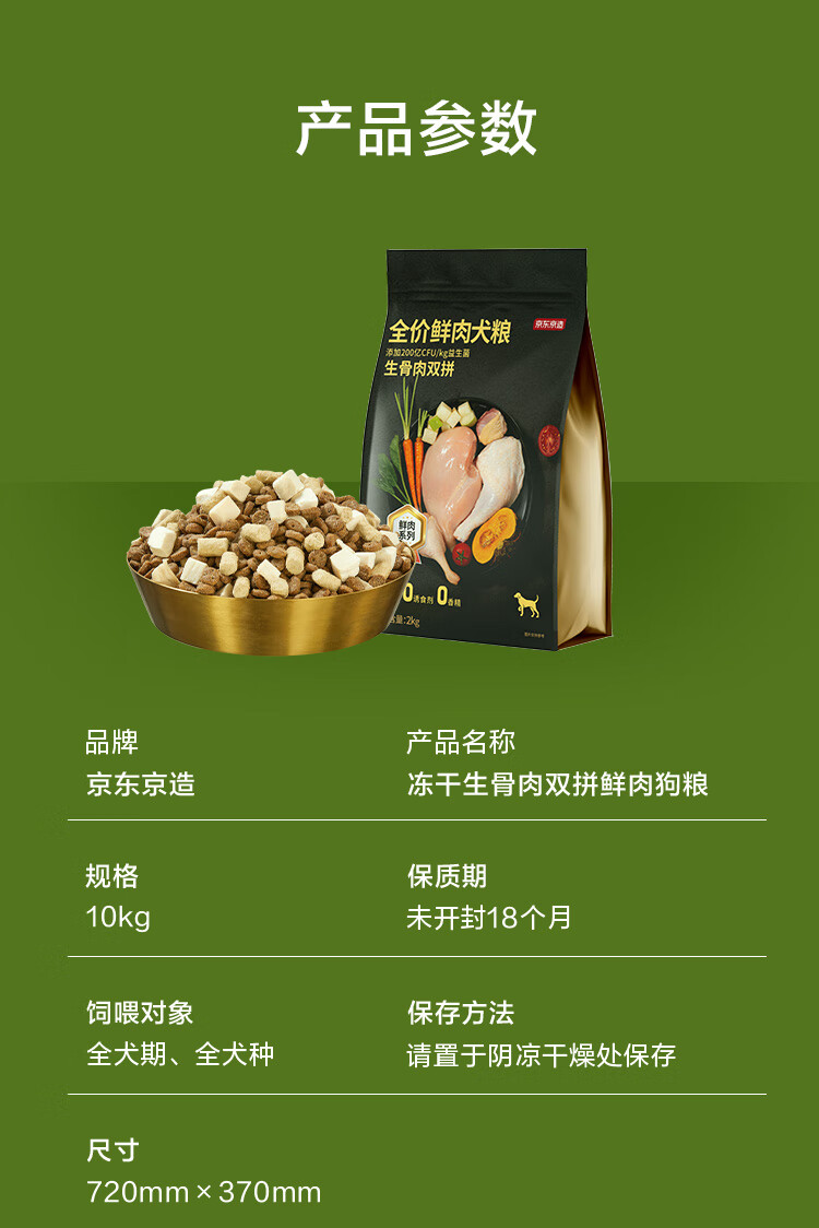 京东京造狗粮成幼犬鲜肉冻干双拼狗粮10kg/20斤全价生骨肉益生菌