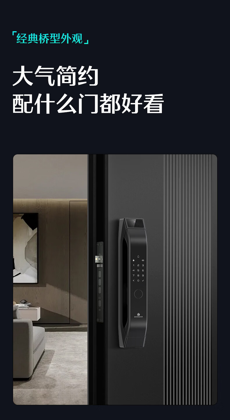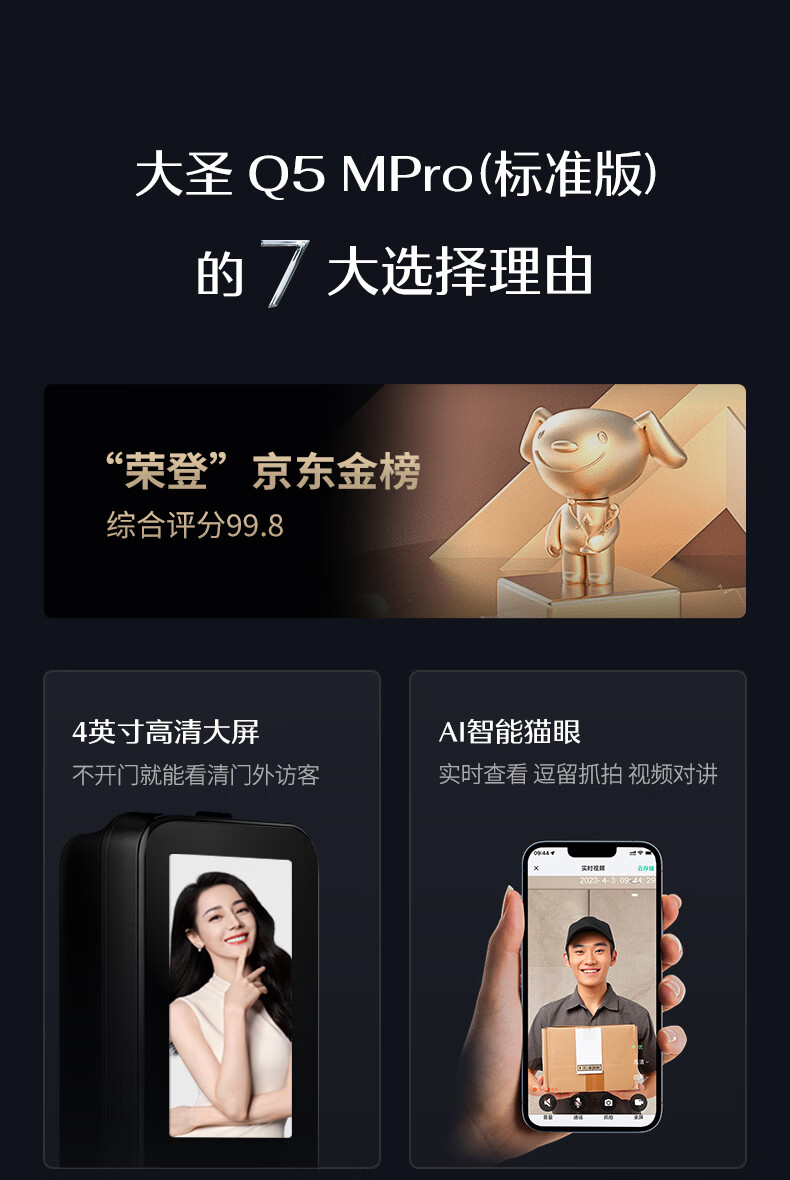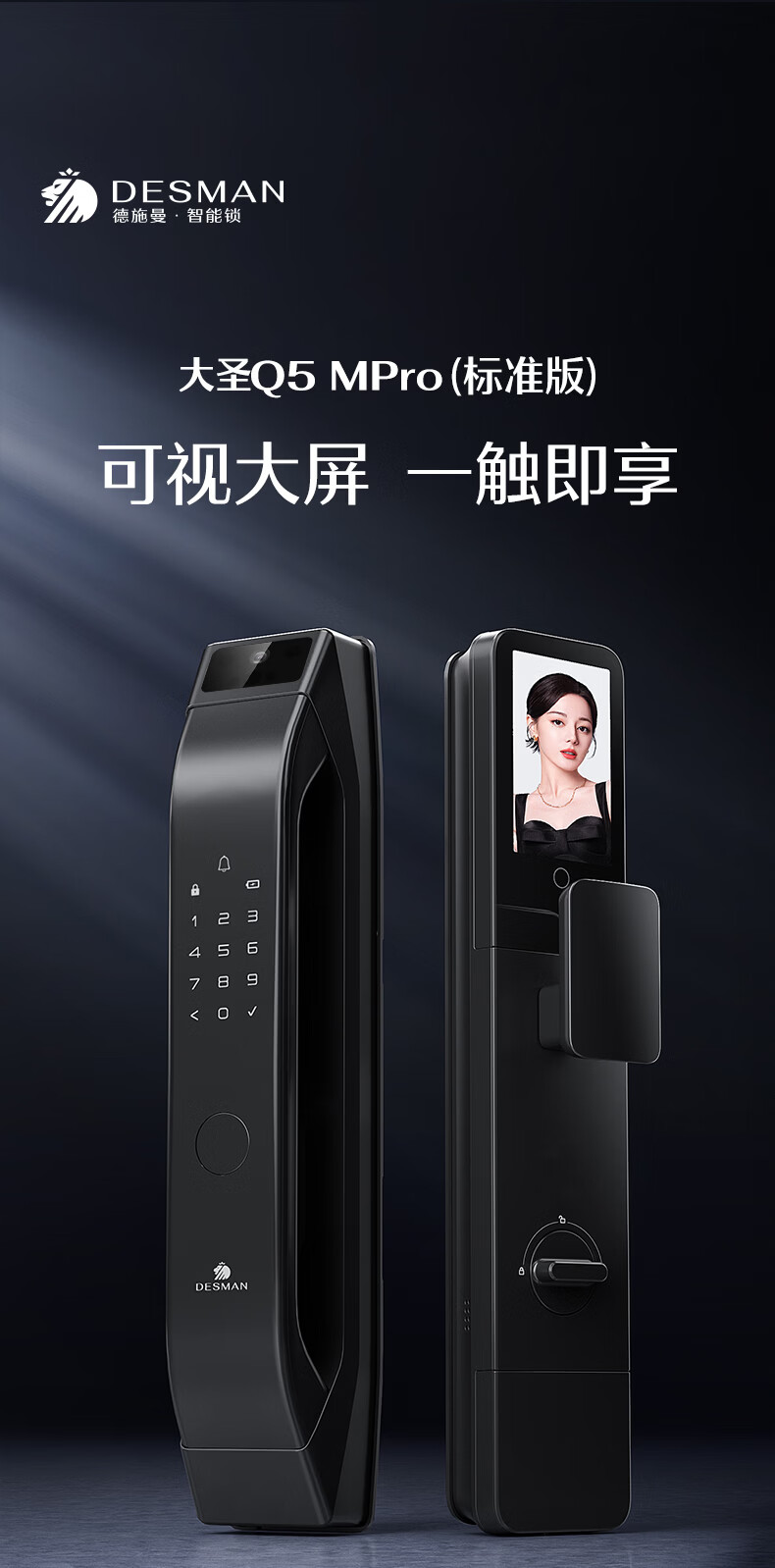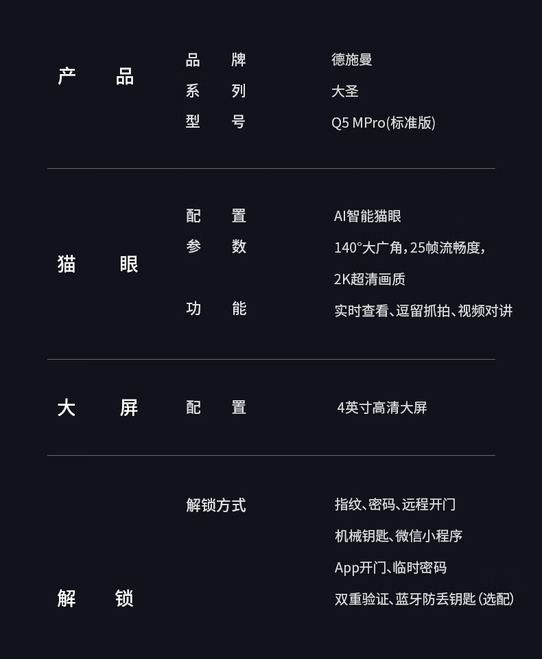 德施曼(DESMAN)智能门锁可视猫眼大屏指纹密码防盗门锁大圣Q5MPro标准版新性能 高端黑