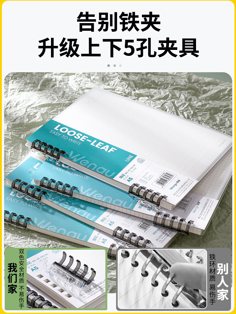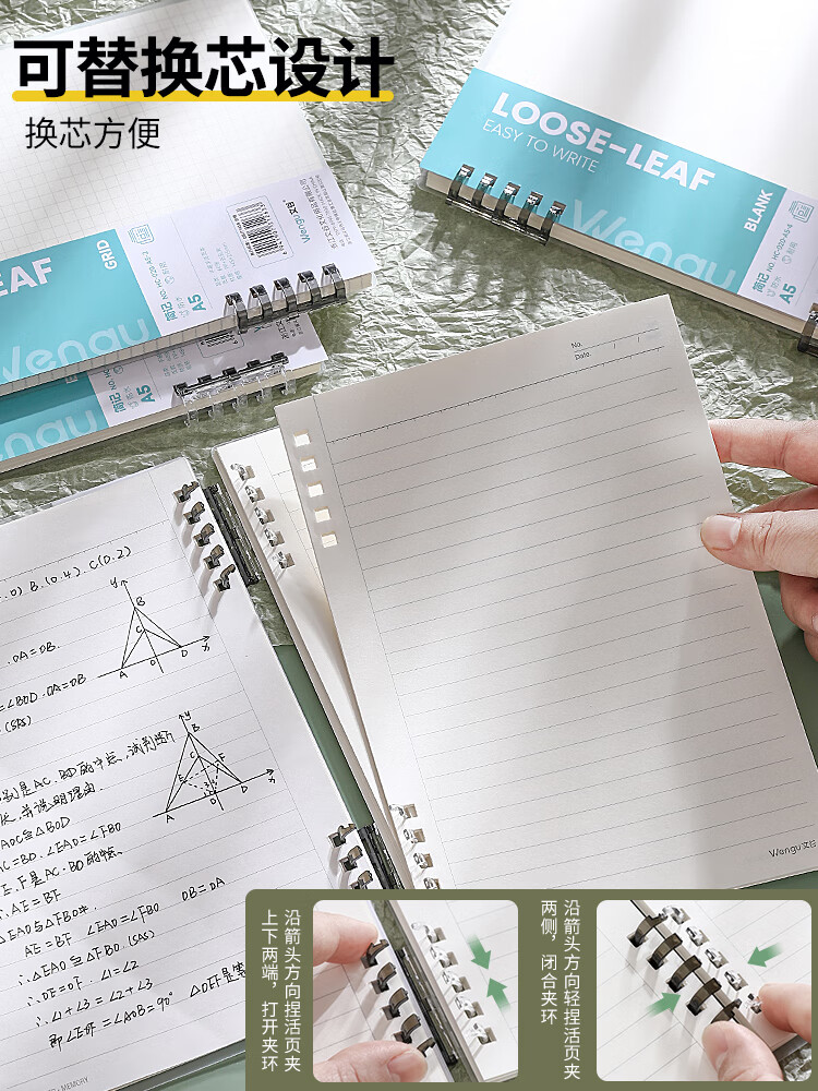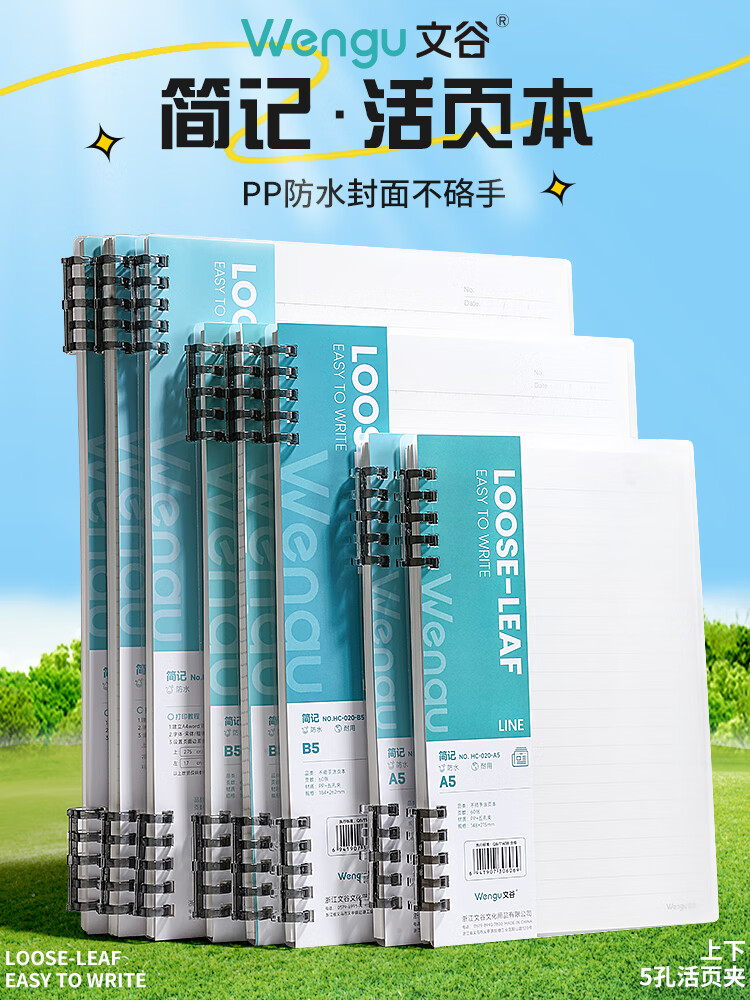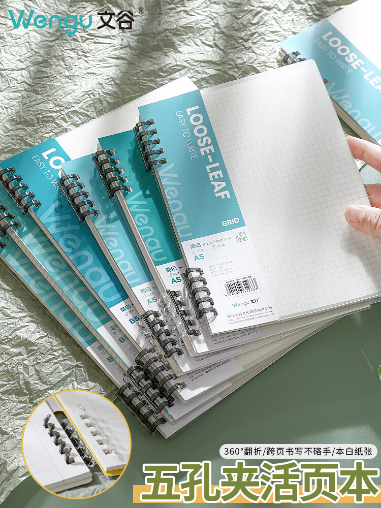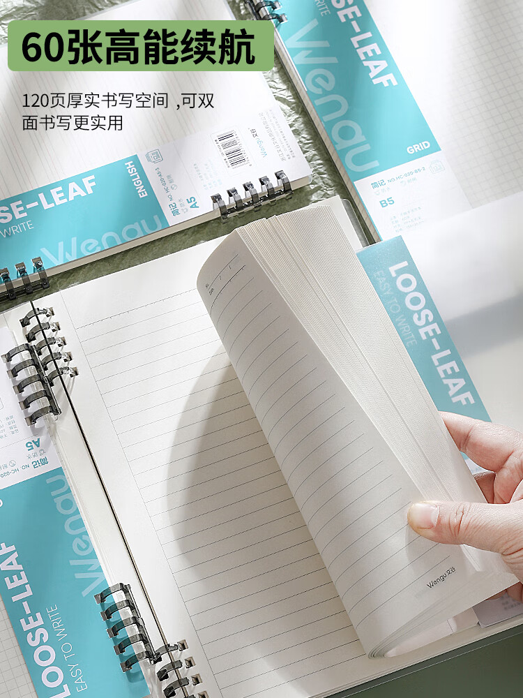 文谷(Wengu)可拆卸五孔夹a4/60张活页本高颜值ins风简约透明笔记本本子学生用 HC-020(A4)-1横线