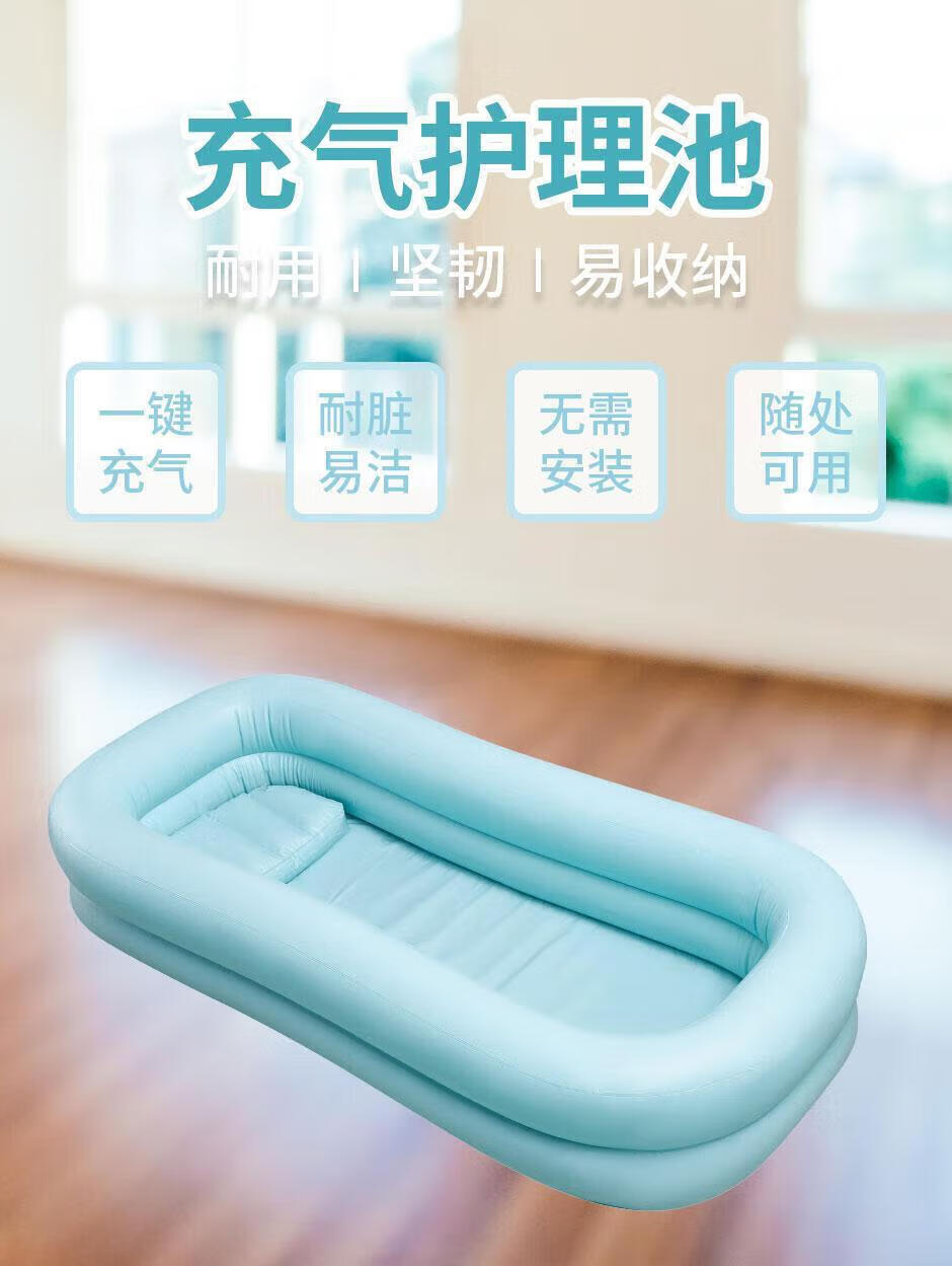 通用卧床洗澡神器 老年护理病人PVC充气洗澡神器泡澡盆床上洗澡盆 环 [品质双层]护理池+维修包