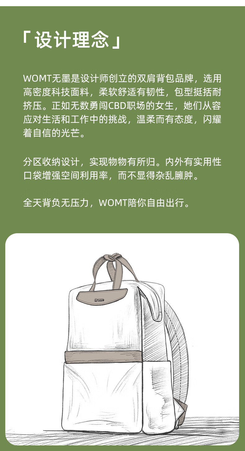 WOMT女士双肩包大容量12/14/15英寸防泼水牛津布通勤旅行日常妈咪背包 黑色【32*16*36cm】
