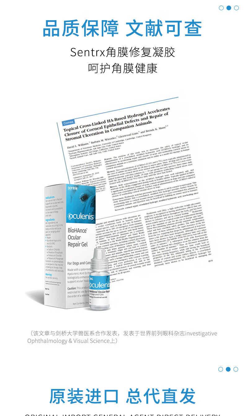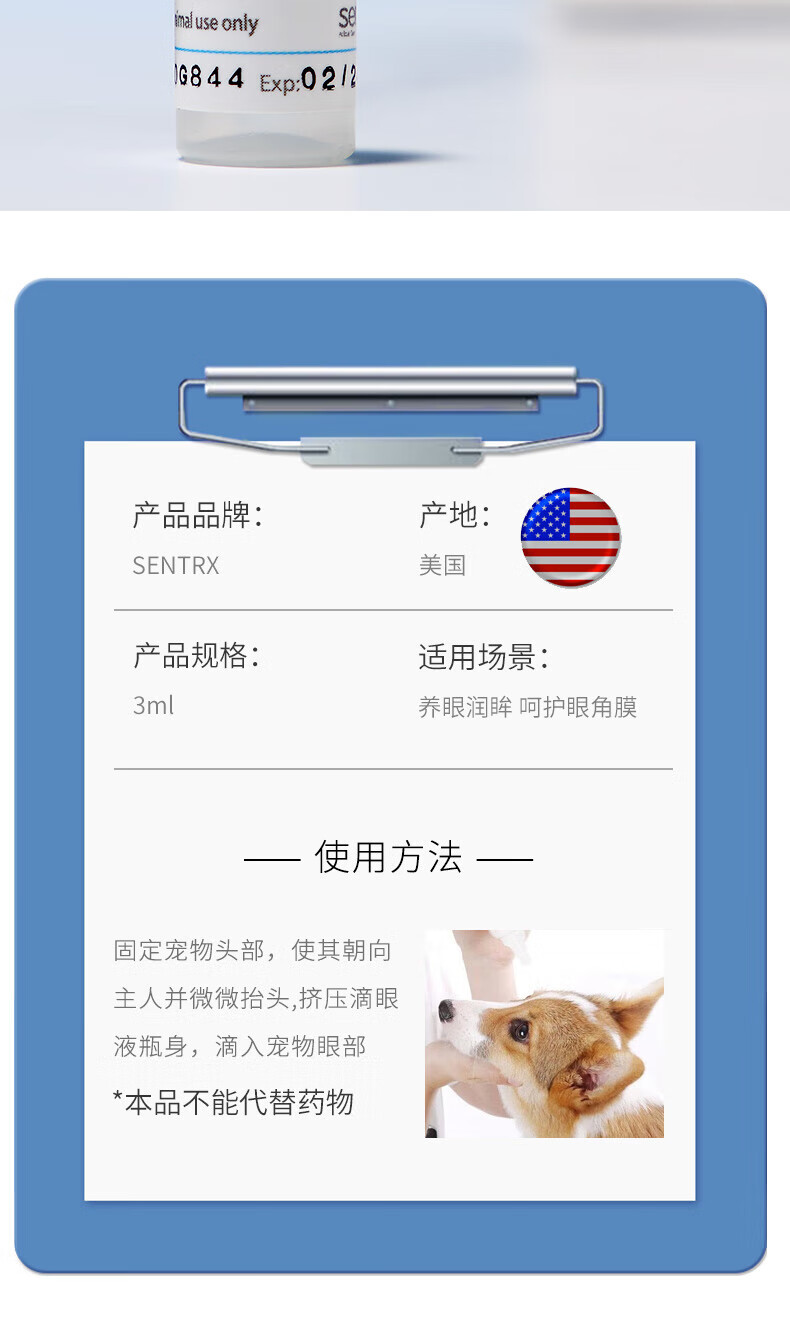 SENTRX美国进口闪粹角膜腐骨修复凝胶眼药水宠物狗猫角膜炎溃疡干眼症 SentrX闪粹凝胶滴眼液5ml