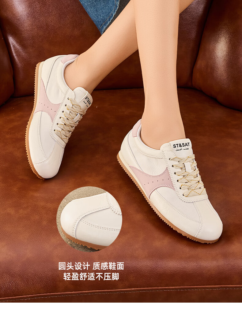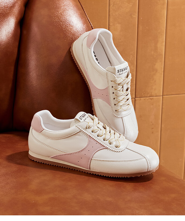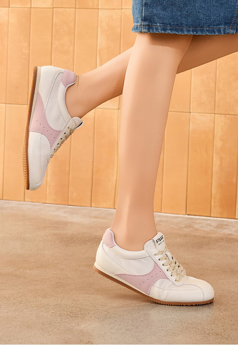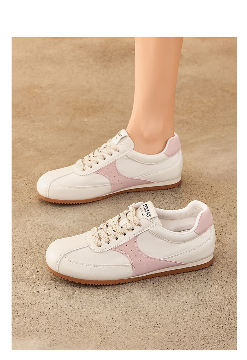 星期六复古拼色德训鞋女款2025秋季新款平底舒适阿甘鞋运动休闲鞋 米/粉 37