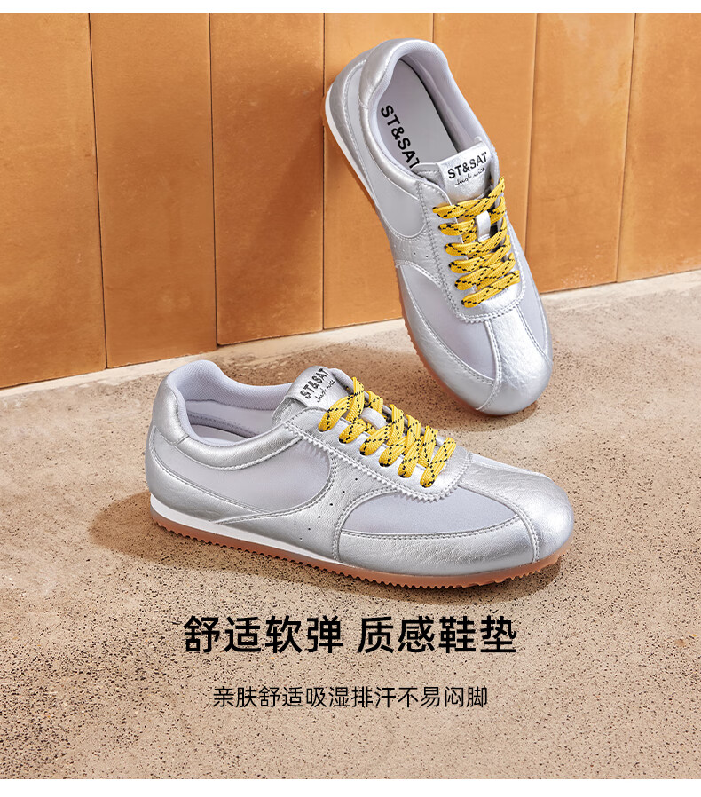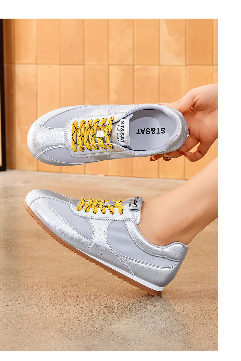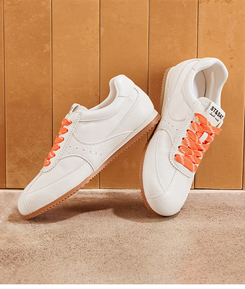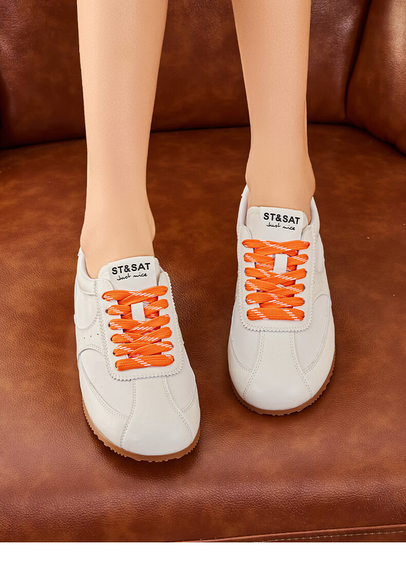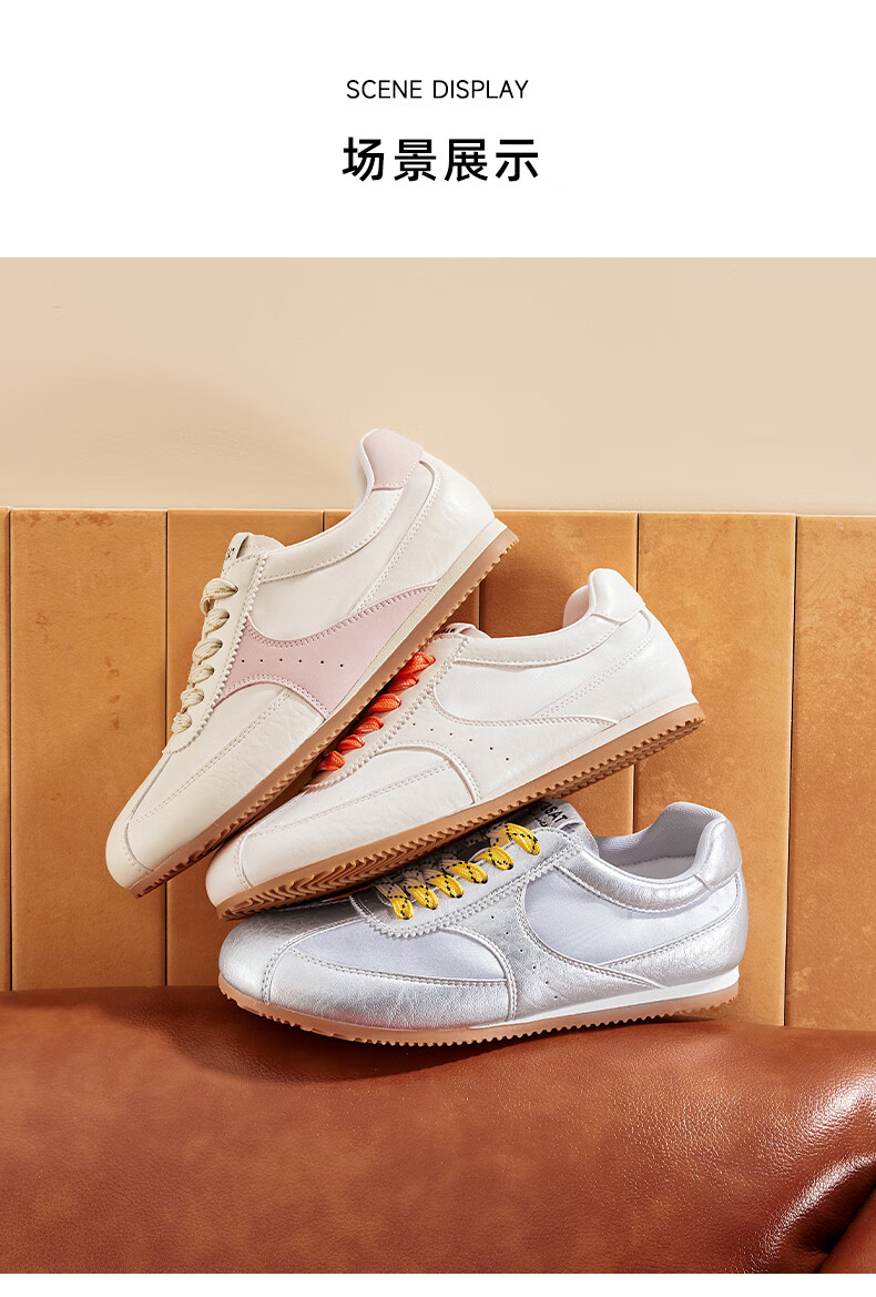 星期六复古拼色德训鞋女款2025秋季新款平底舒适阿甘鞋运动休闲鞋 米/粉 37