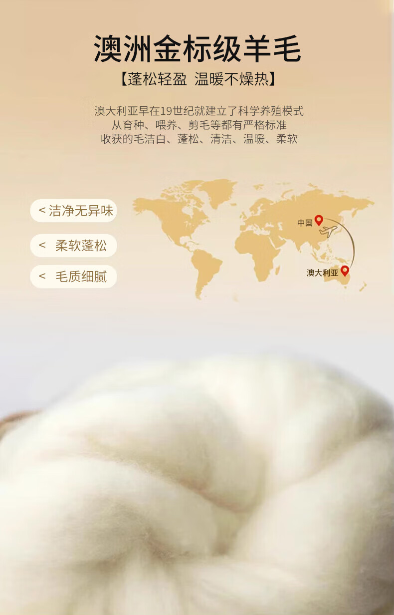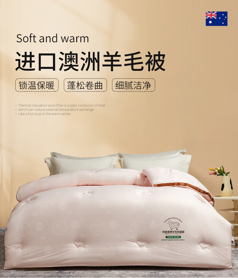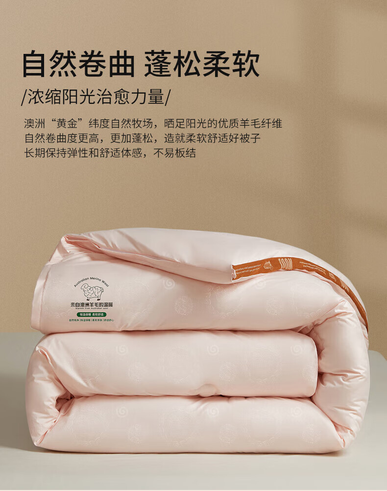 恒源祥高端A类进口澳洲绵羊毛被子10斤厚冬被冬被8斤加厚被芯春秋被保暖 白色 150*200cm【3.6斤春秋被】