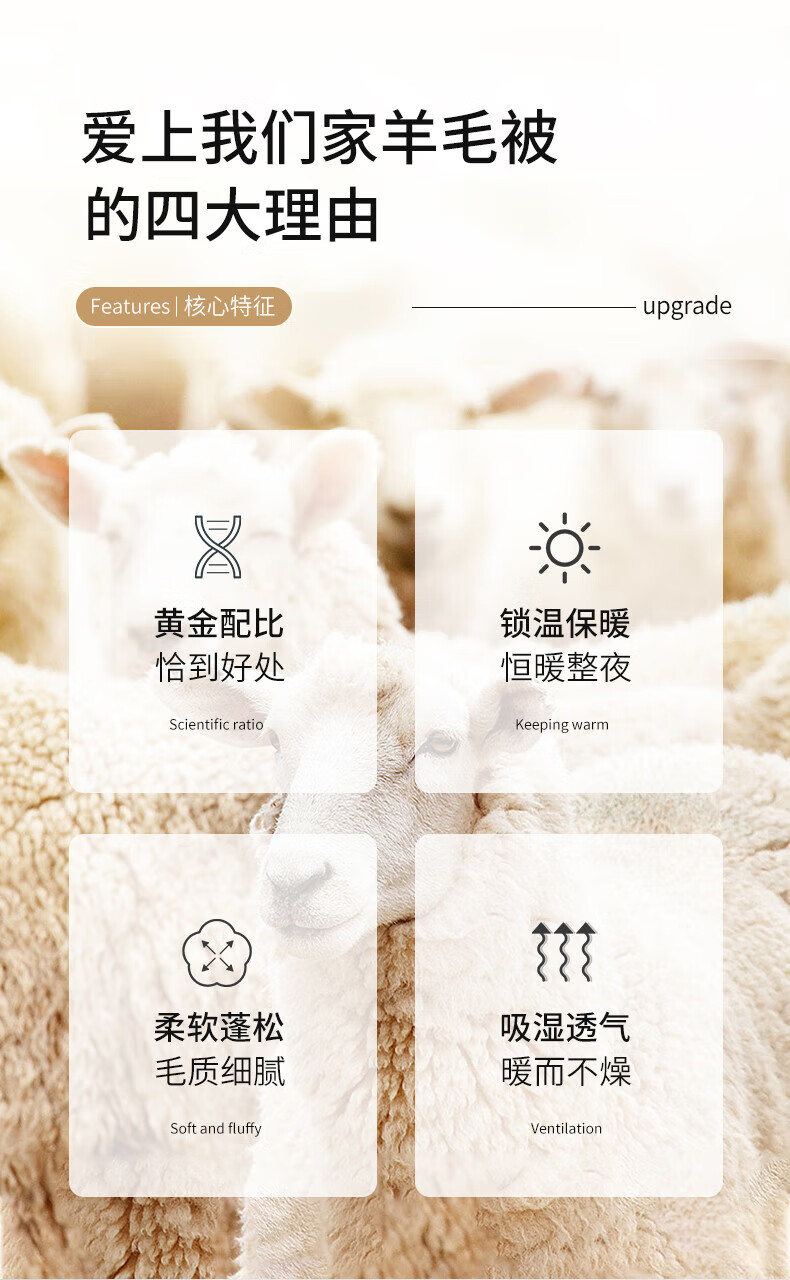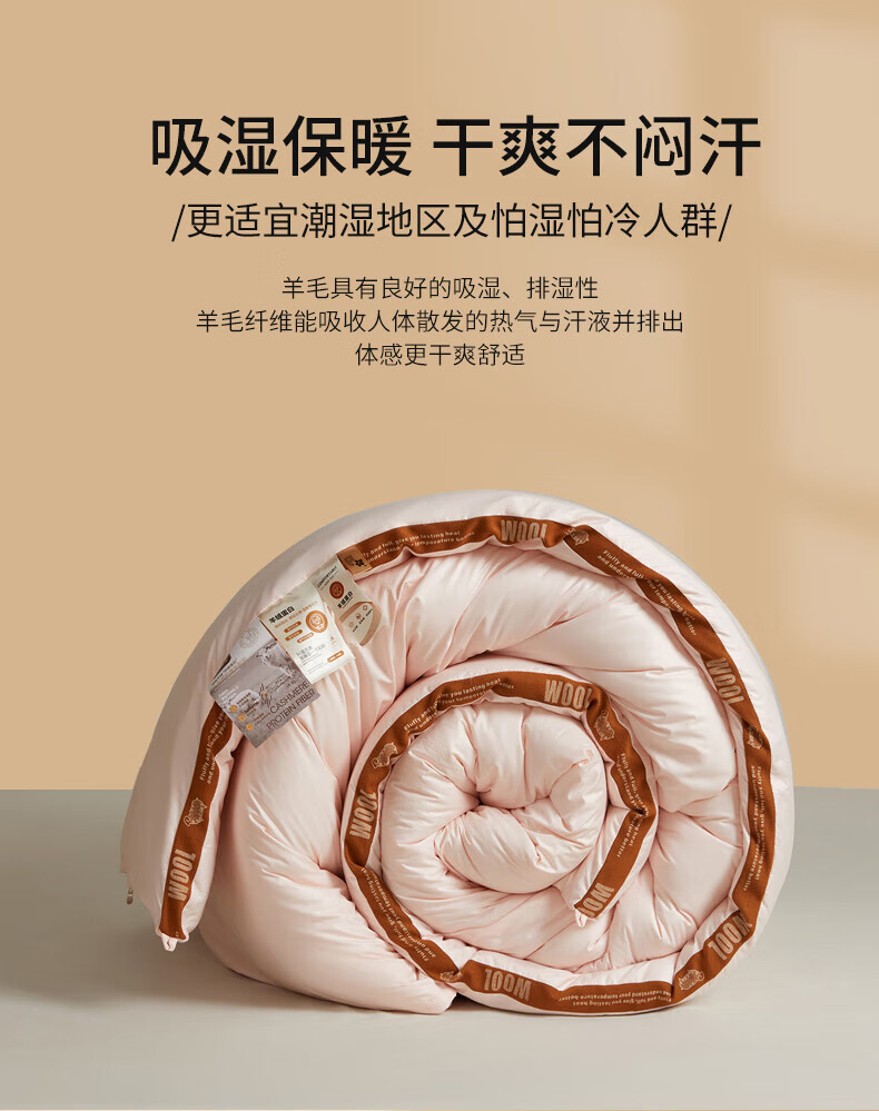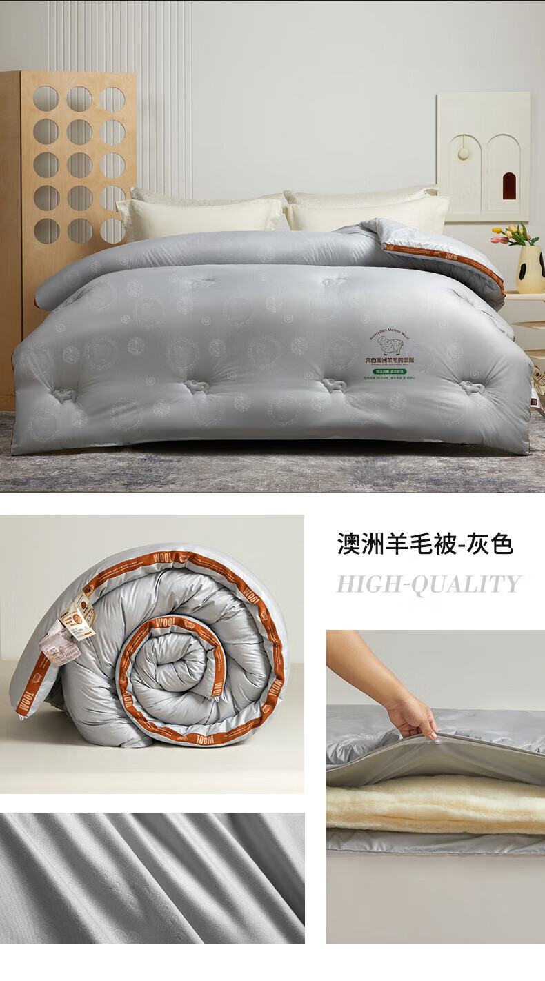 恒源祥澳洲进口羊毛被子母婴A类抗菌冬被儿童学生宿舍四季被芯单人被褥 羊毛被-白色 150x200cm【3.8斤夏被】