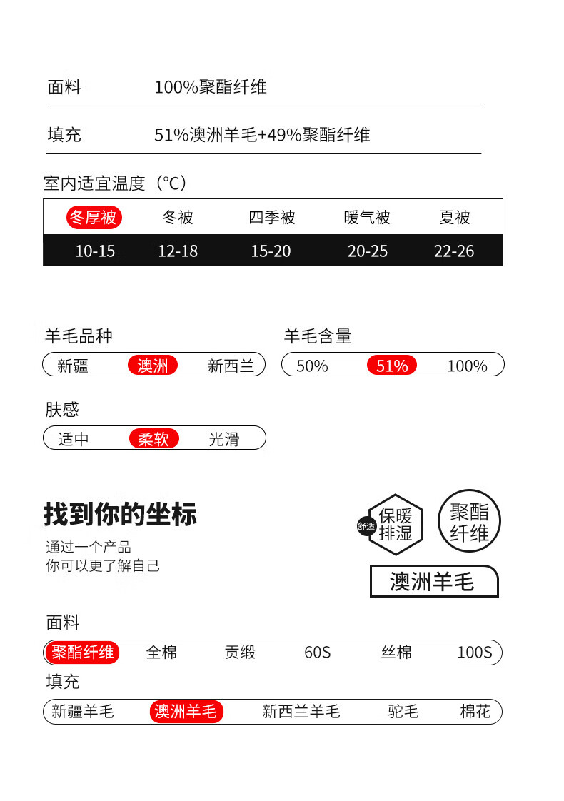恒源祥澳洲羊毛被春秋被冬被芯加厚保暖羊毛单人被子10斤厚棉被褥 白色 150x200cm【4斤夏被】