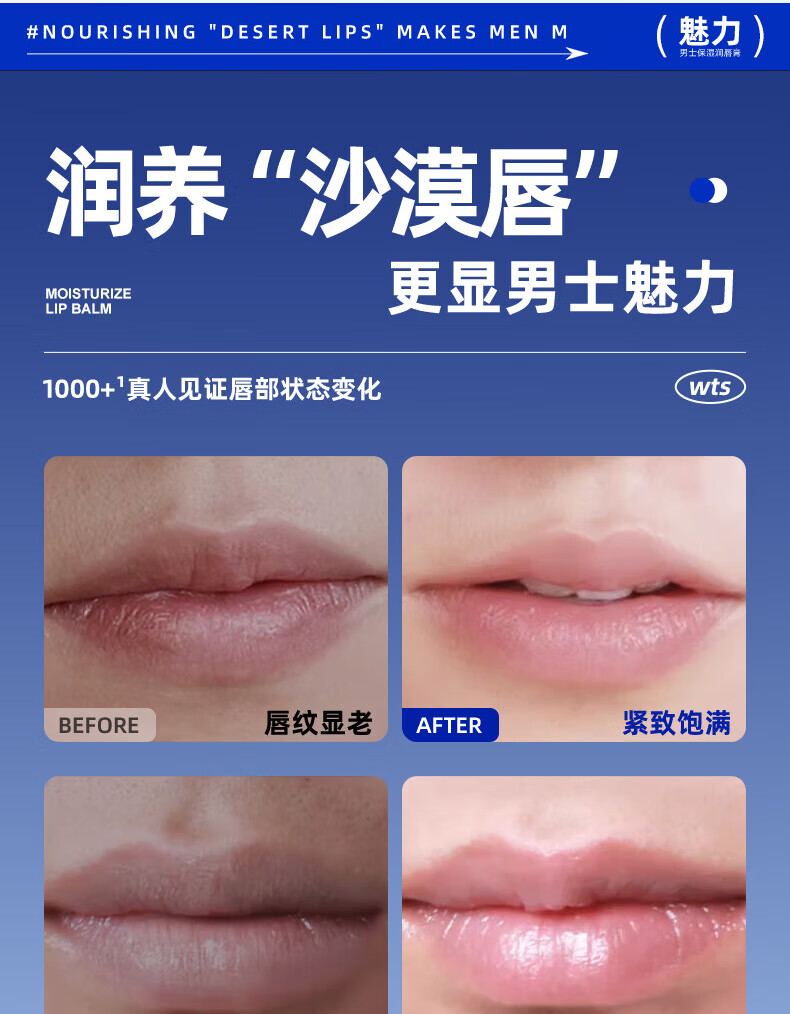 OHBT润唇膏男士专用3.5g嘴唇防干裂脱皮护唇膏淡唇纹保湿补水去死皮女