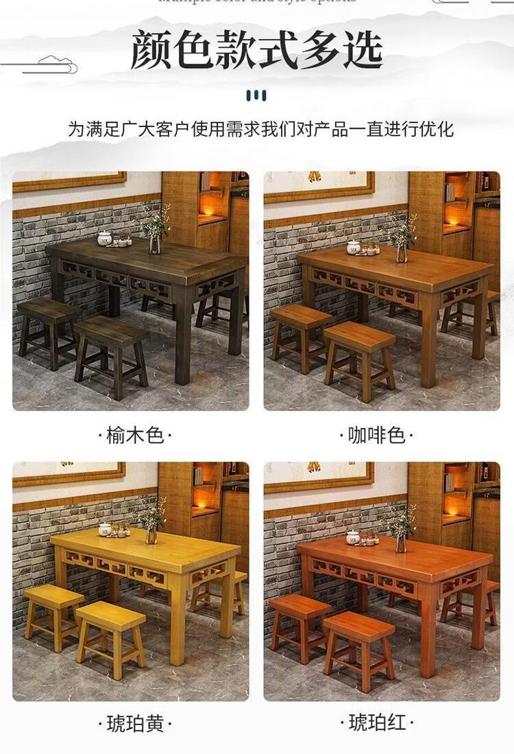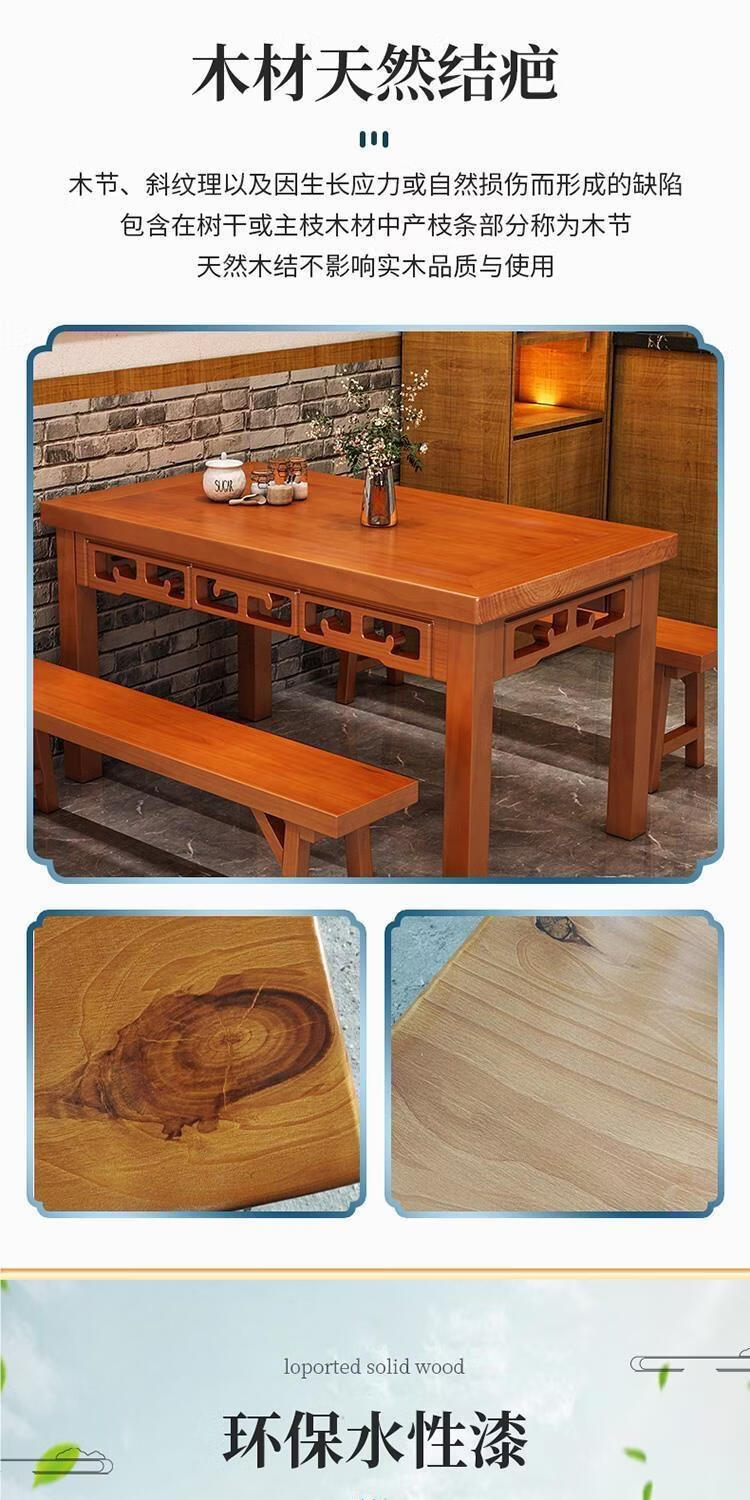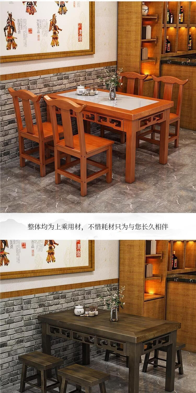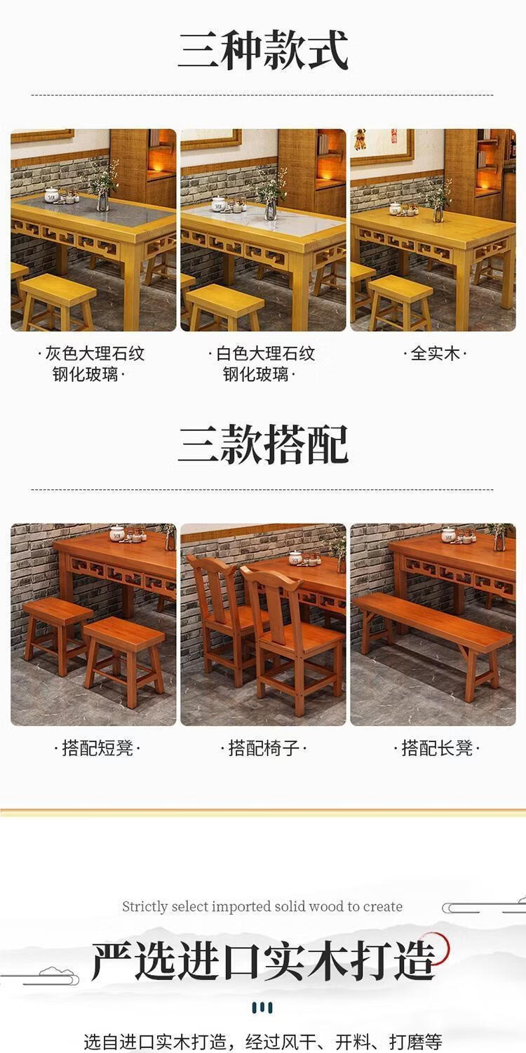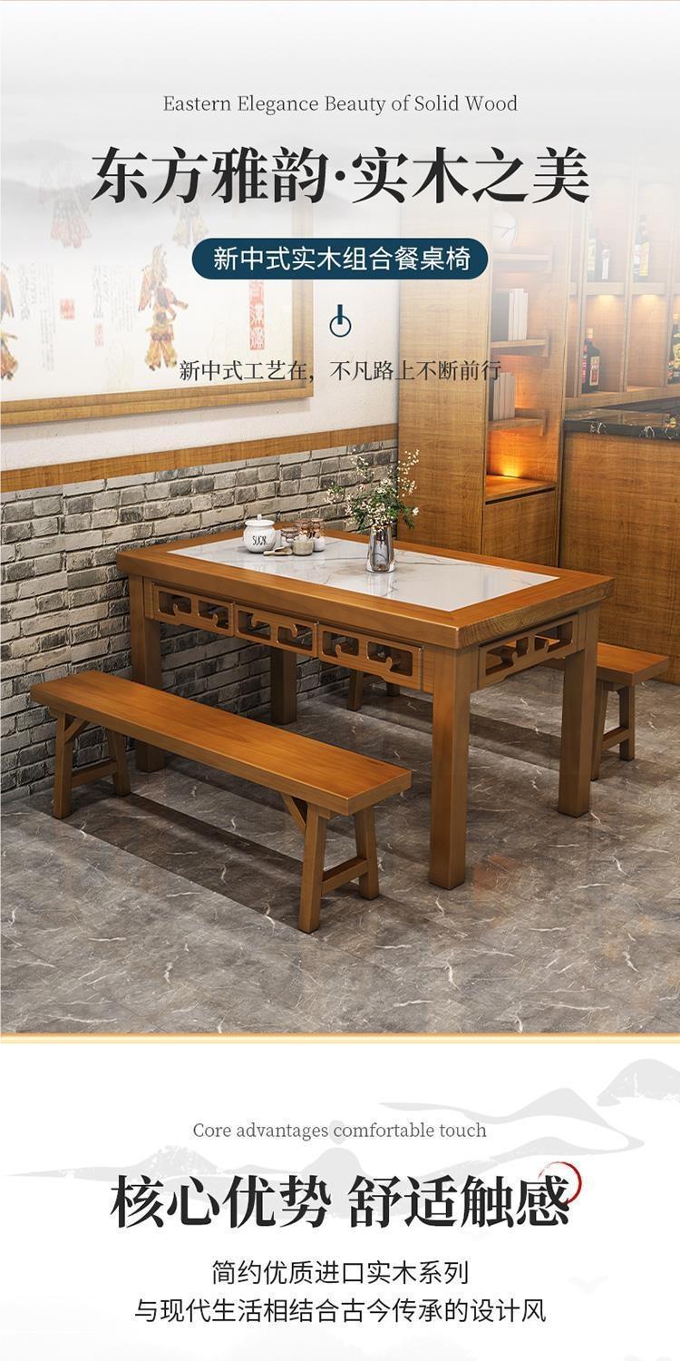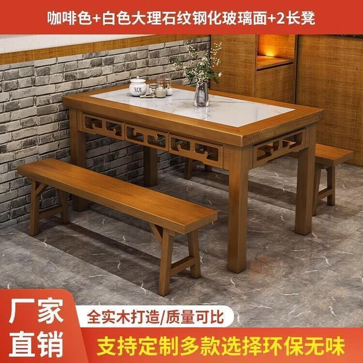 欣慕雅新中式实木饭店餐桌饭桌长方形烧烤店面馆桌早餐店小吃店桌椅直销 新款颜色+两长凳 加厚钢化玻璃 100x60x75cm