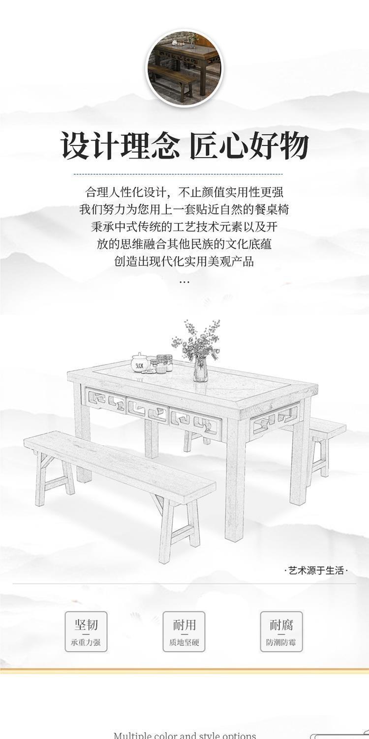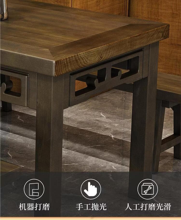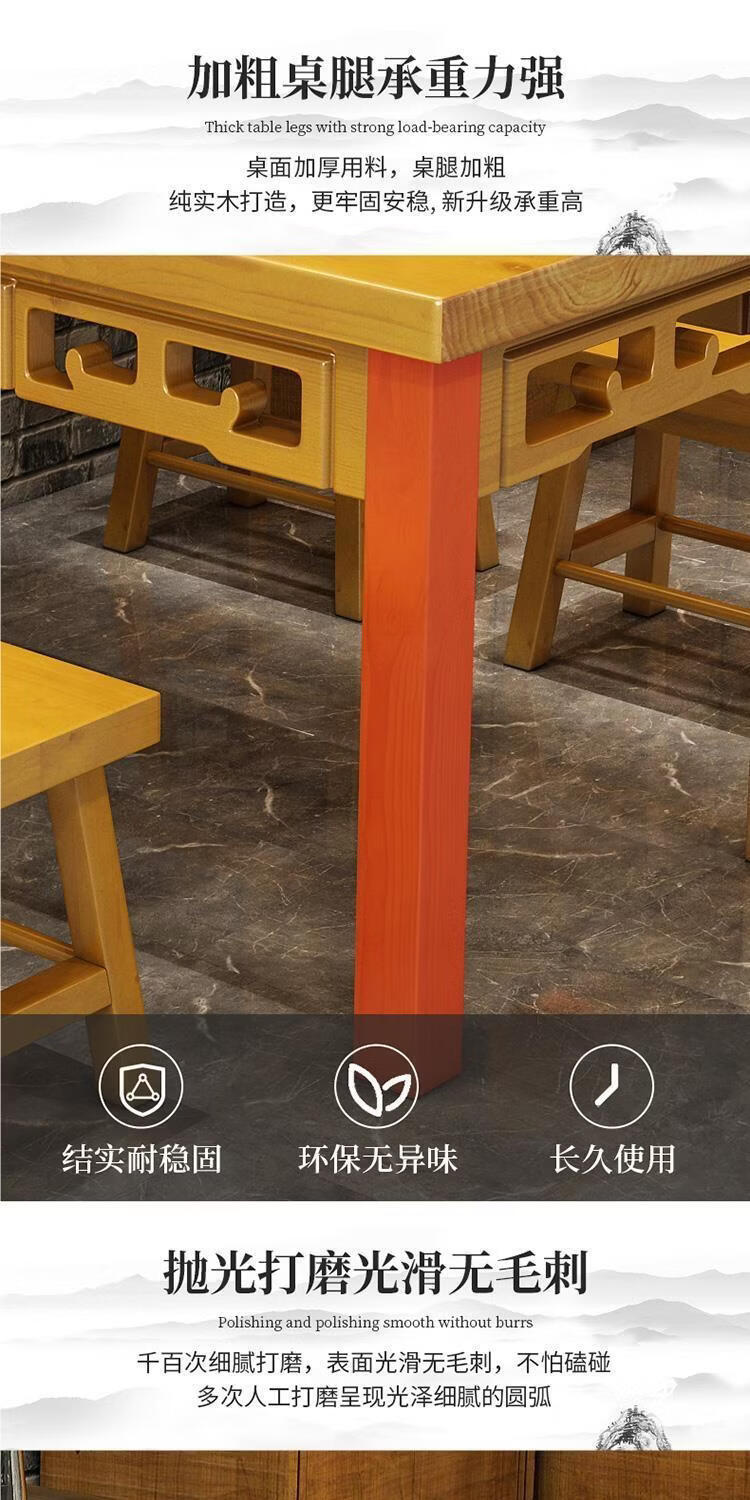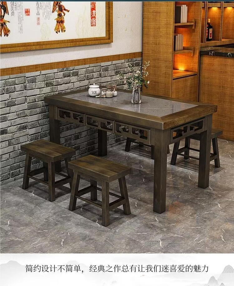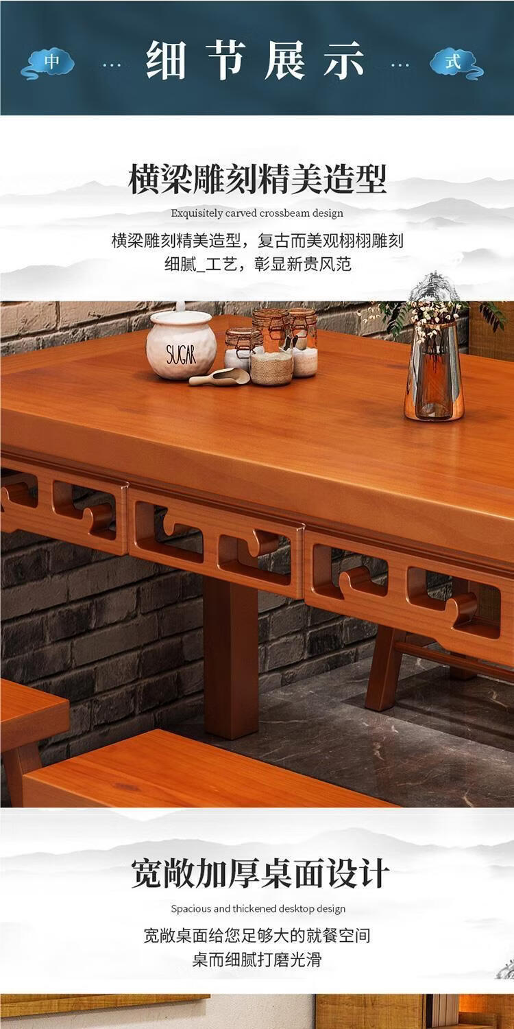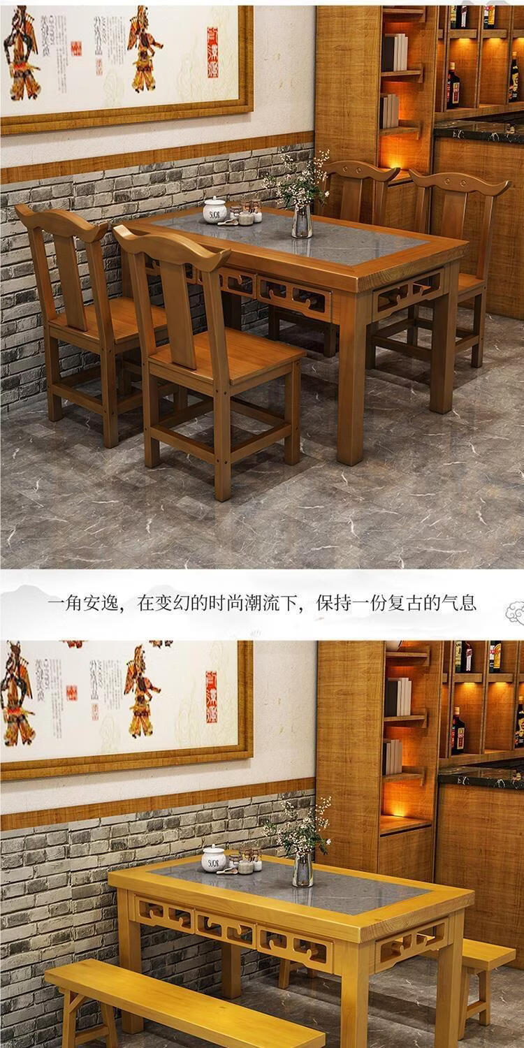 欣慕雅新中式实木饭店餐桌饭桌长方形烧烤店面馆桌早餐店小吃店桌椅直销 新款颜色+两长凳 加厚钢化玻璃 100x60x75cm