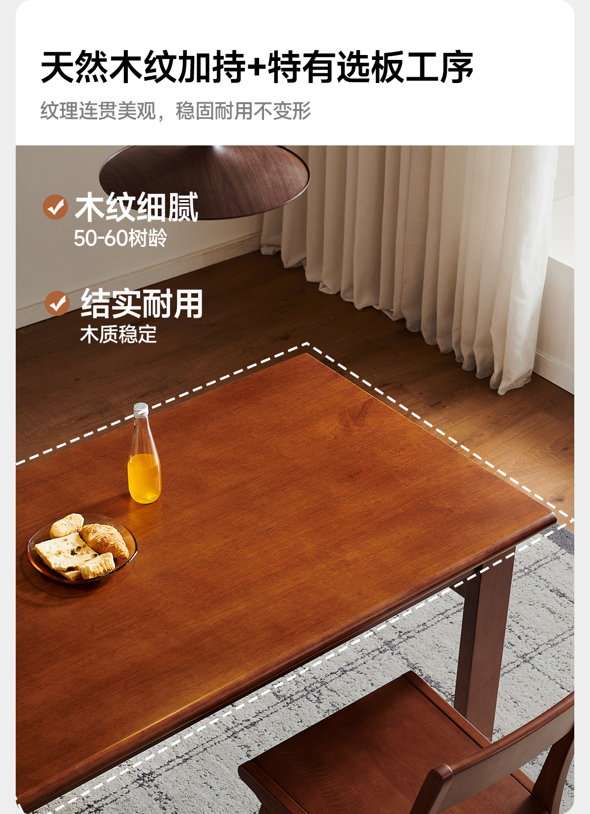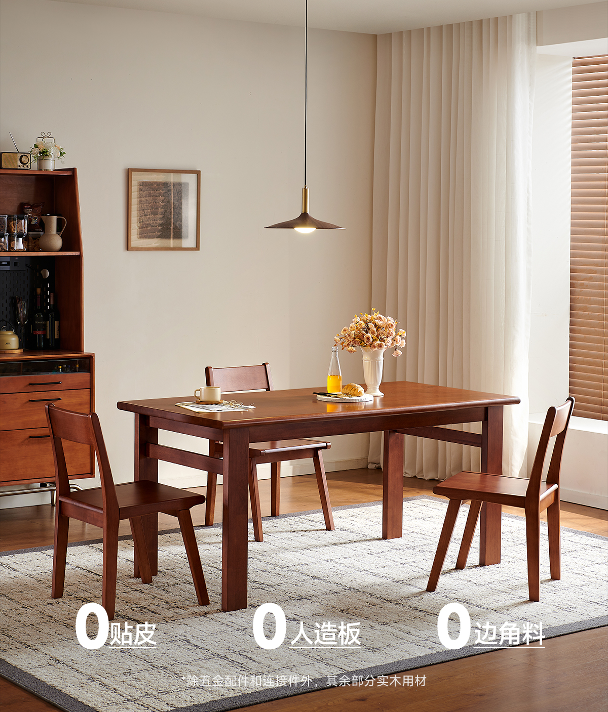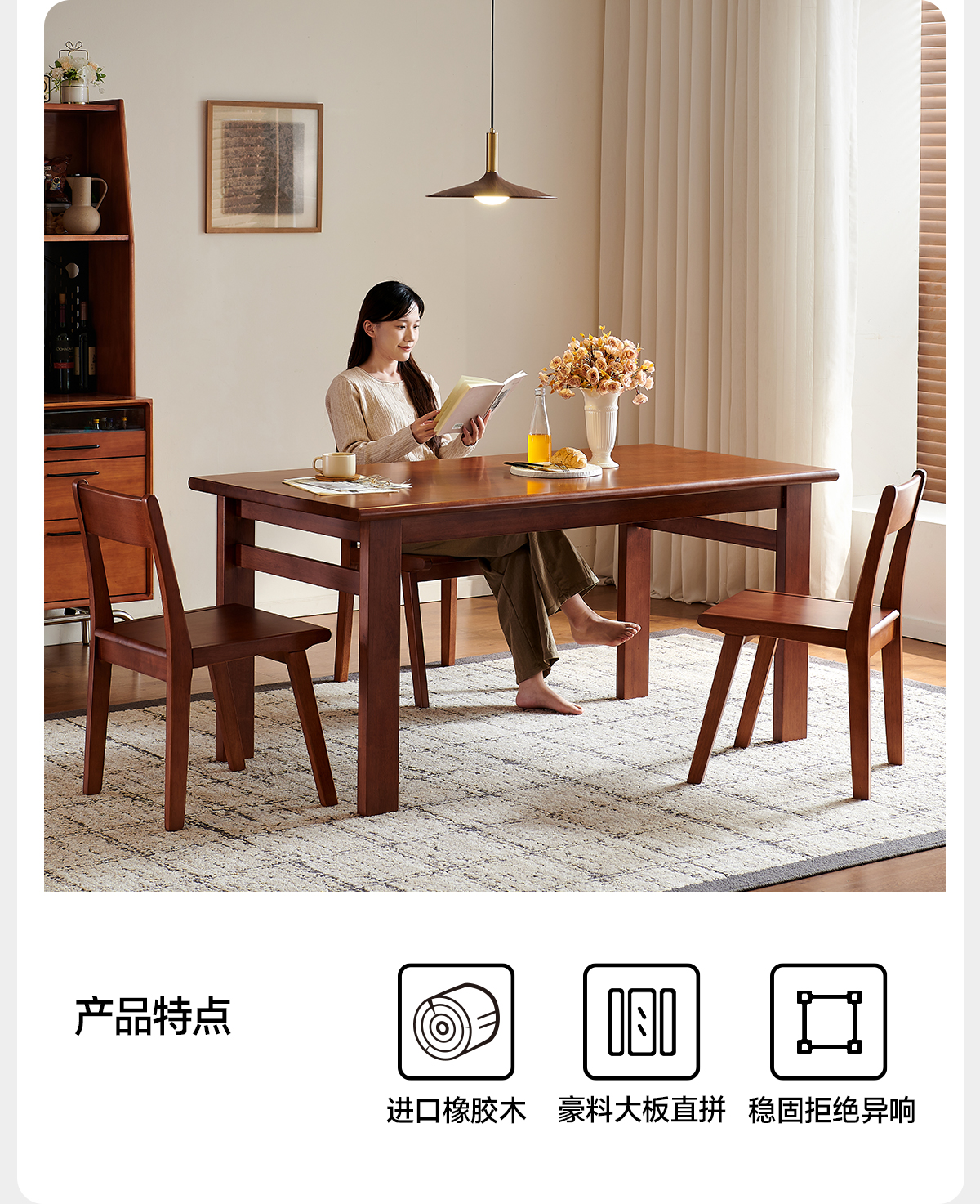 帕沙曼全实木餐桌椅家用餐厅简约小户型大板桌中古风长方形饭桌子MZ301Q 【胡桃色】实木餐桌+6椅(MX301-Q) 160cm *80cm*7cm