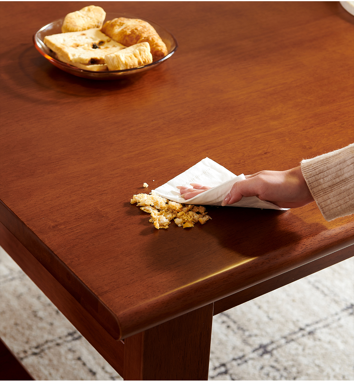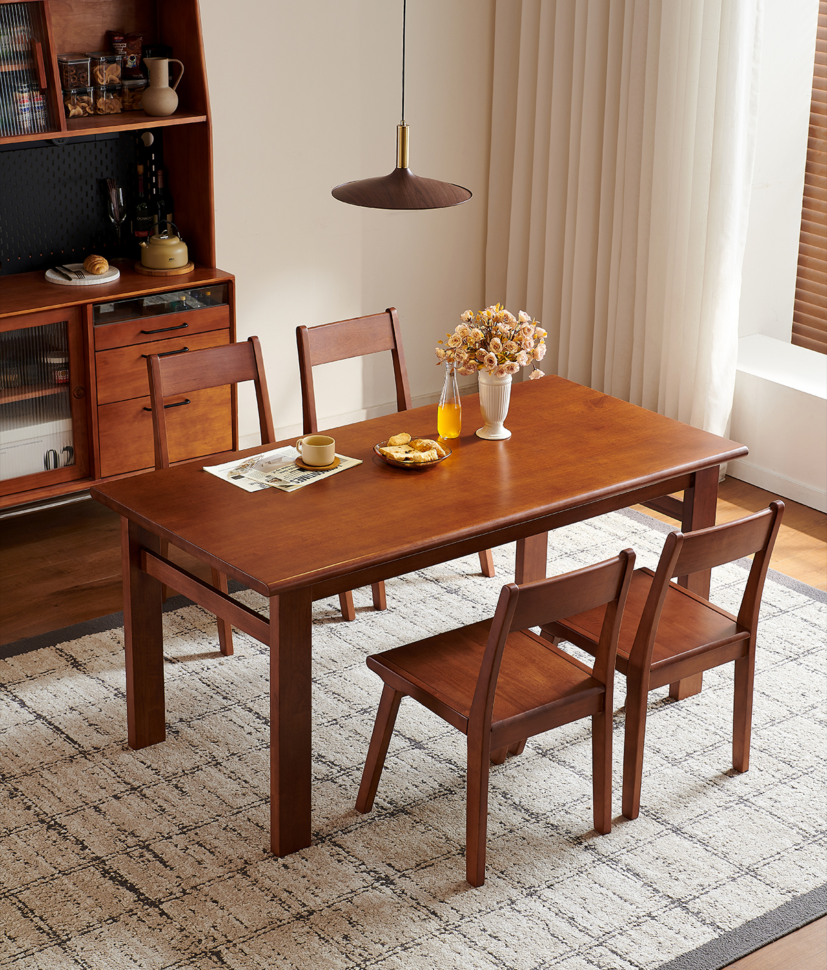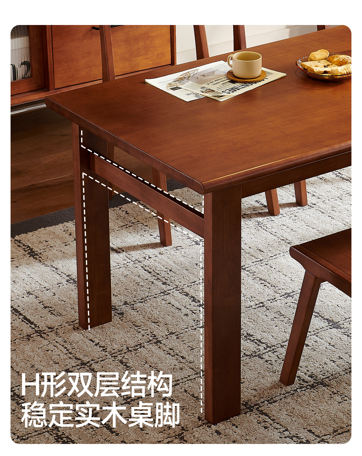 帕沙曼全实木餐桌椅家用餐厅简约小户型大板桌中古风长方形饭桌子MZ301Q 【胡桃色】实木餐桌+6椅(MX301-Q) 160cm *80cm*7cm