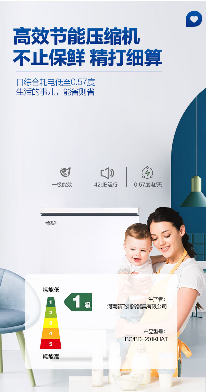 新飞201L单温家用冰箱冷柜冰柜一级节能省电宽幅变温BC/BD-201KHAT