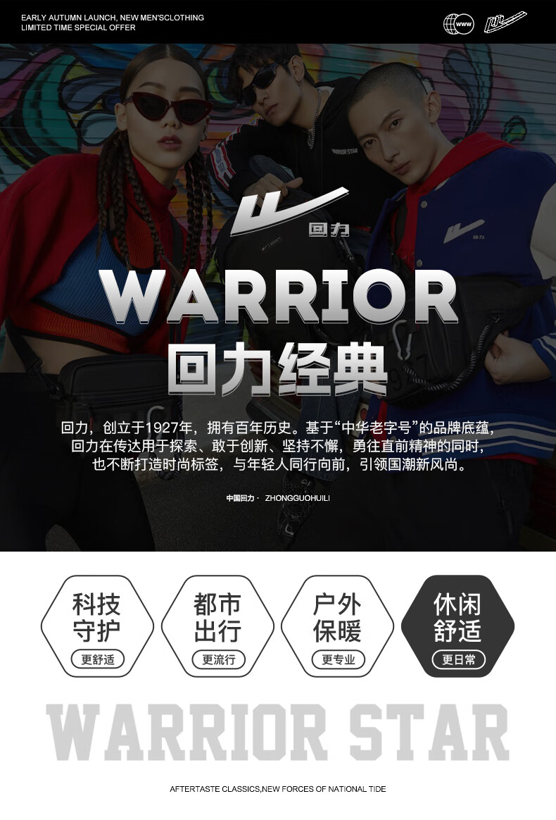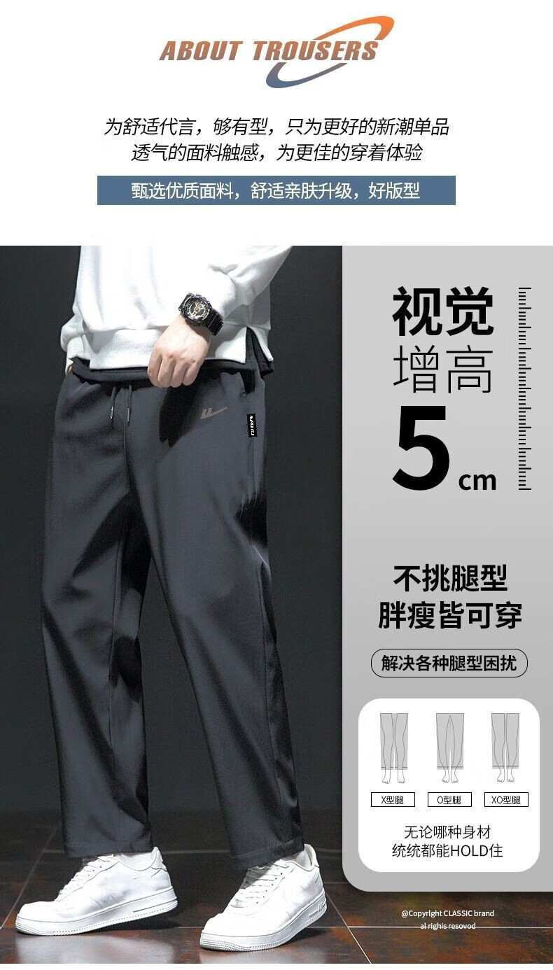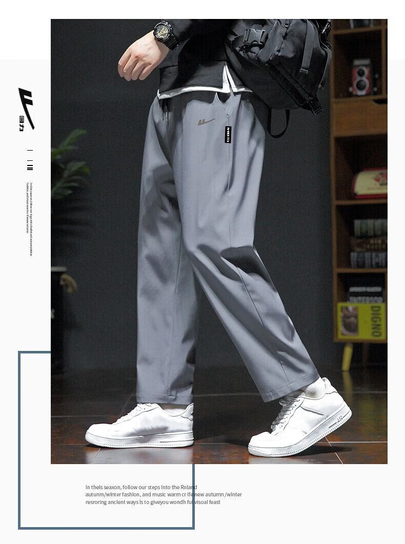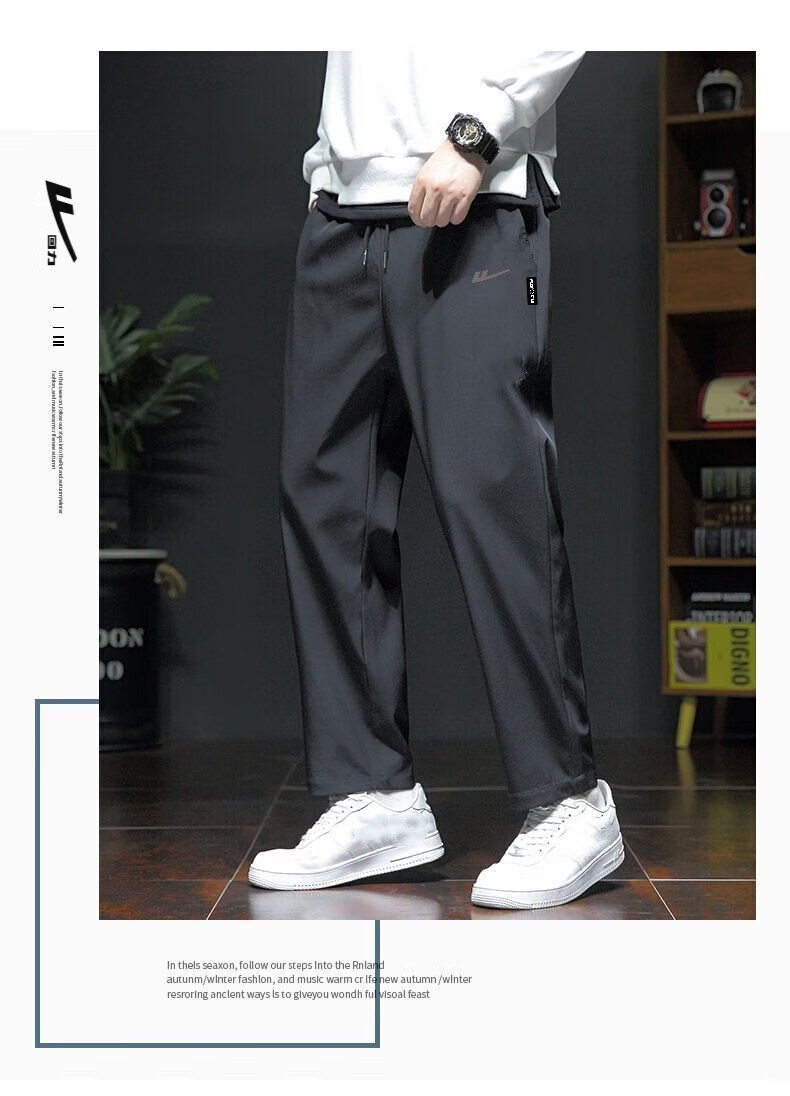 回力运动裤男春秋季宽松休闲裤子男直筒系带男士跑步健身长卫裤男装