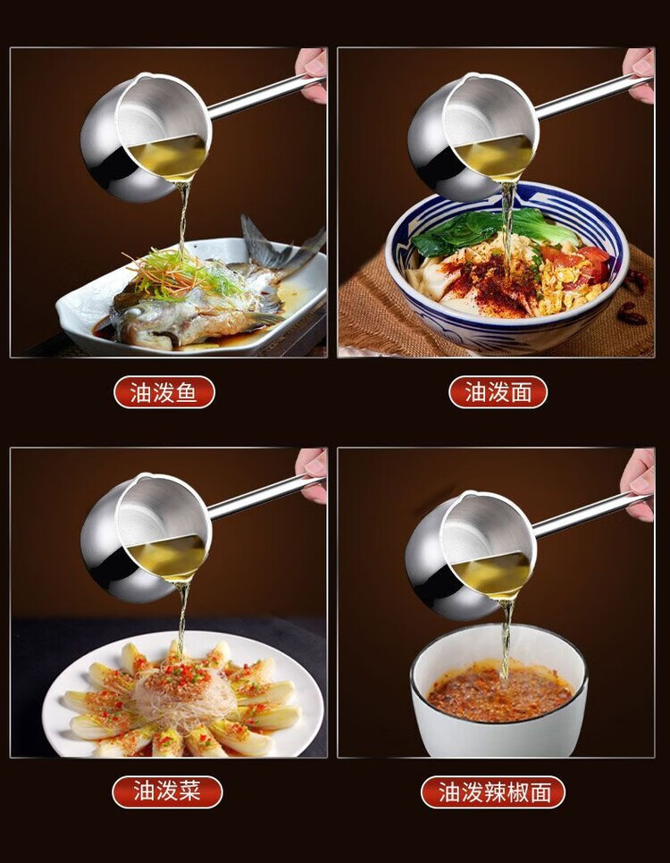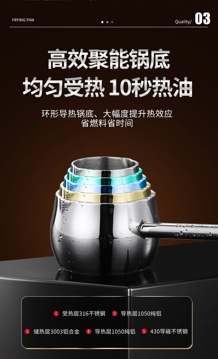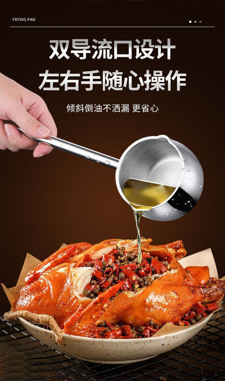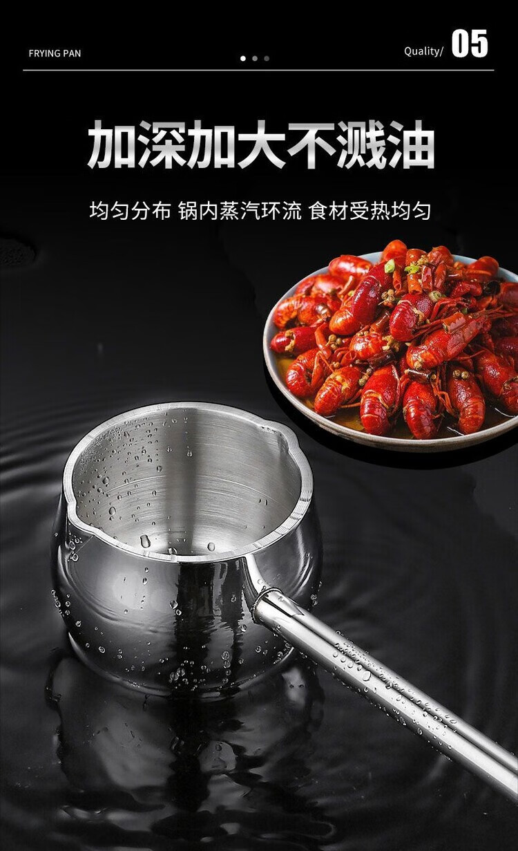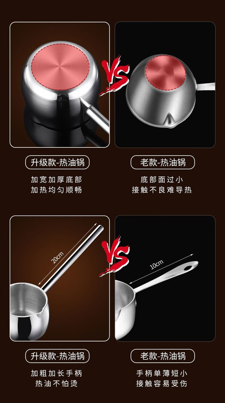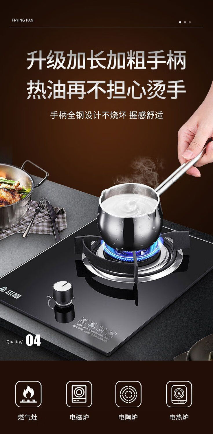 GIOIO五层钢热油小油锅烧油加厚小奶锅泼油锅快加长不锈钢款家用 升级款【350ML】 1寸
