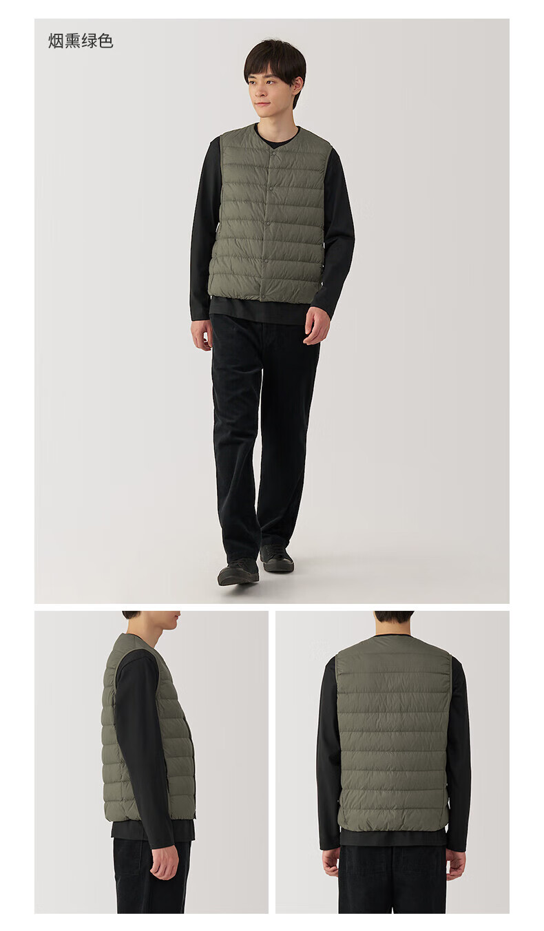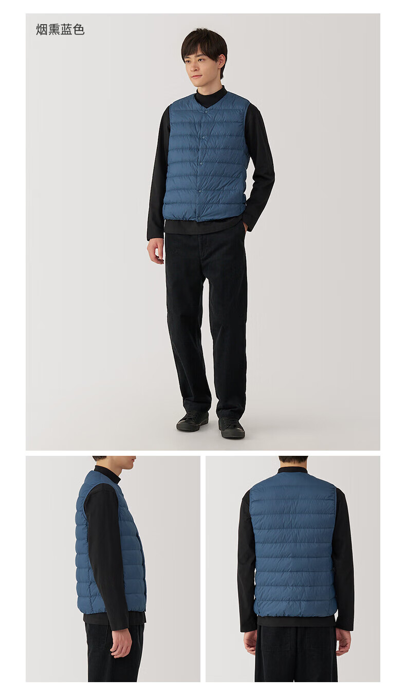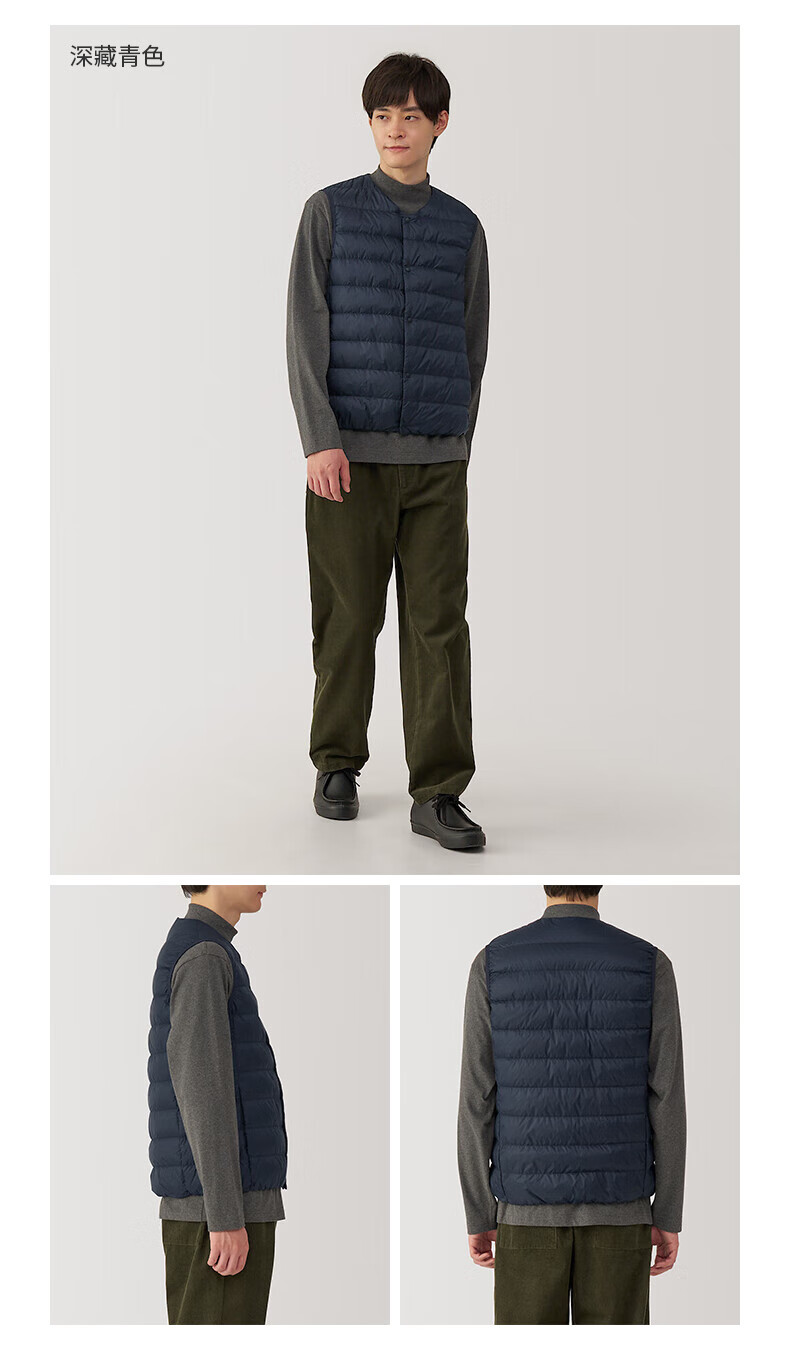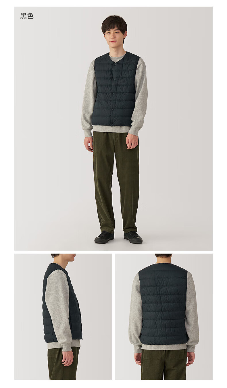 MUJI男式 轻量羽绒便携式 背心 男士羽绒马甲 黑色5A L