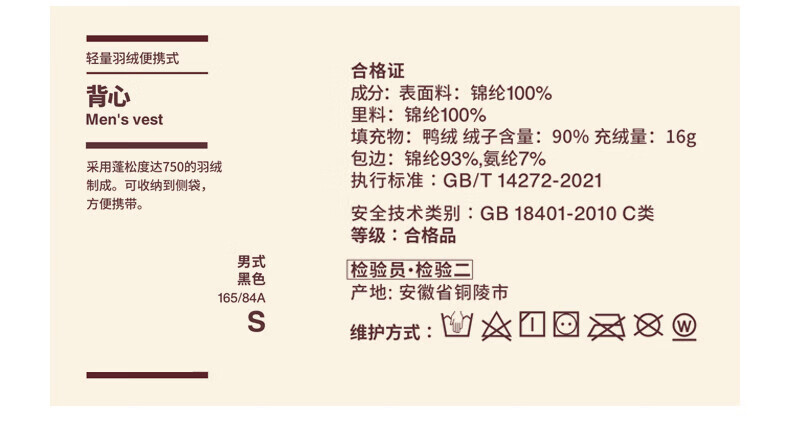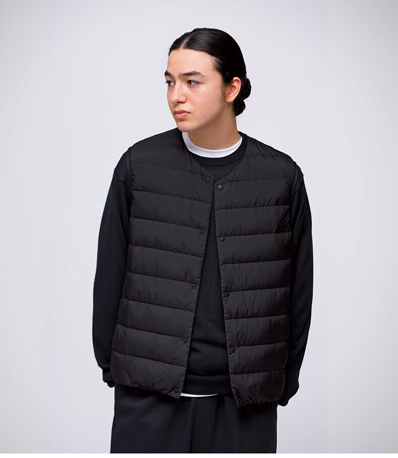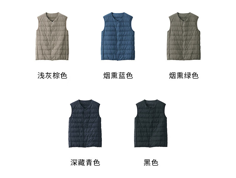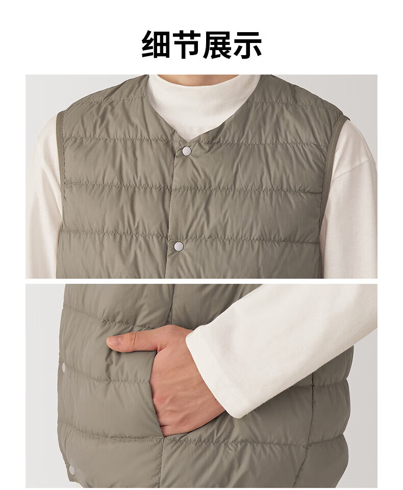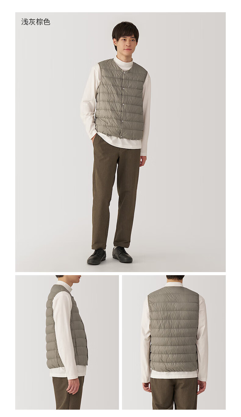 MUJI男式 轻量羽绒便携式 背心 男士羽绒马甲 黑色5A L