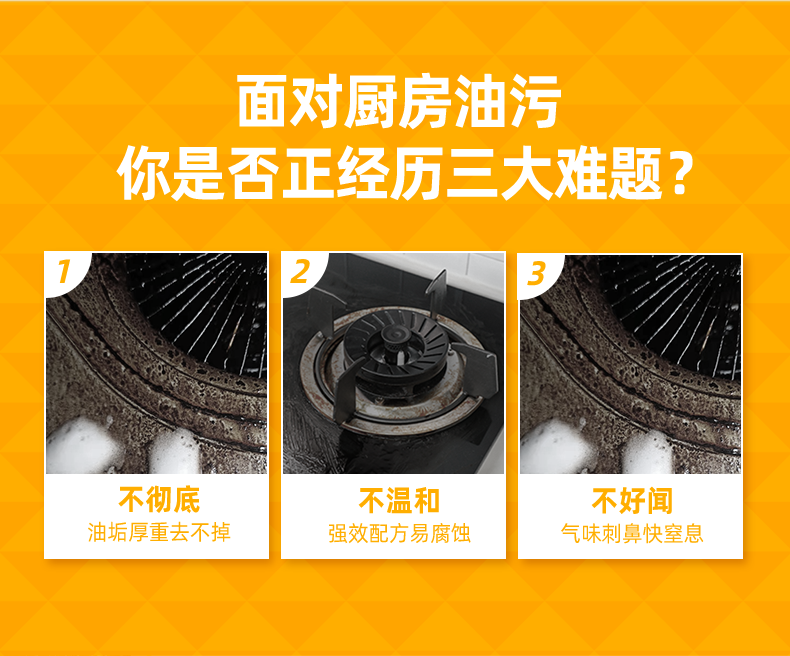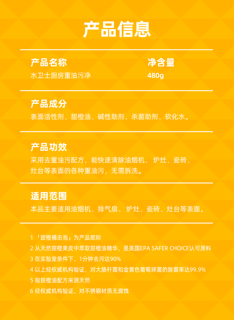 水卫士厨房重油污净 油污清洁剂抽油烟机清洗剂 强力去油污油烟净水卫仕 油污净480g*3瓶