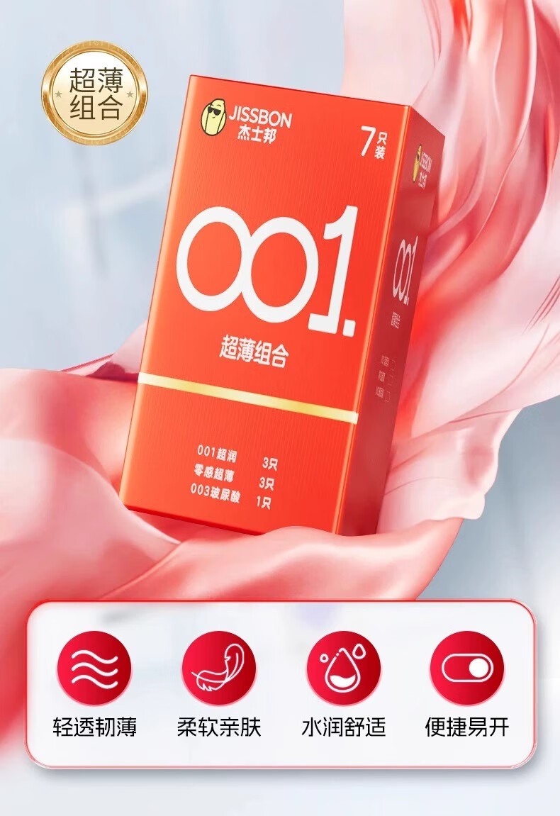 杰士邦避孕套0.01超薄001隐形裸入安全套女性秒喷套玻尿酸情趣成人计生 80%选择【共19只】001超薄7只+超滑超薄12