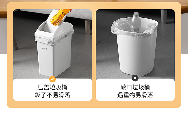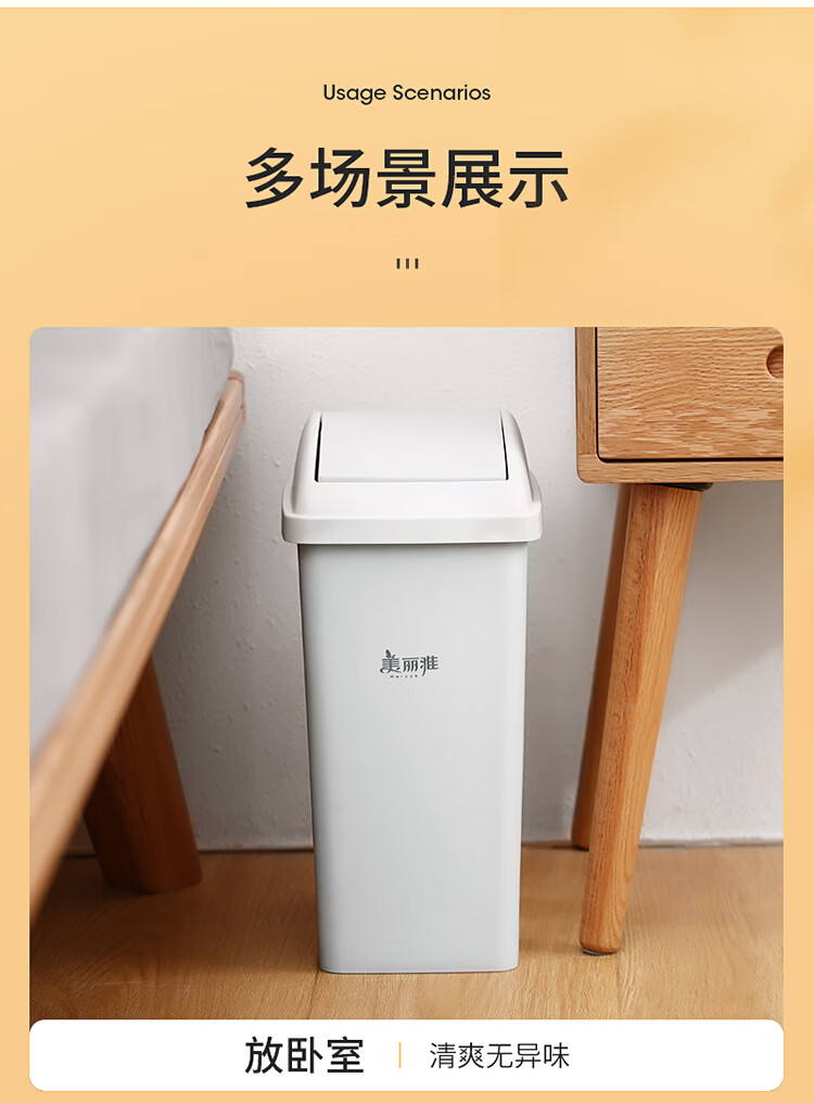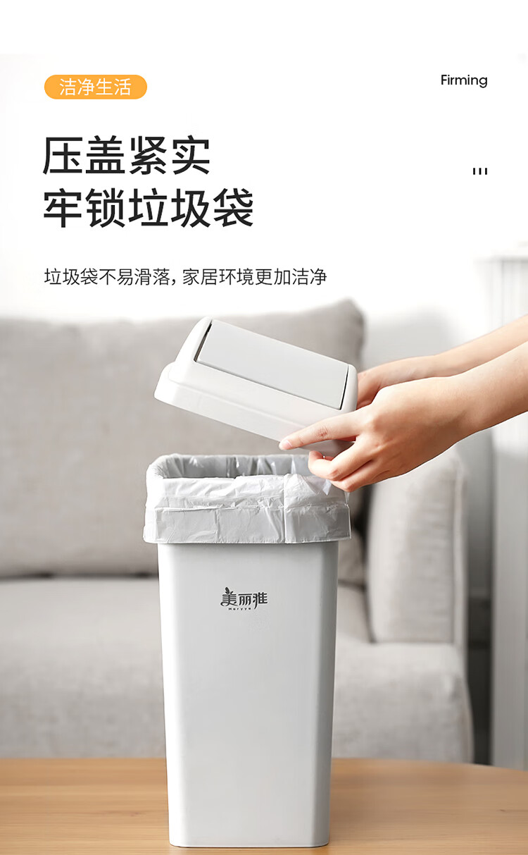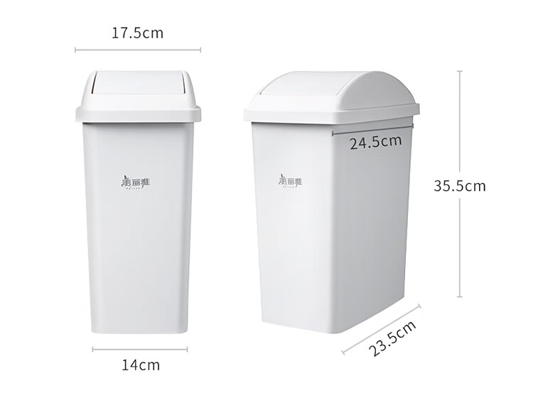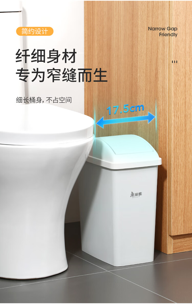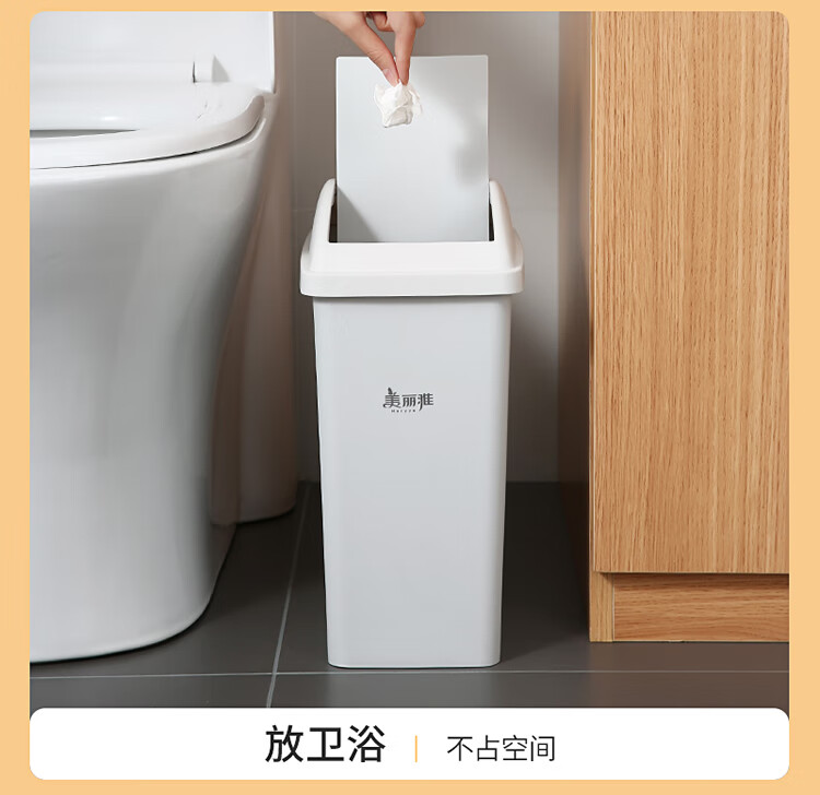 美丽雅垃圾桶带盖大号白色10L卫生间厕所家用厨房客厅窄夹缝摇盖垃圾桶