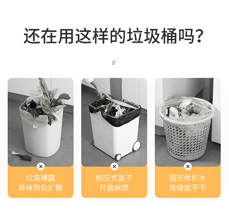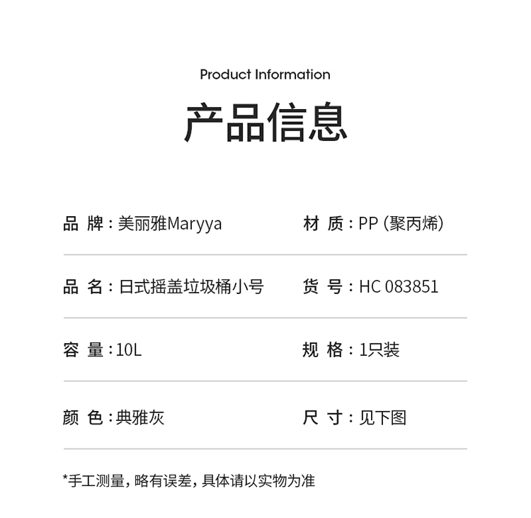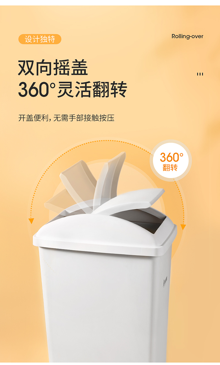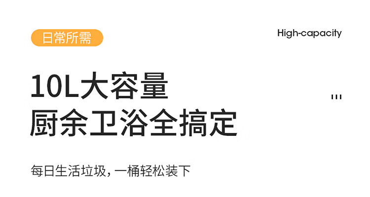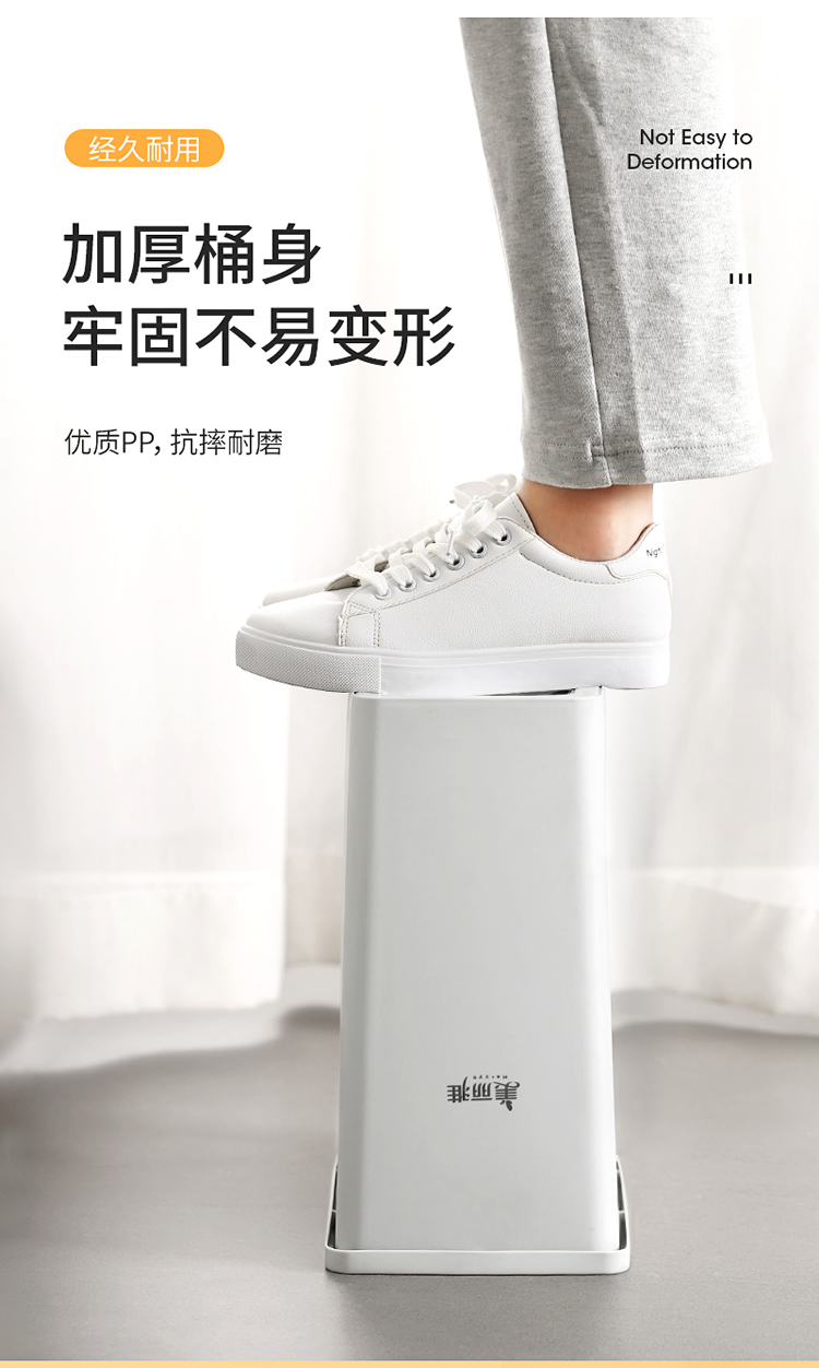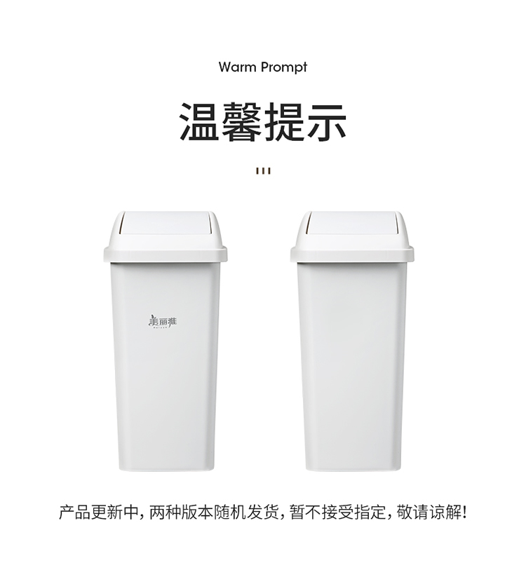 美丽雅垃圾桶带盖大号白色10L卫生间厕所家用厨房客厅窄夹缝摇盖垃圾桶