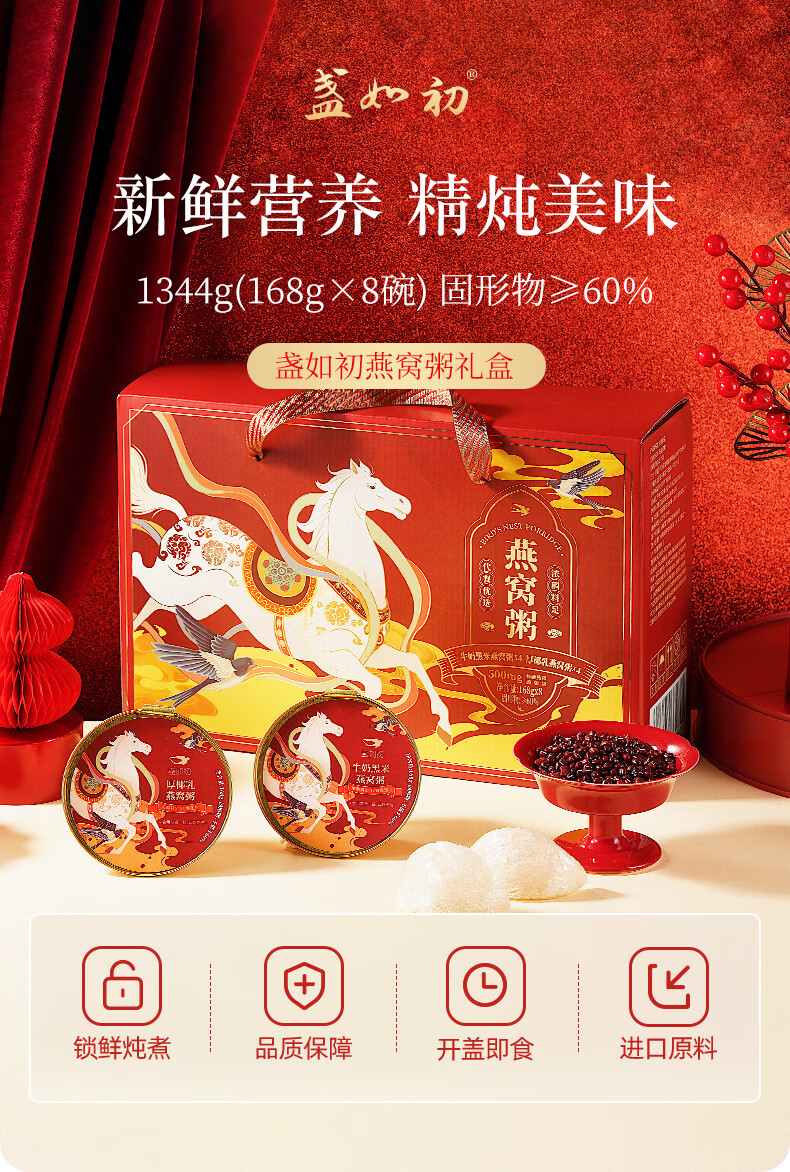 盏如初燕窝粥免煮即食水牛奶山药百合燕麦粥方便营养早餐速食粥 山药百合燕窝+藜麦燕窝粥 168g*8碗 /非礼盒装