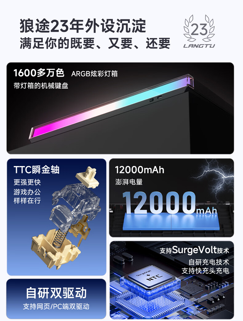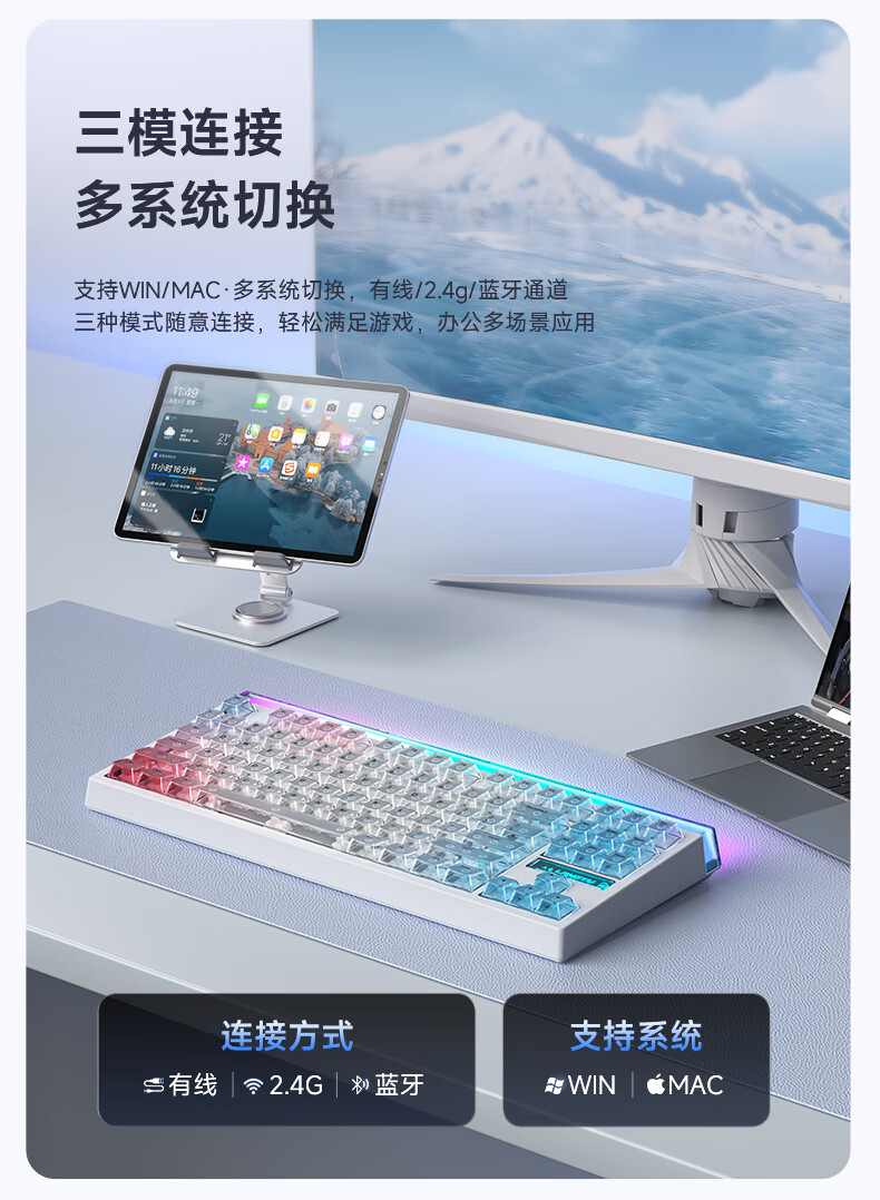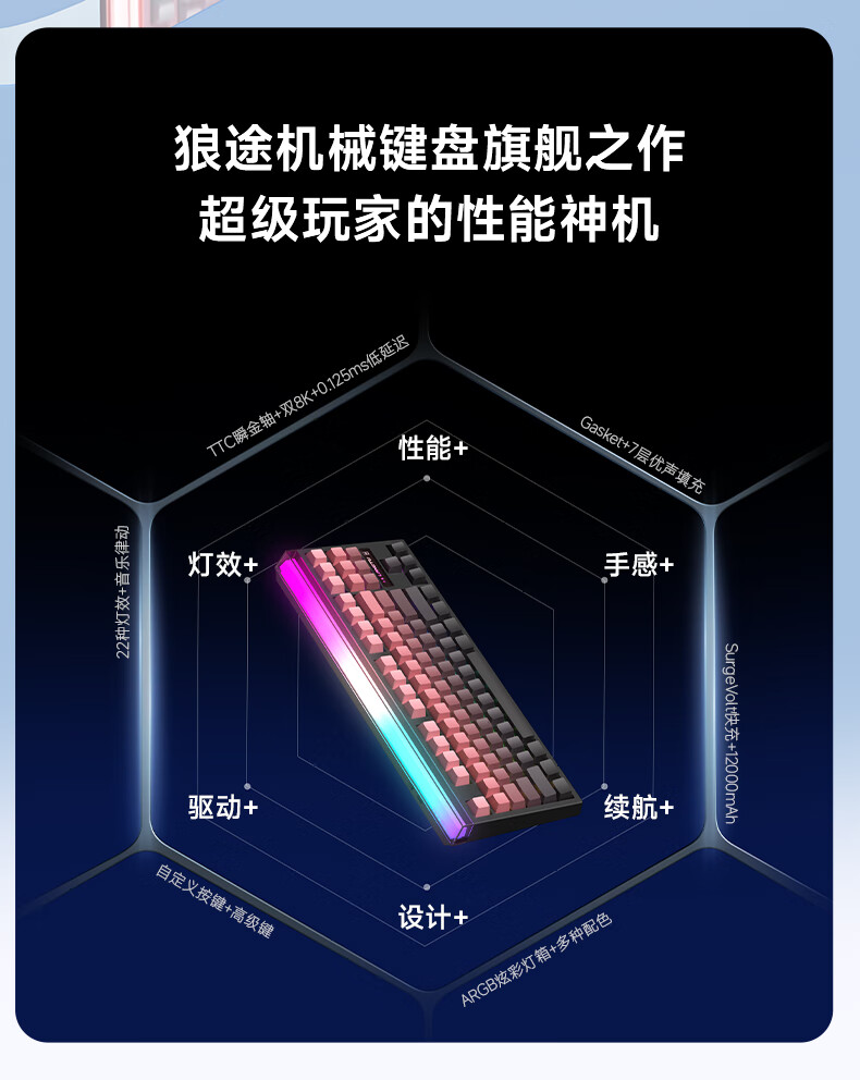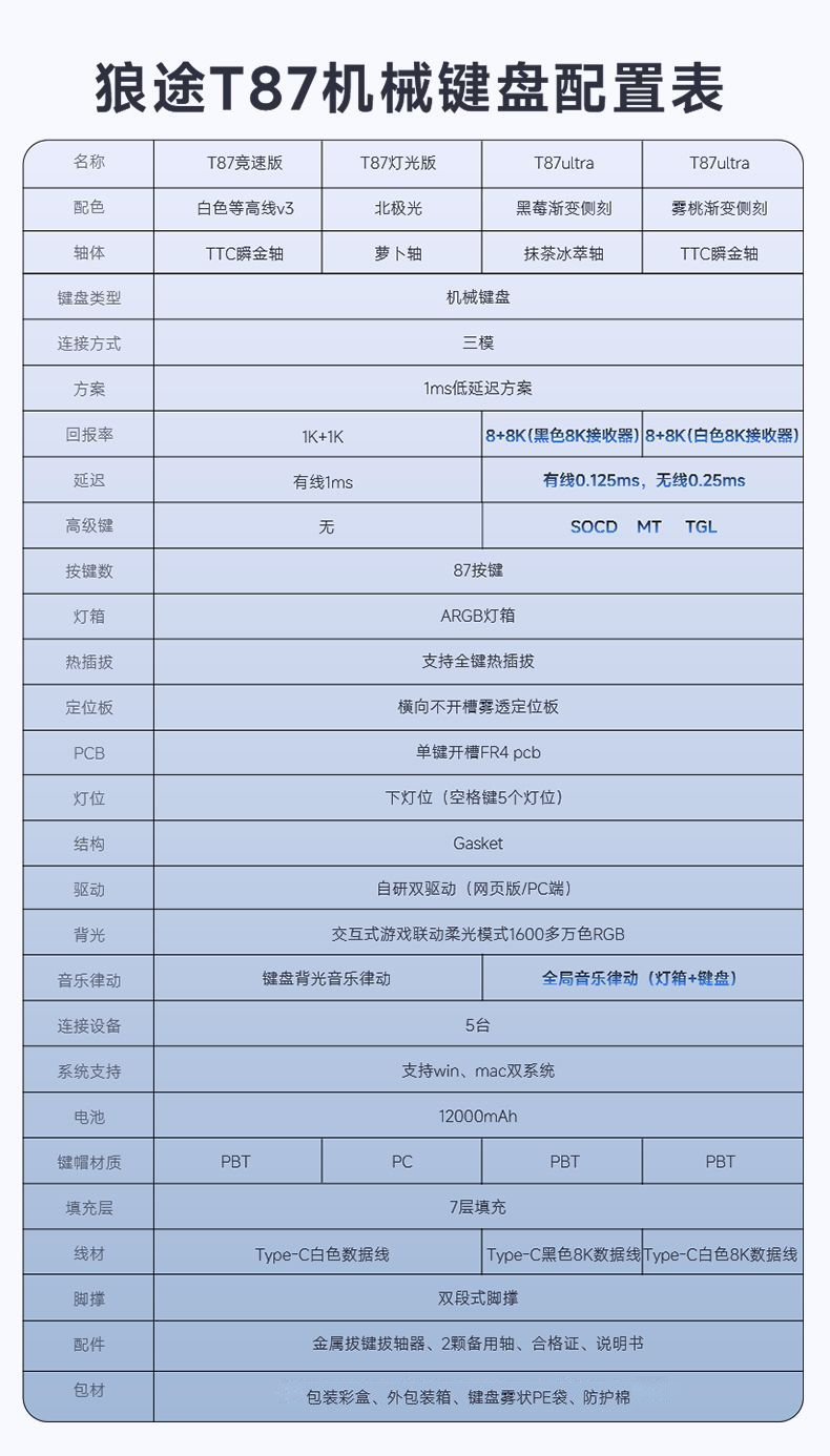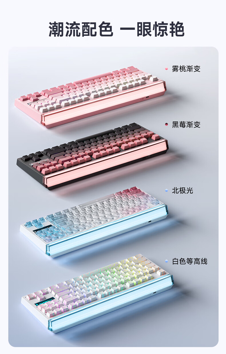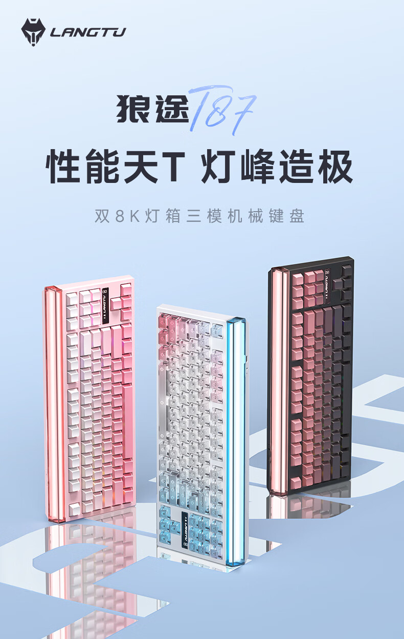 狼途T87Ultra灯箱无线三模机械键盘12000mAh大电池电竞游戏客制化有线蓝牙gasket结构全键热插拔办公 T87雾桃渐变Ultra-TTC瞬金轴