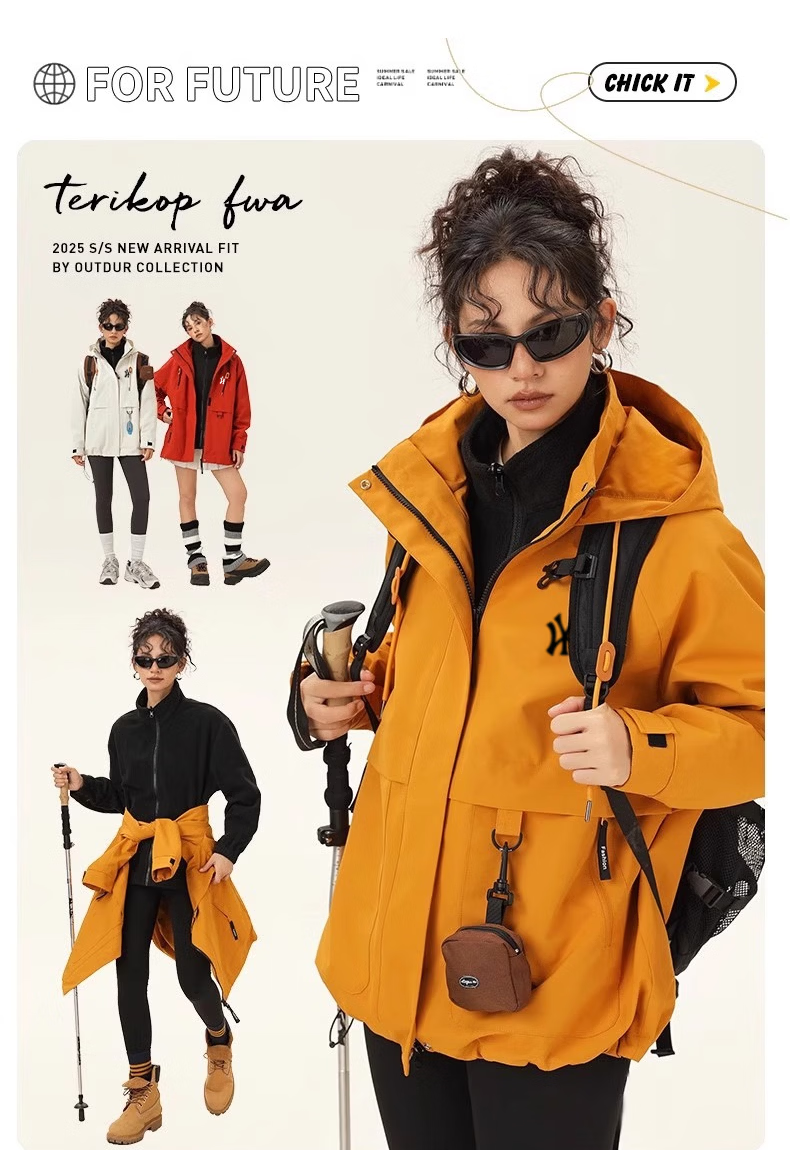 INTO TOP冲锋衣外套男女同款2025秋季新款户外防风防水登山服 向日葵-H【单衣】 L