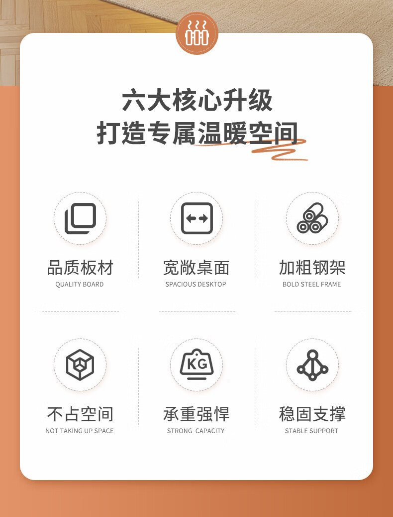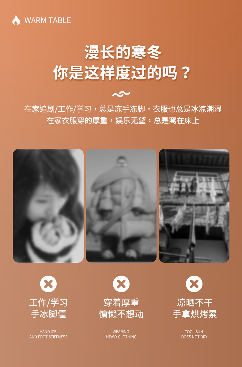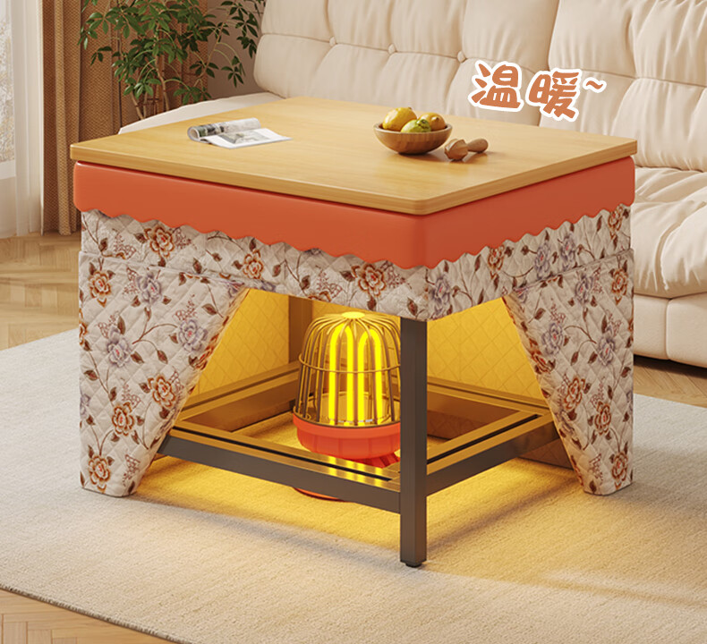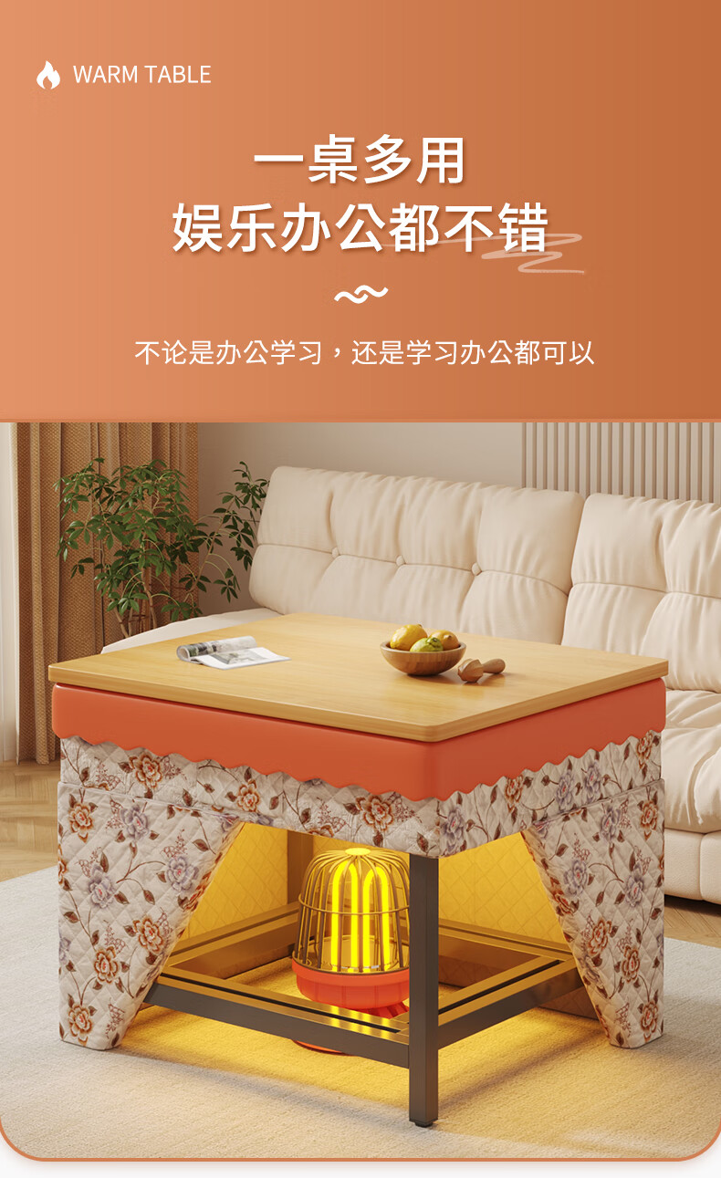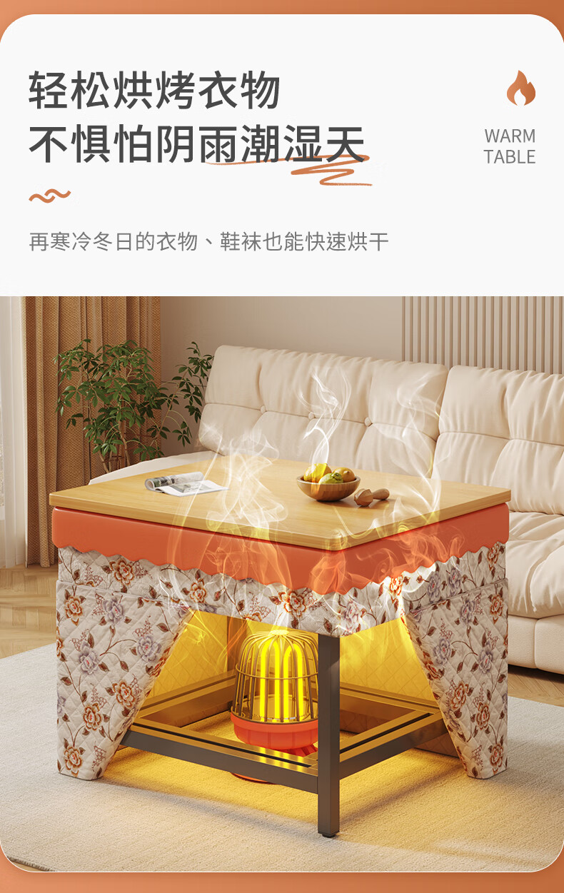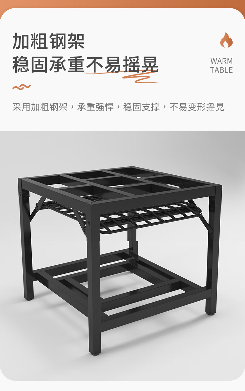 木匠印记烤火桌子一体取暖家用取暖桌正方形可折叠电暖桌烤火炉餐桌茶桌 烤火架+桌面+布罩+皮罩 76厘米