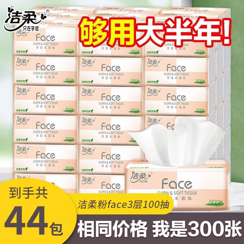 洁柔Face粉抽纸可湿水面巾纸无香家用纸巾批发3层100抽餐巾纸S码